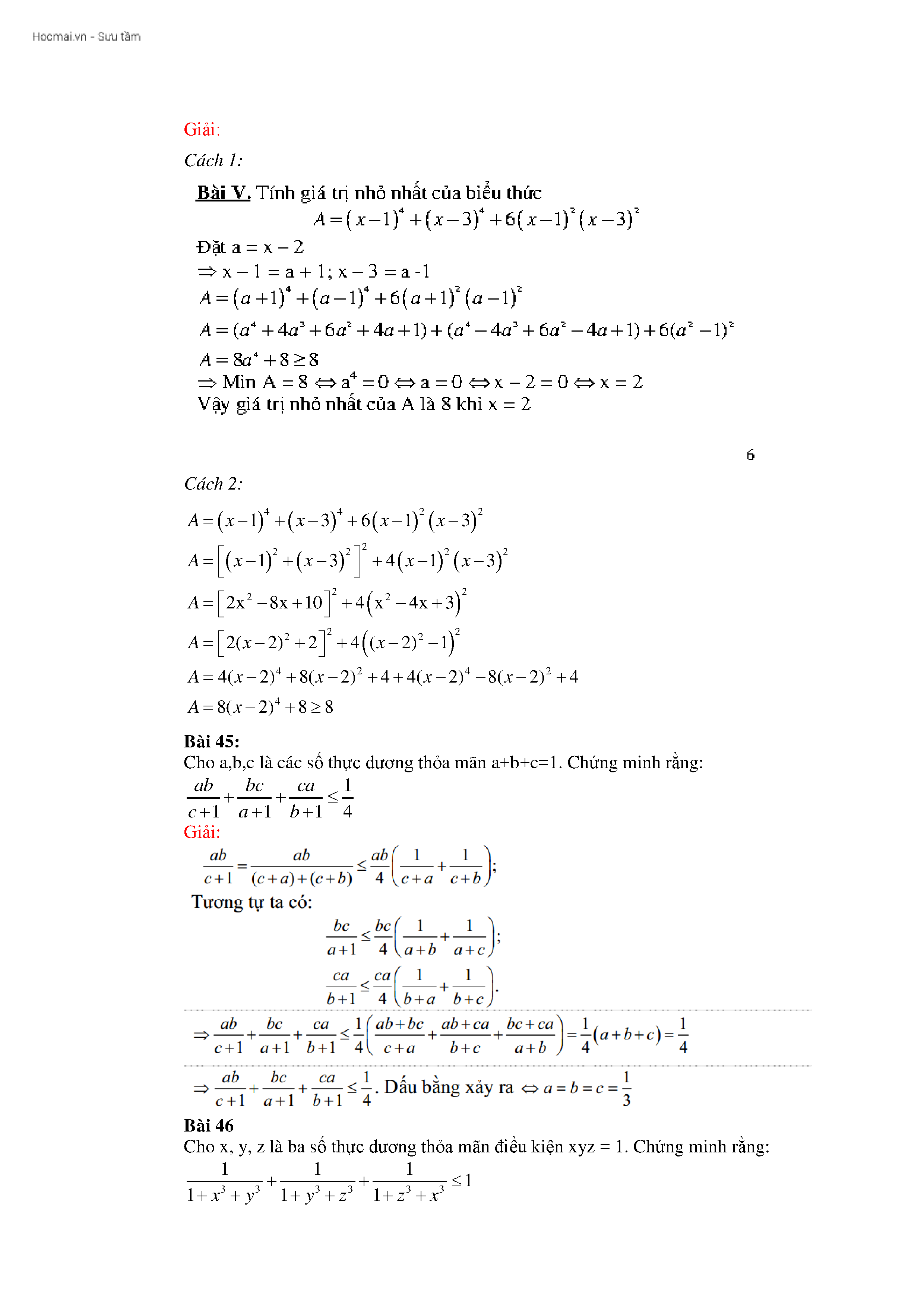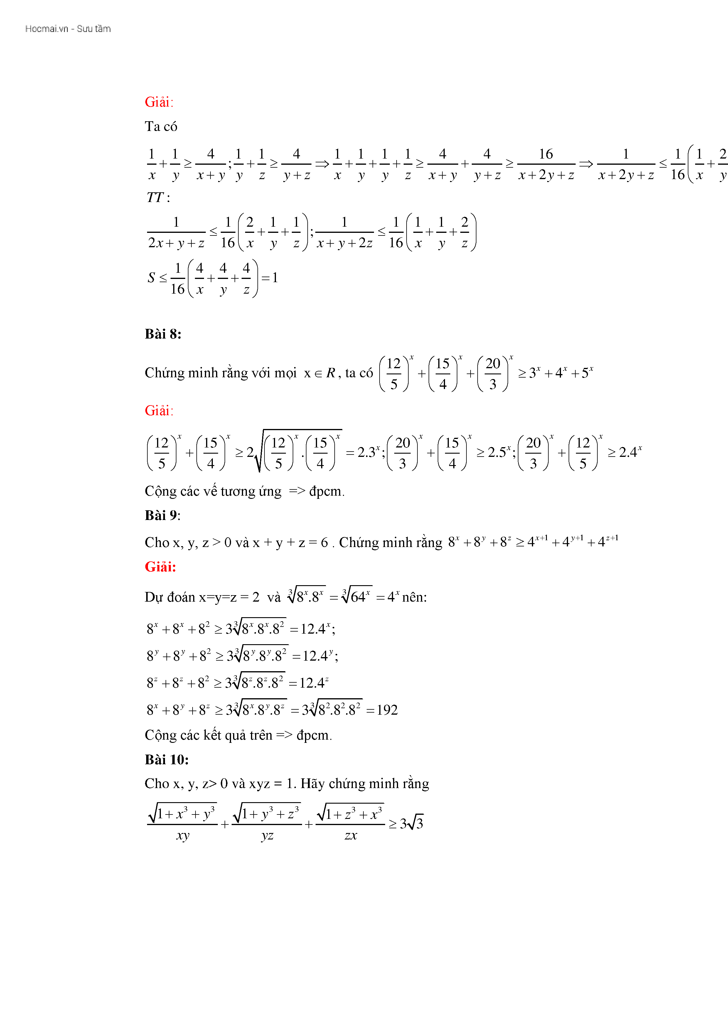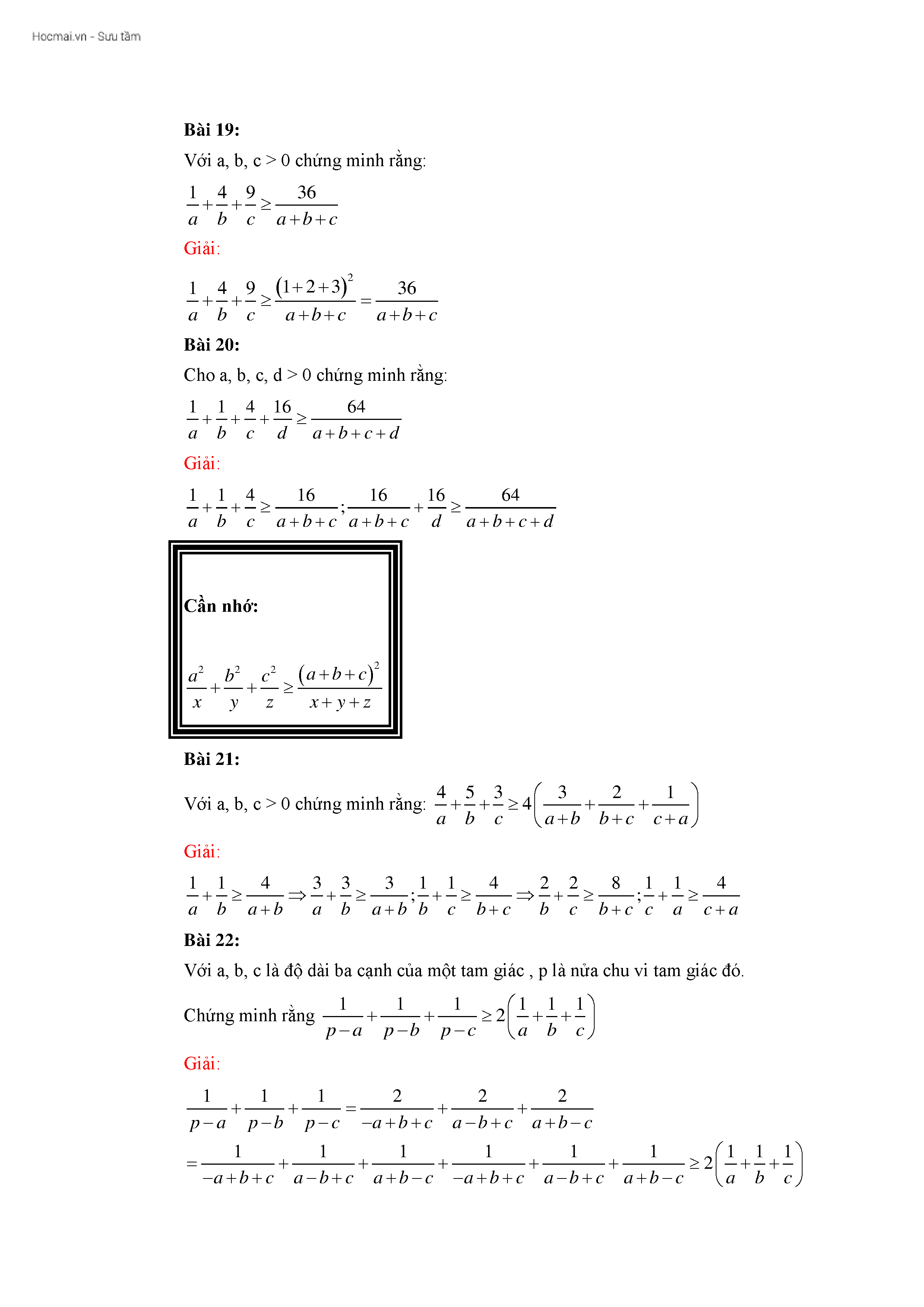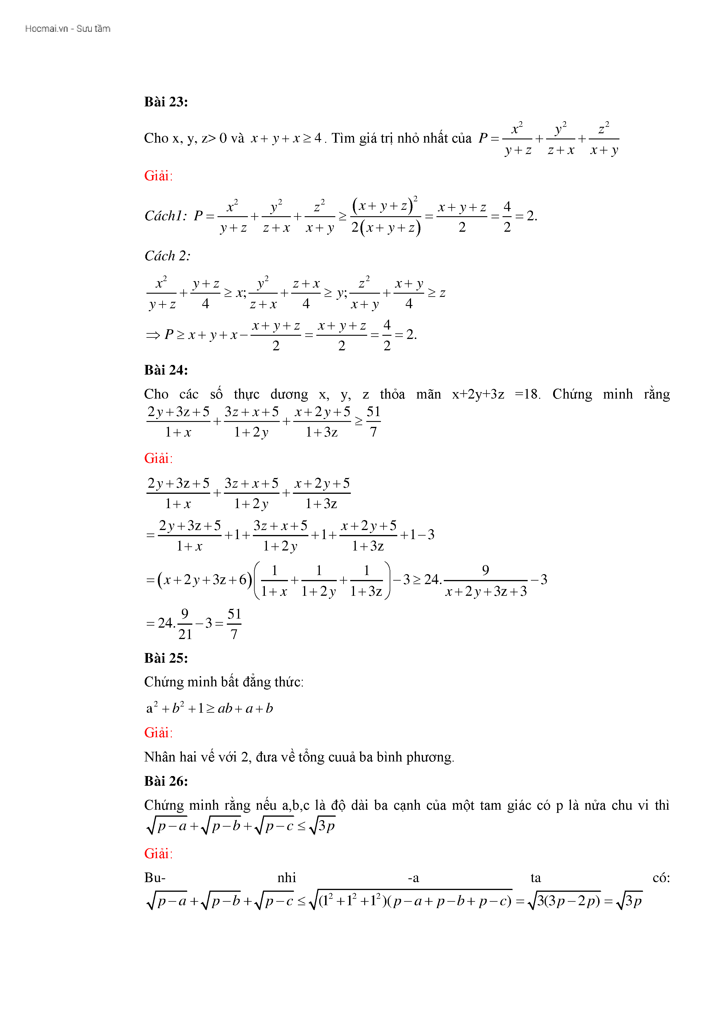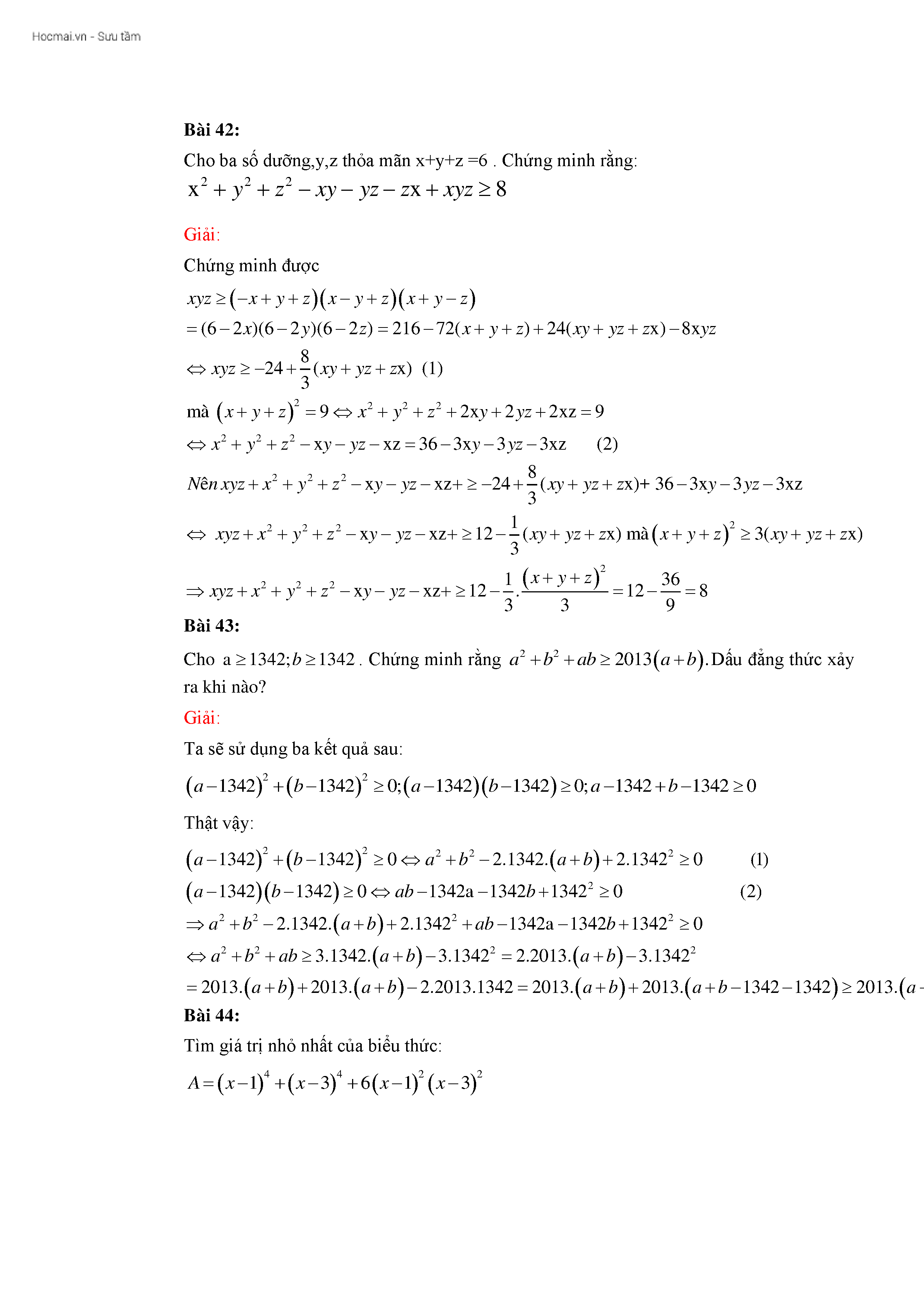 Tuyển tập 50 bài tập về bất đẳng thức có lời giải chi tiết lớp 10