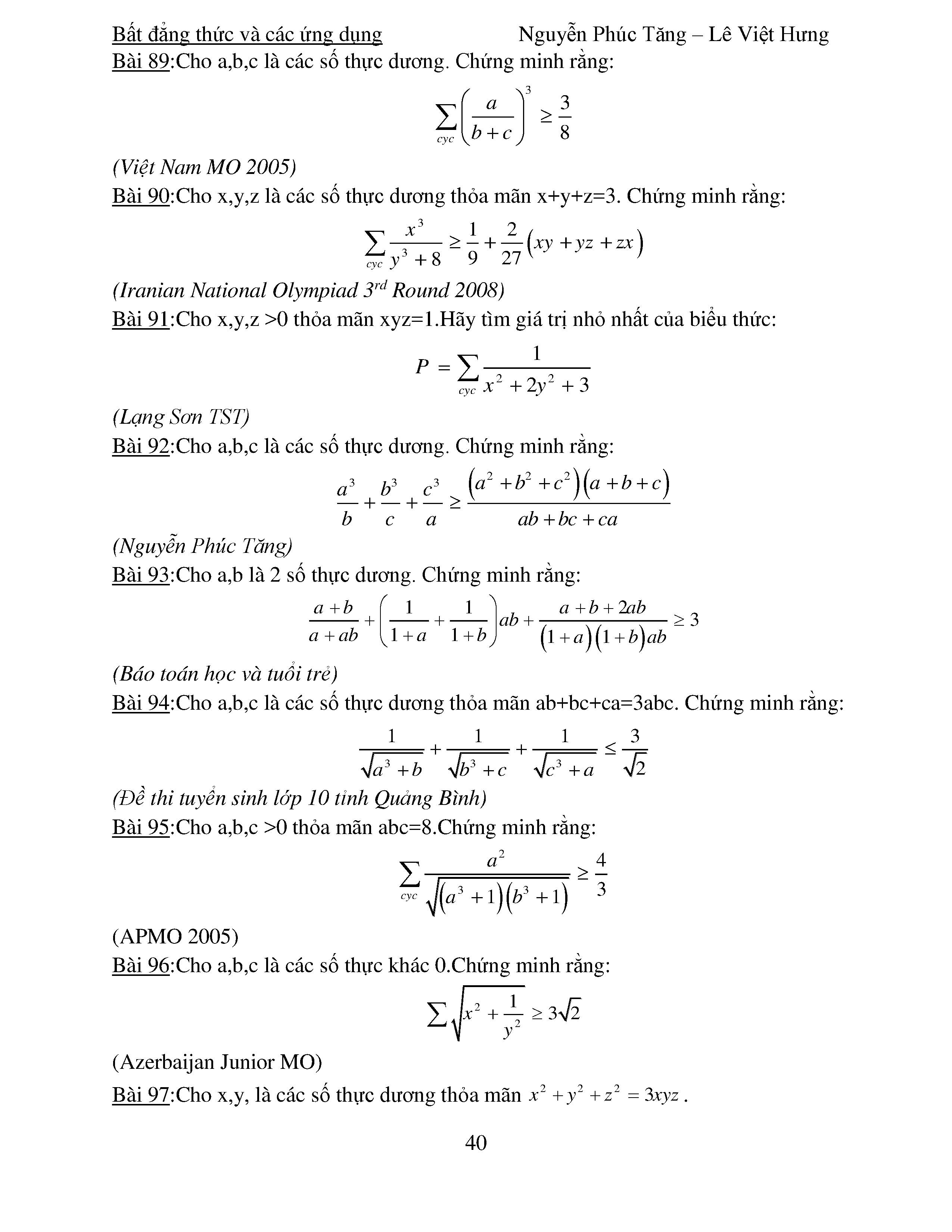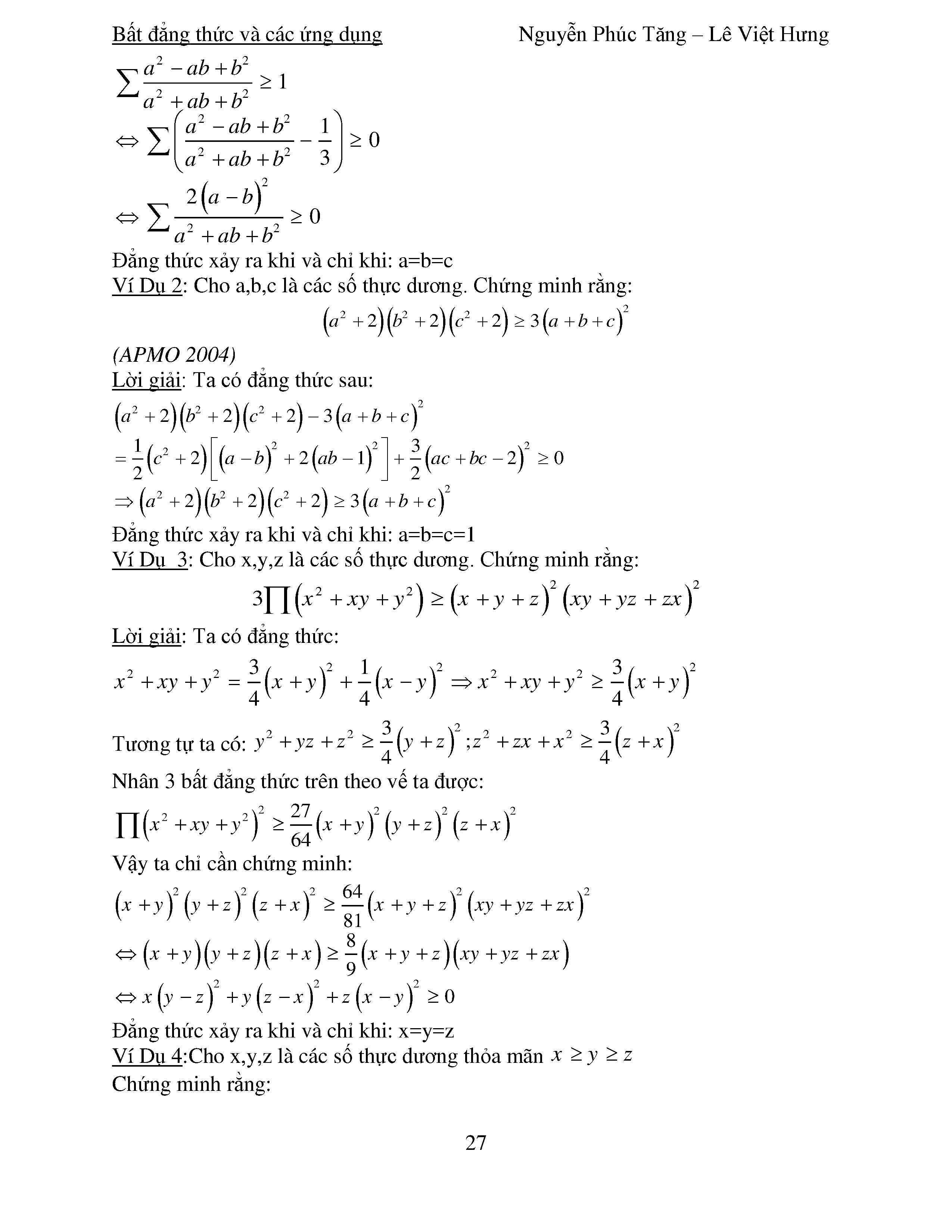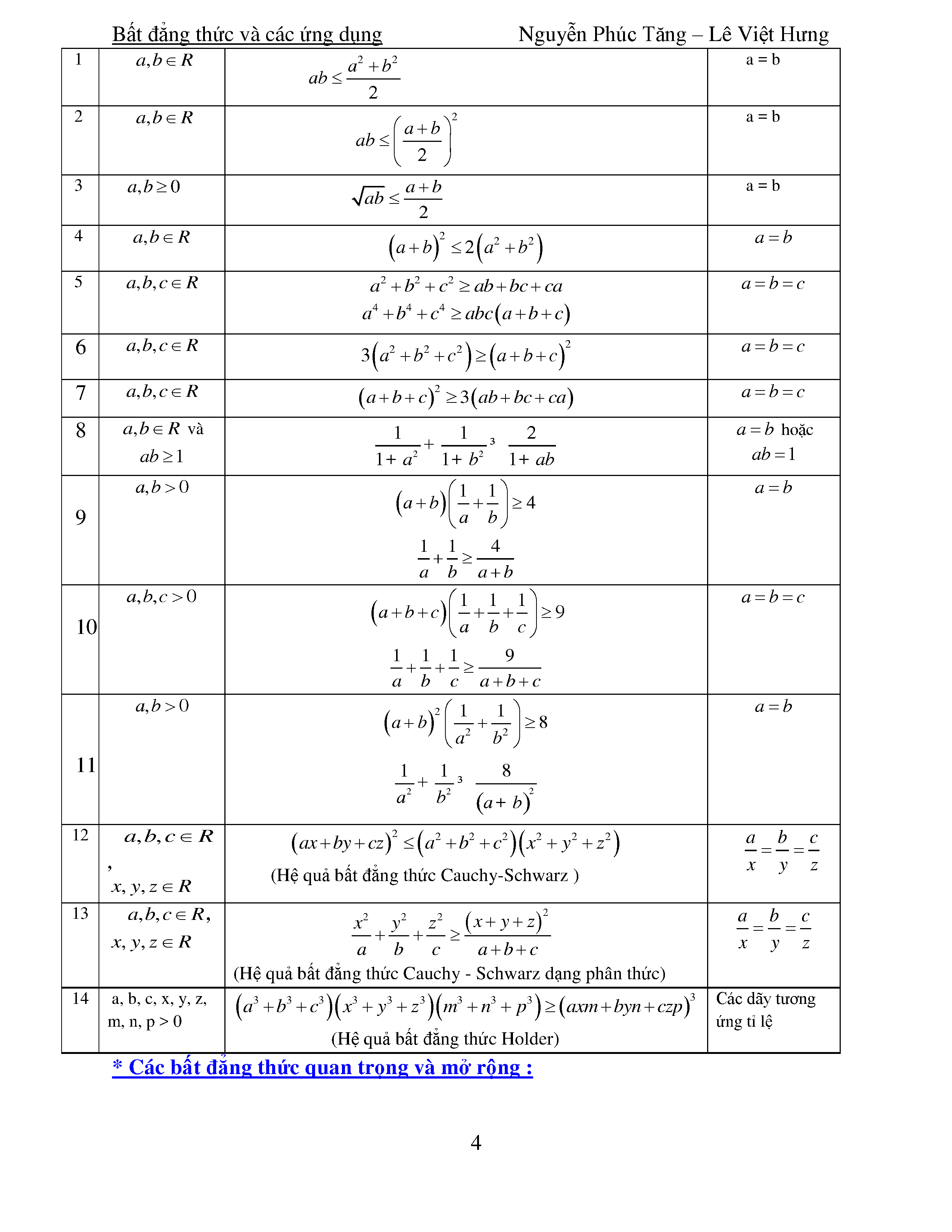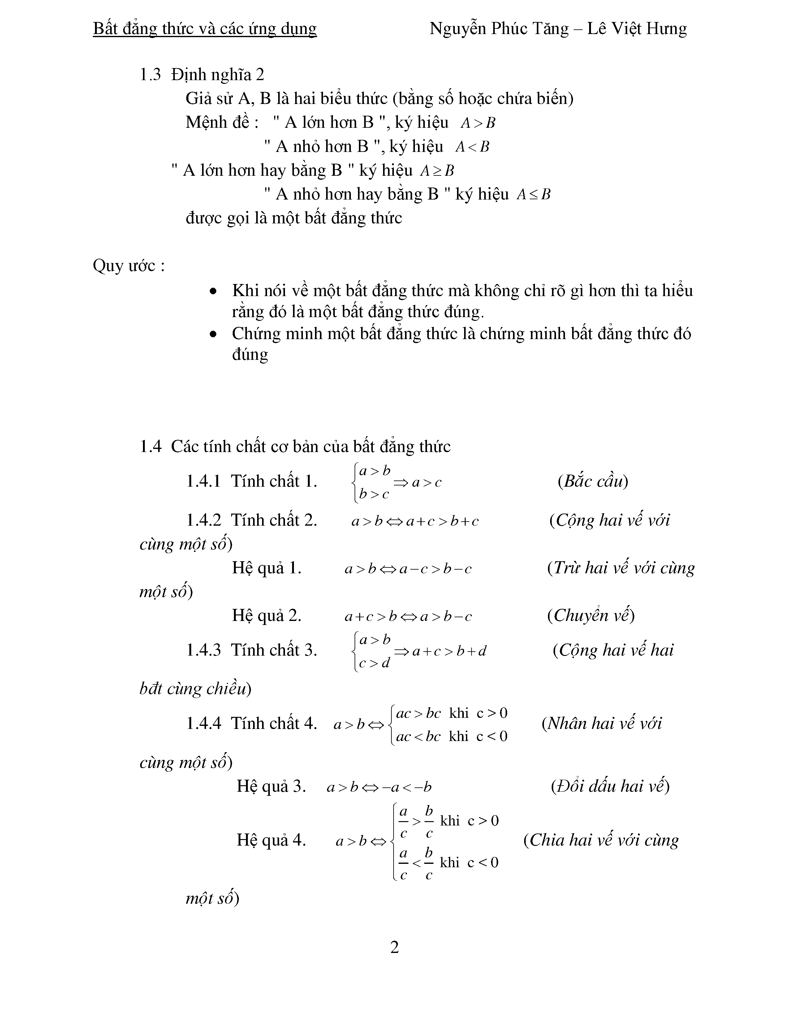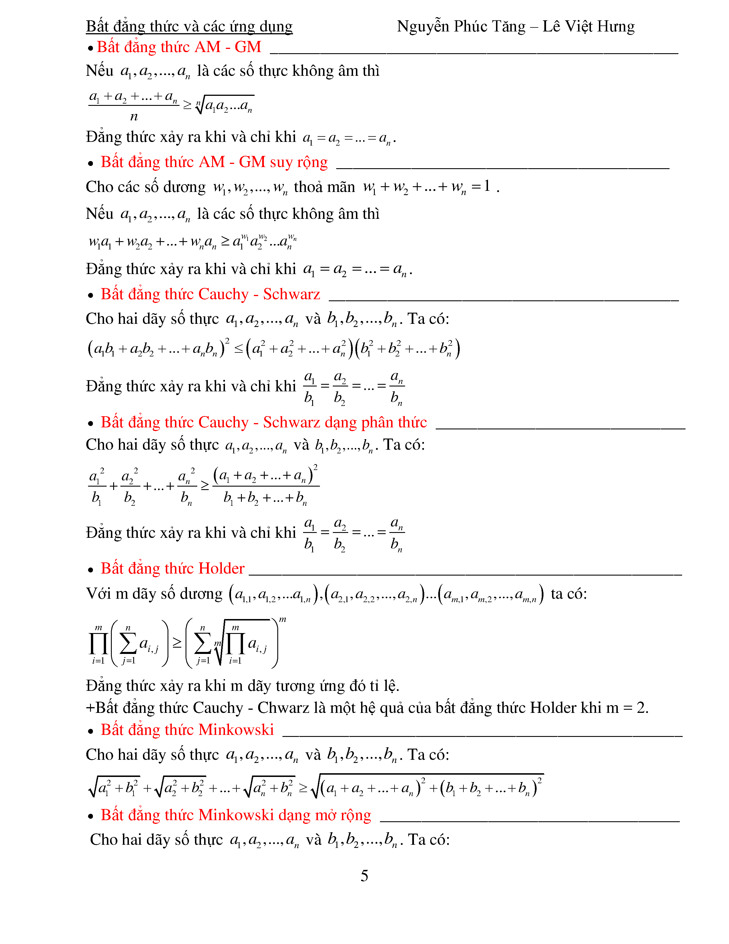 Bất đẳng thức và các ứng dụng Bất đẳng thức