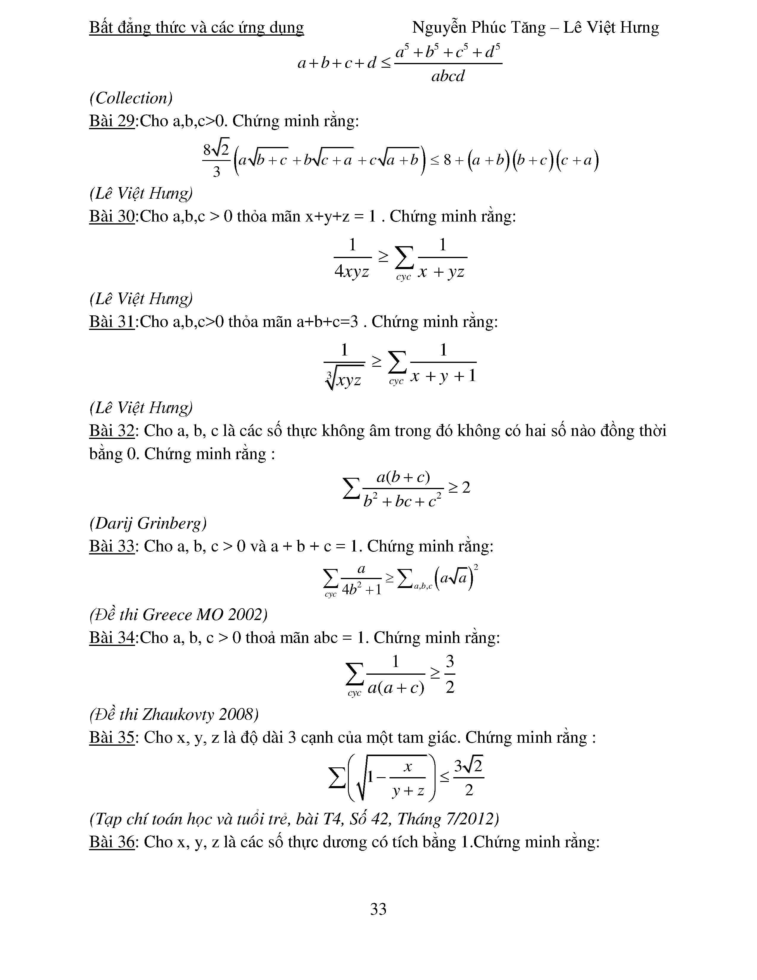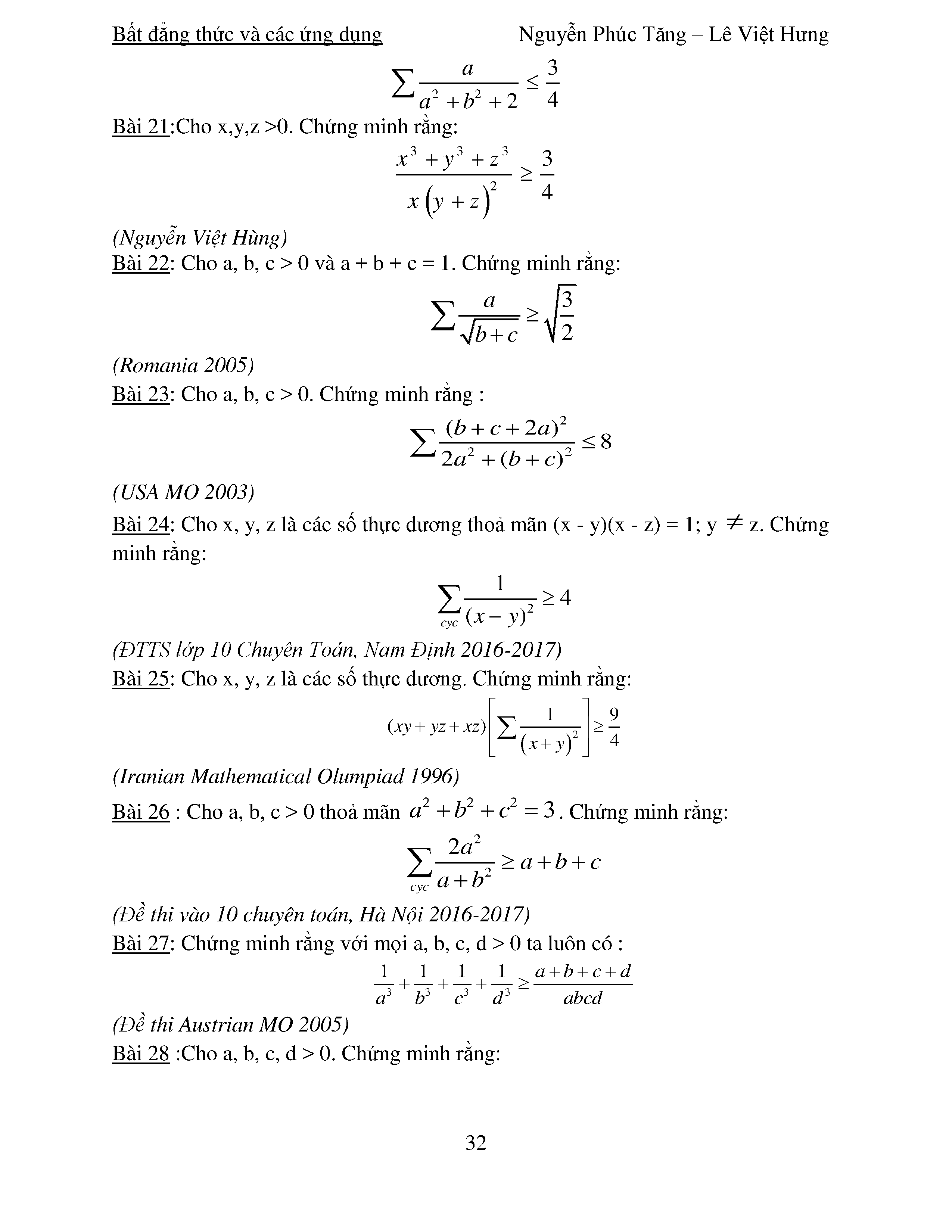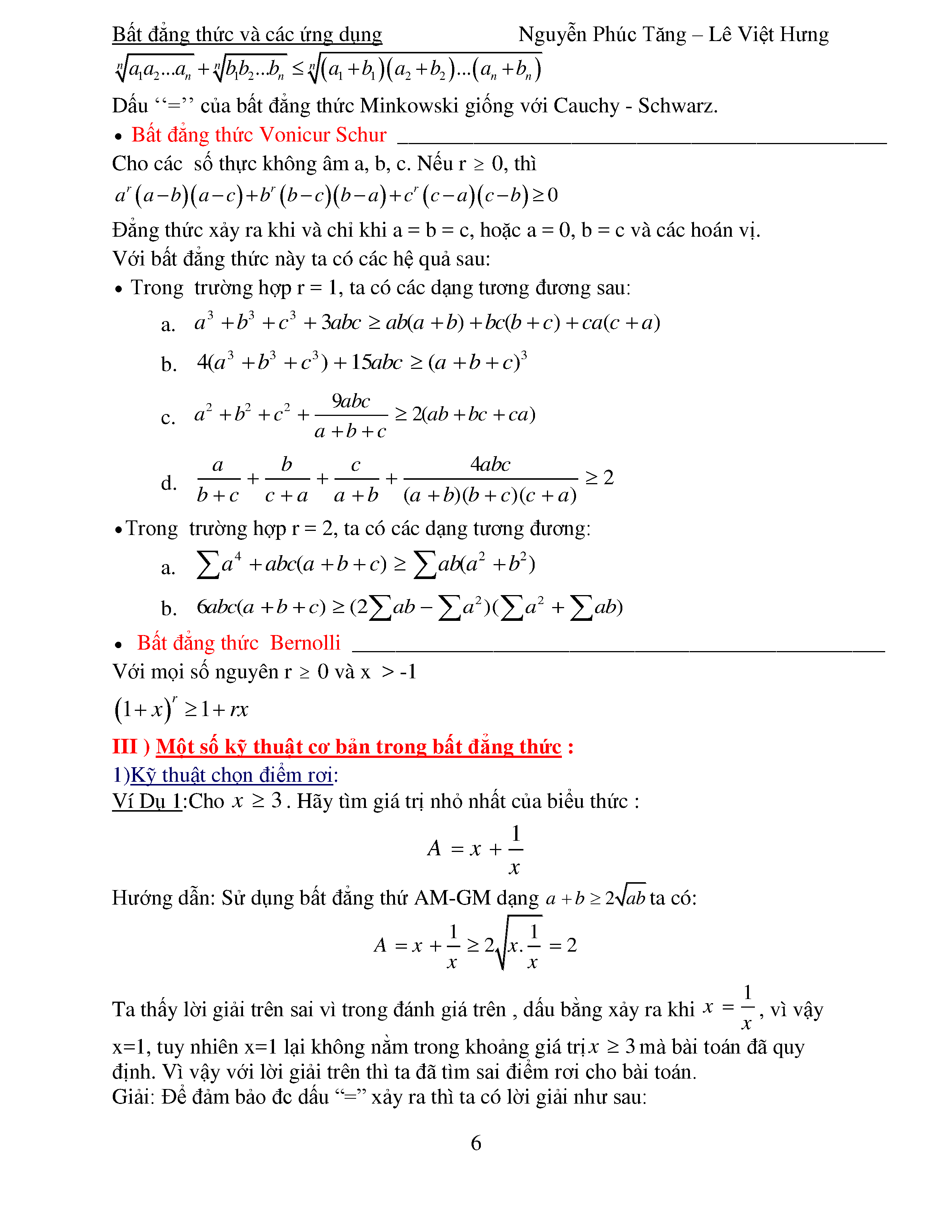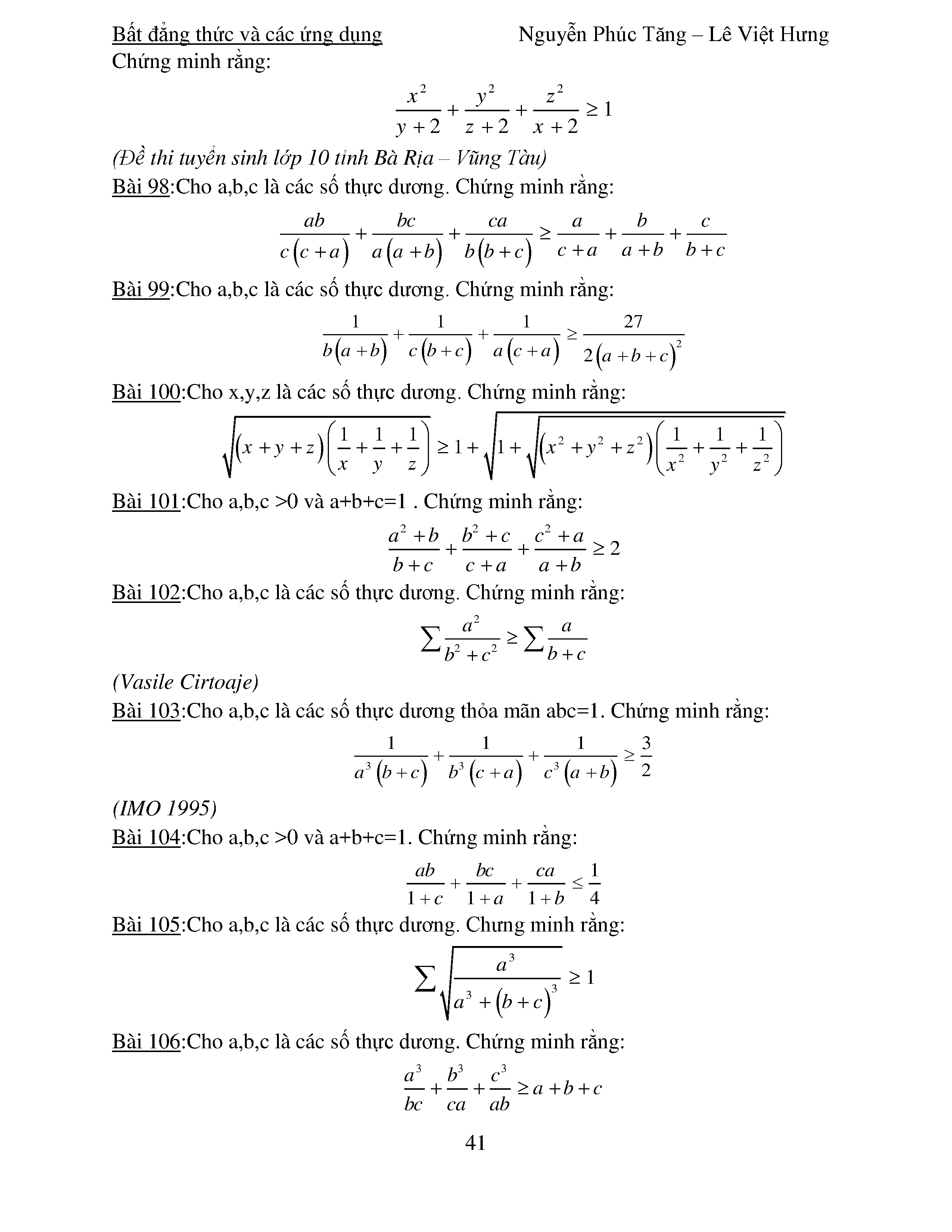 Bất đẳng thức và các ứng dụng Bất đẳng thức