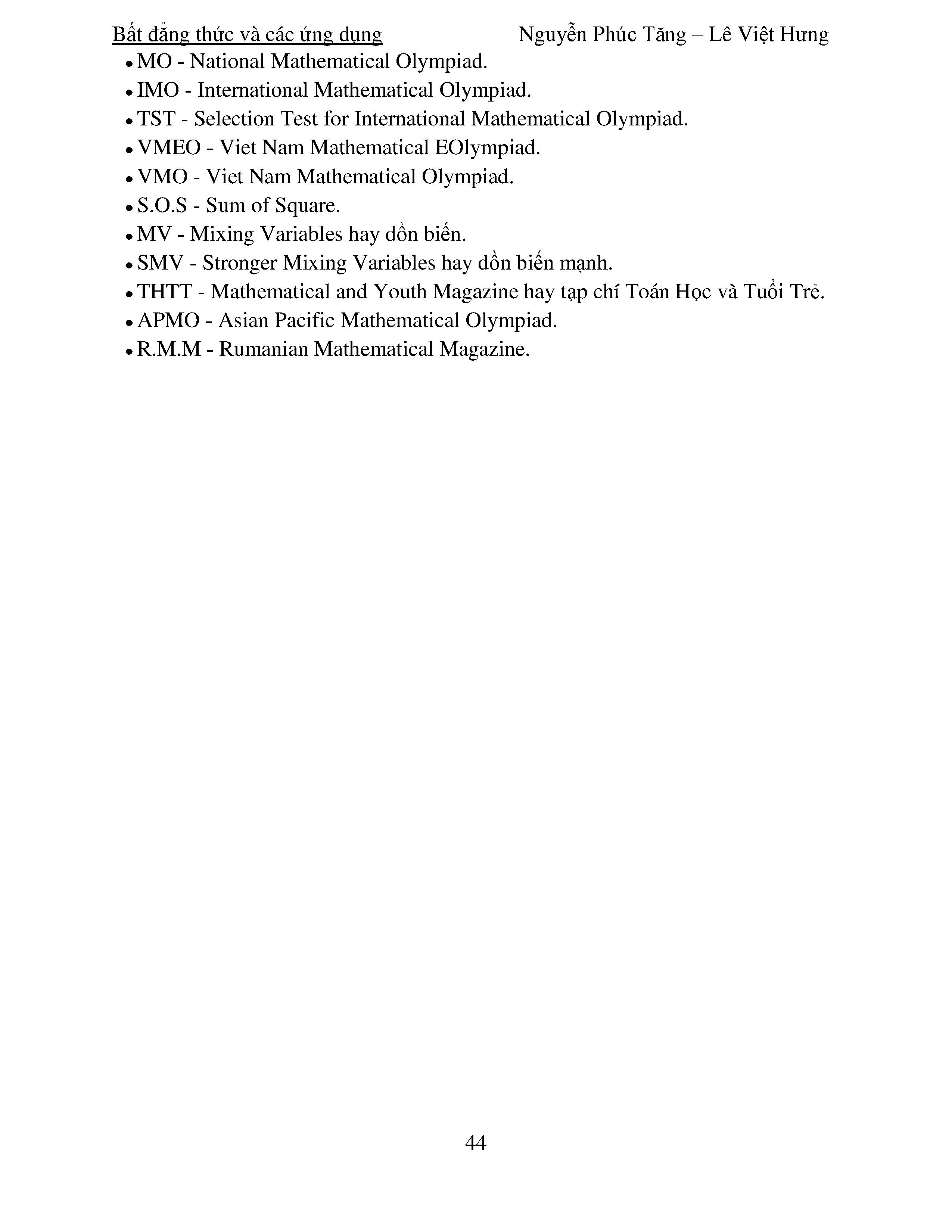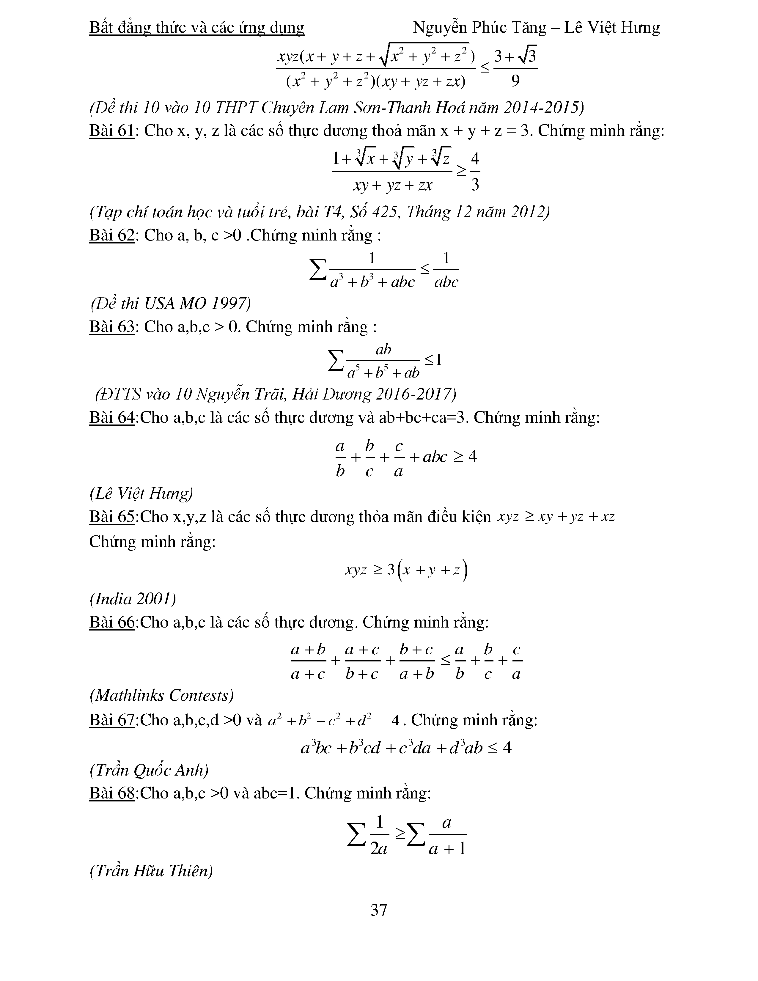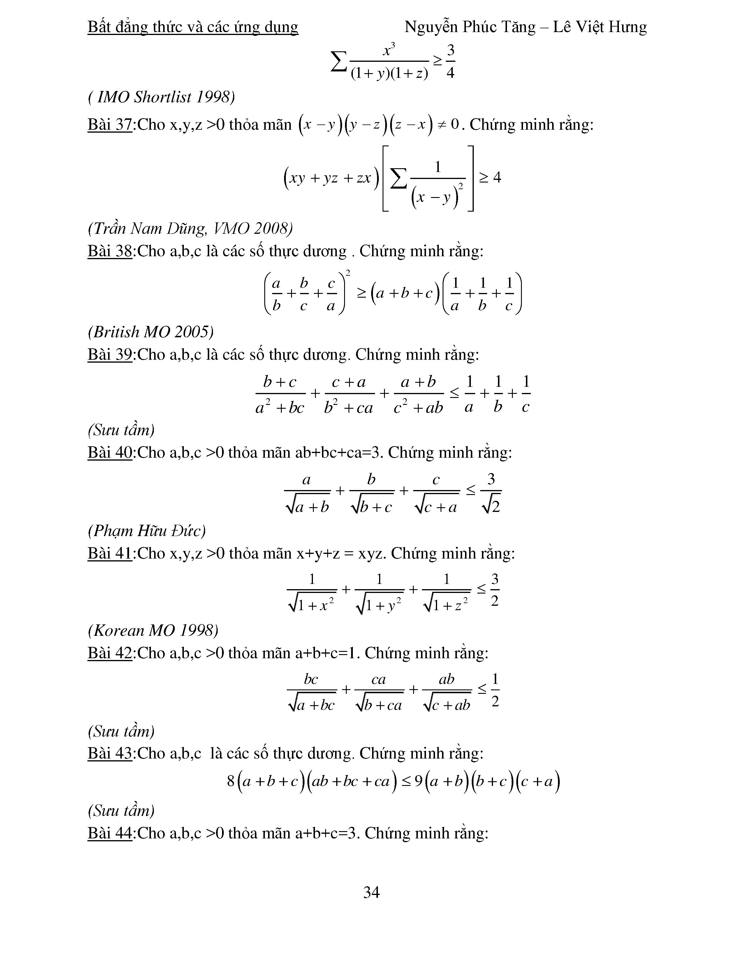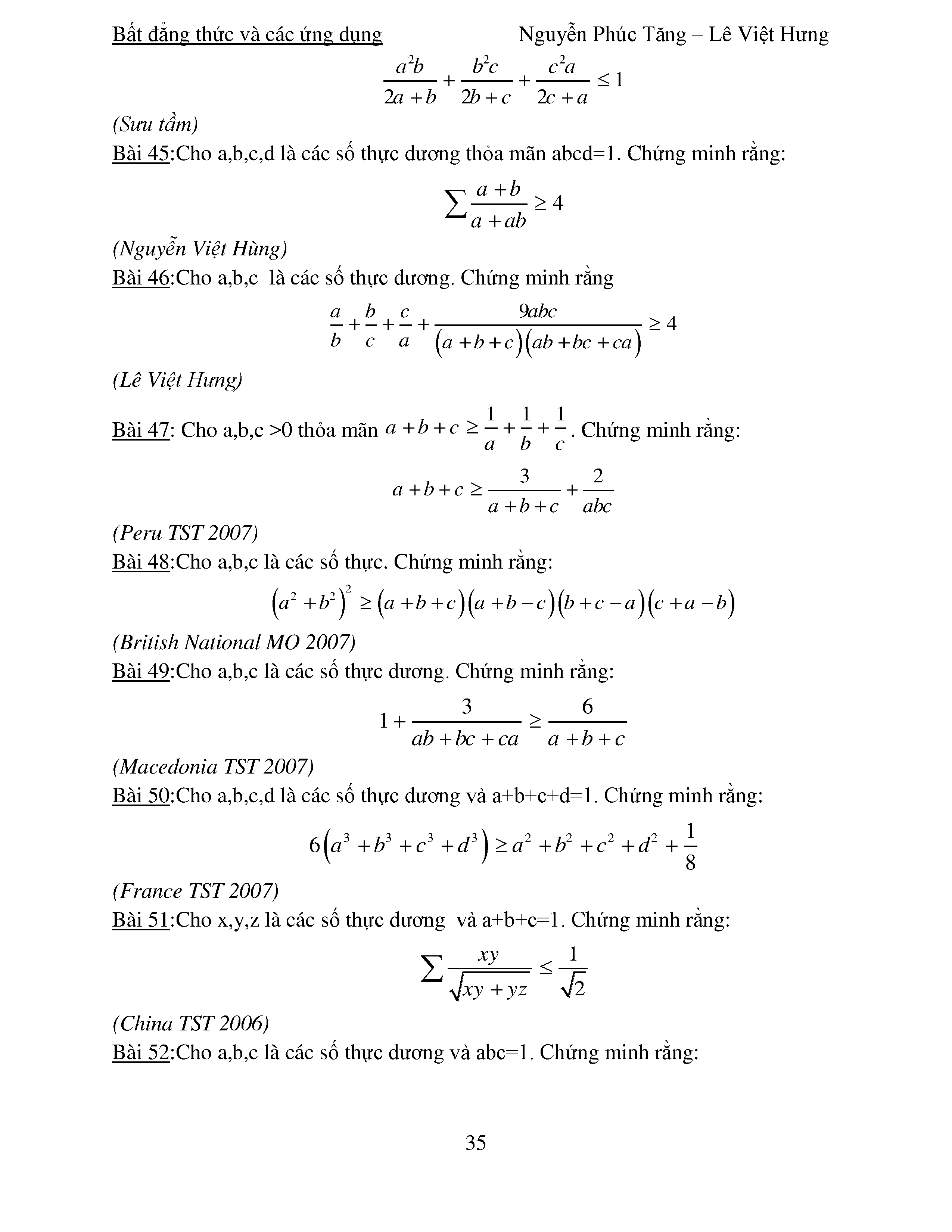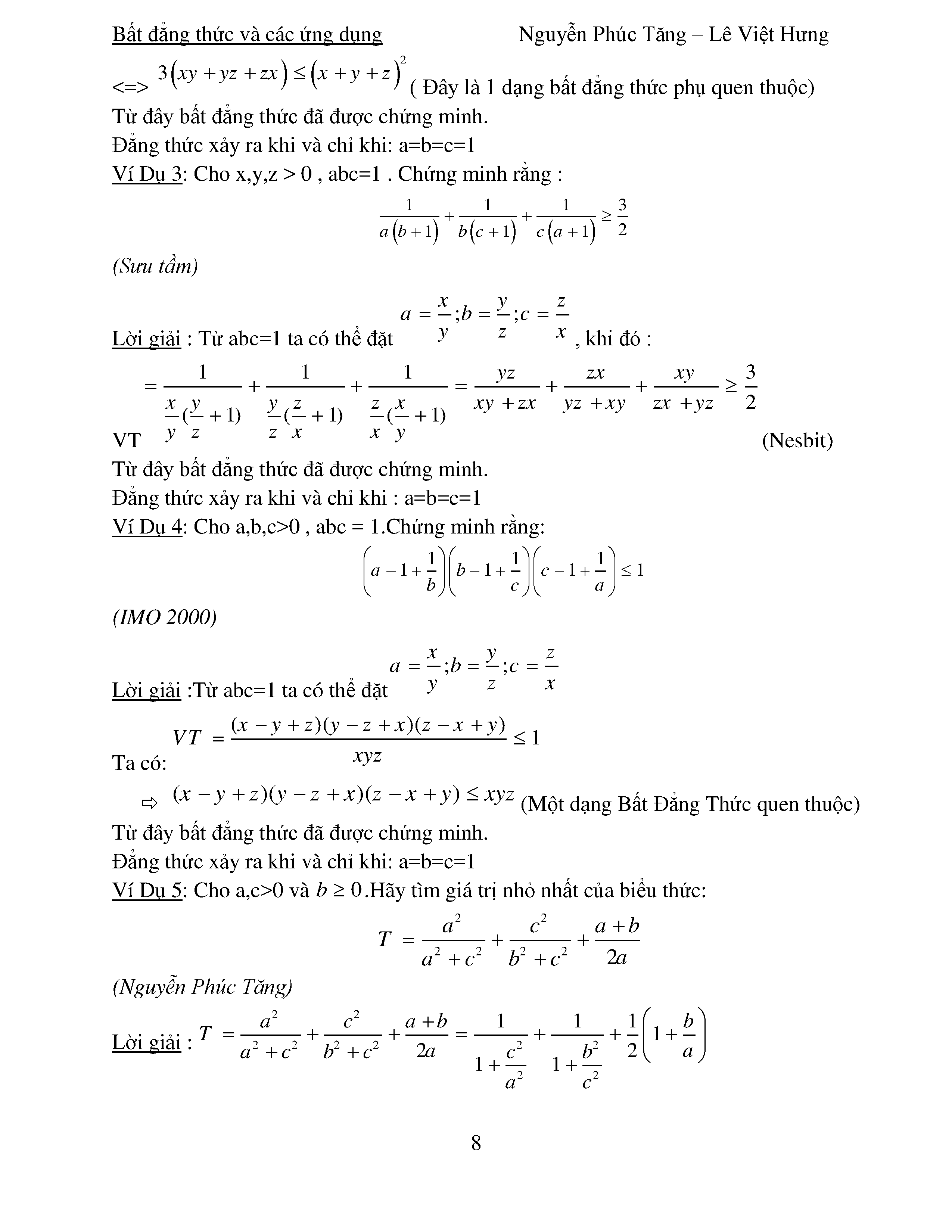 Bất đẳng thức và các ứng dụng Bất đẳng thức