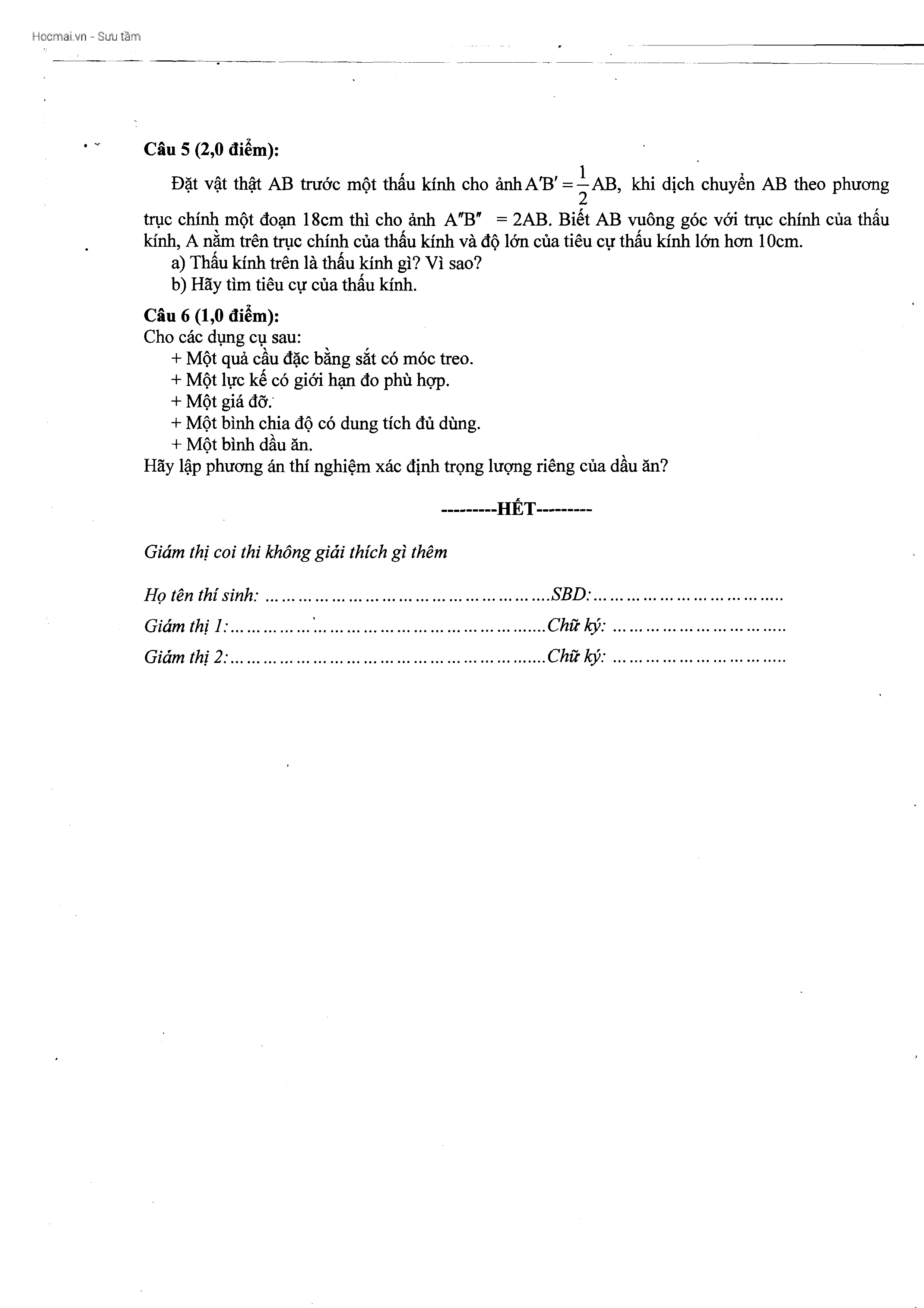 Đề thi tuyển sinh lớp 10 năm học 2016-2017 môn Vật lí - Trường THPT chuyên Bình Phước