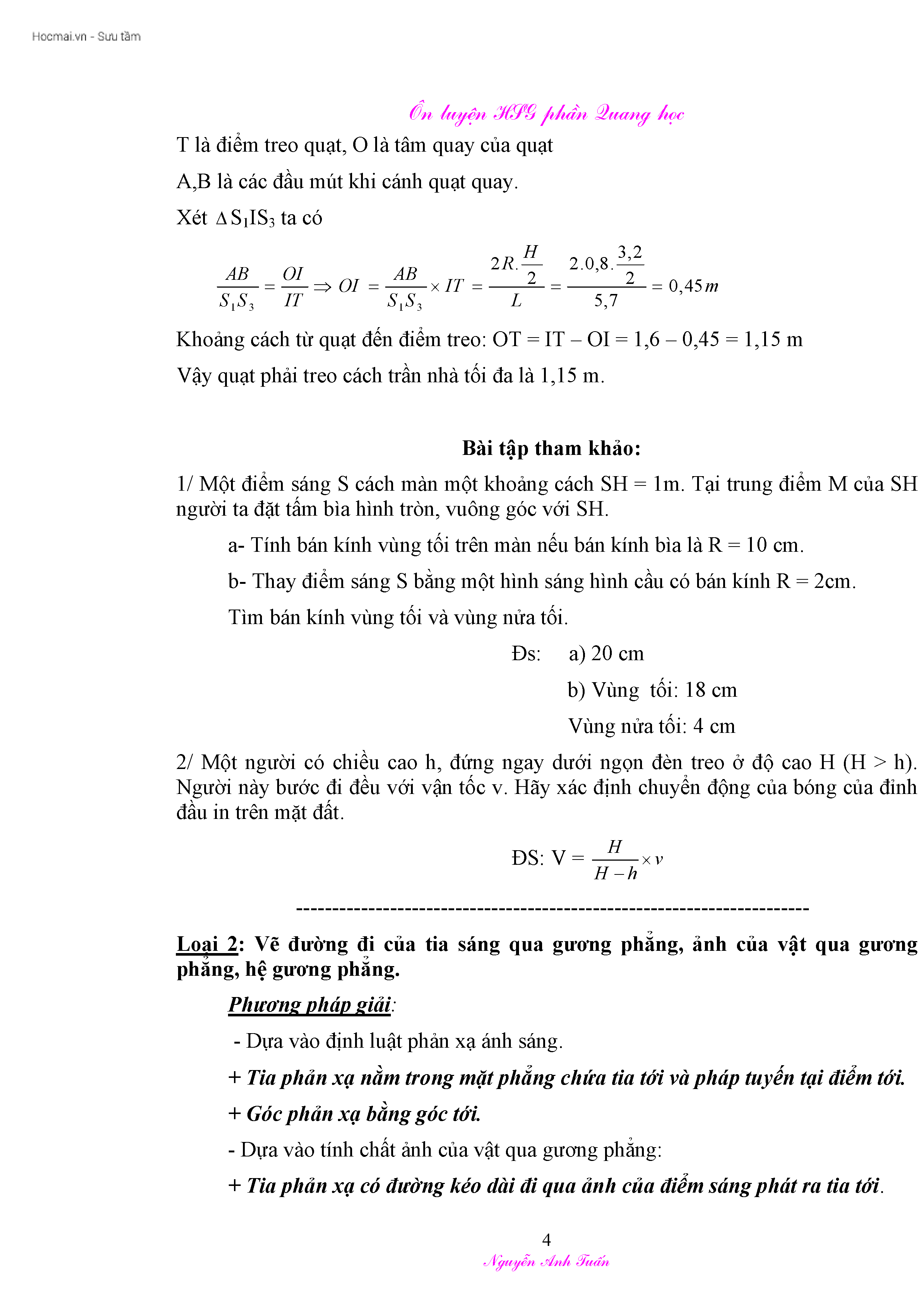Bồi dưỡng học sinh giỏi phần Quang học - Lớp 9 - Môn Vật lí