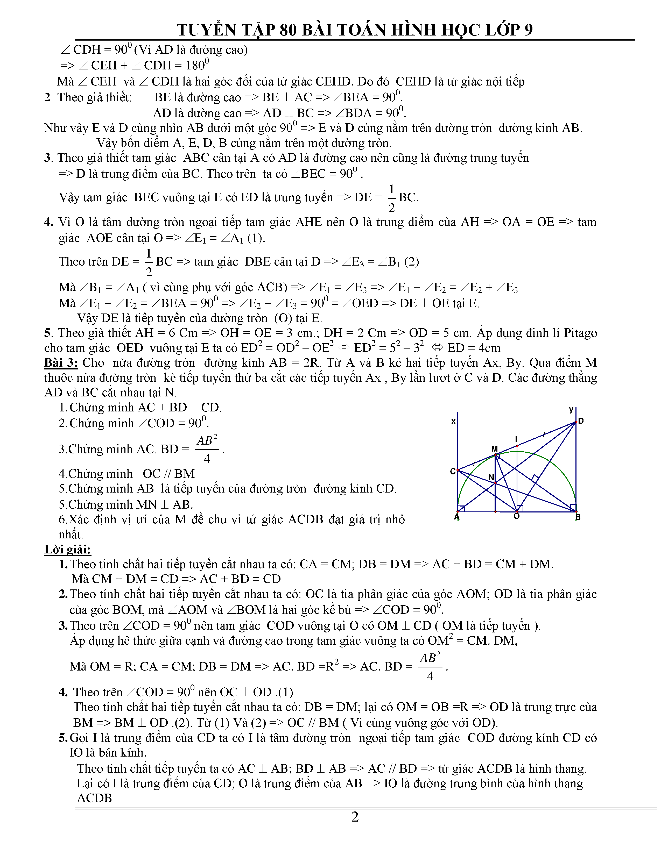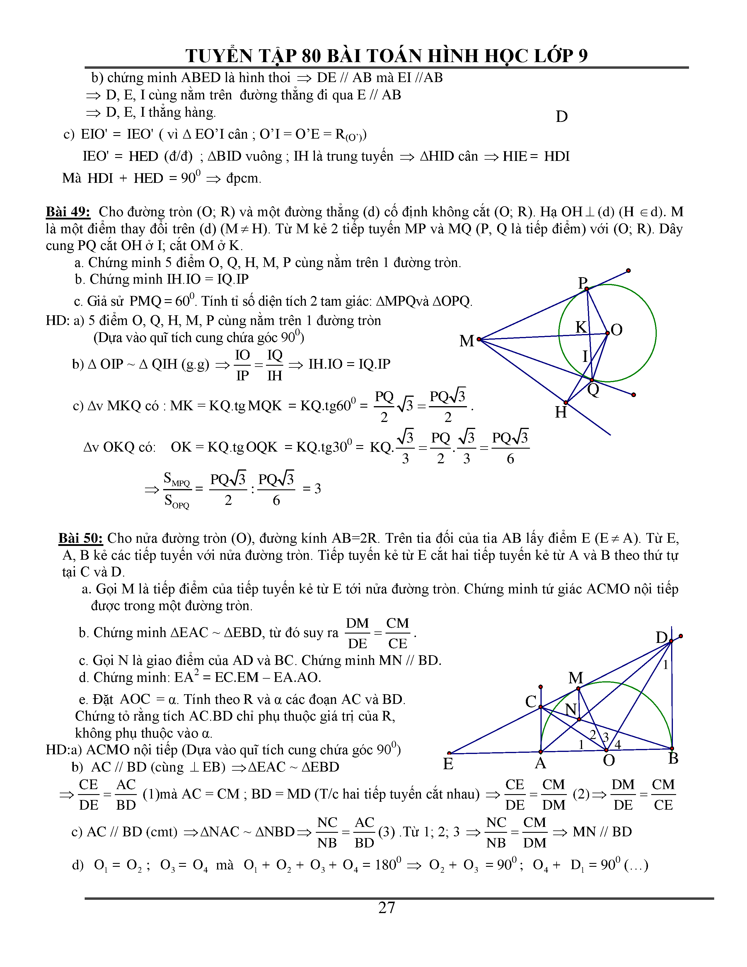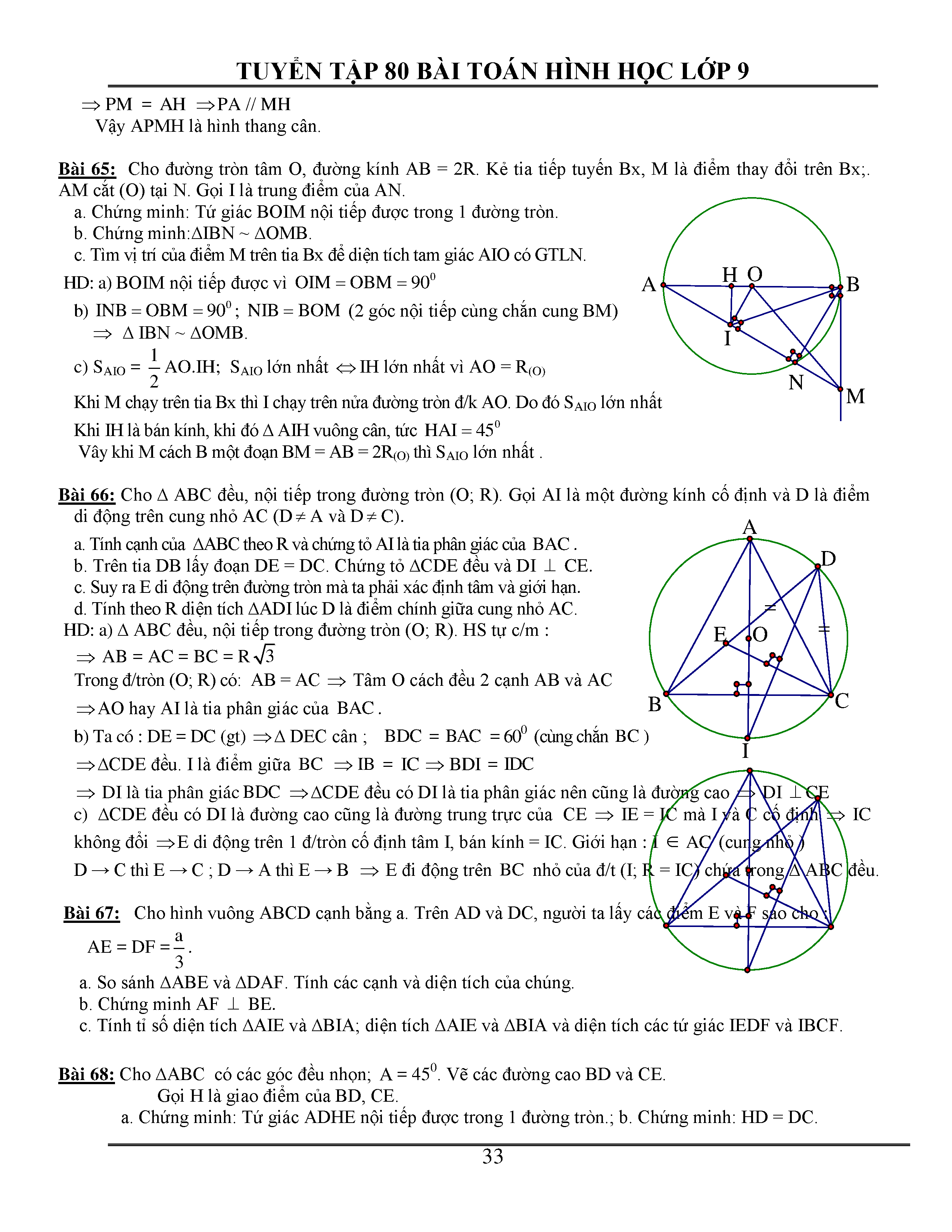 TUYỂN TẬP 80 BÀI TOÁN HÌNH HỌC 9 - CÓ LỜI GIẢI CHI TIẾT