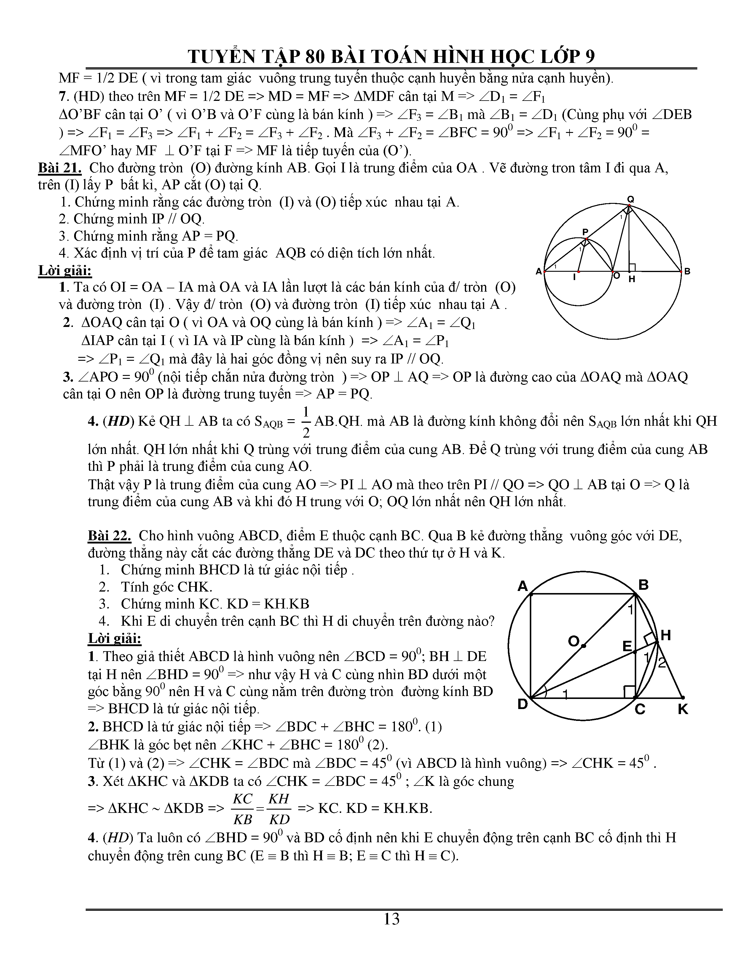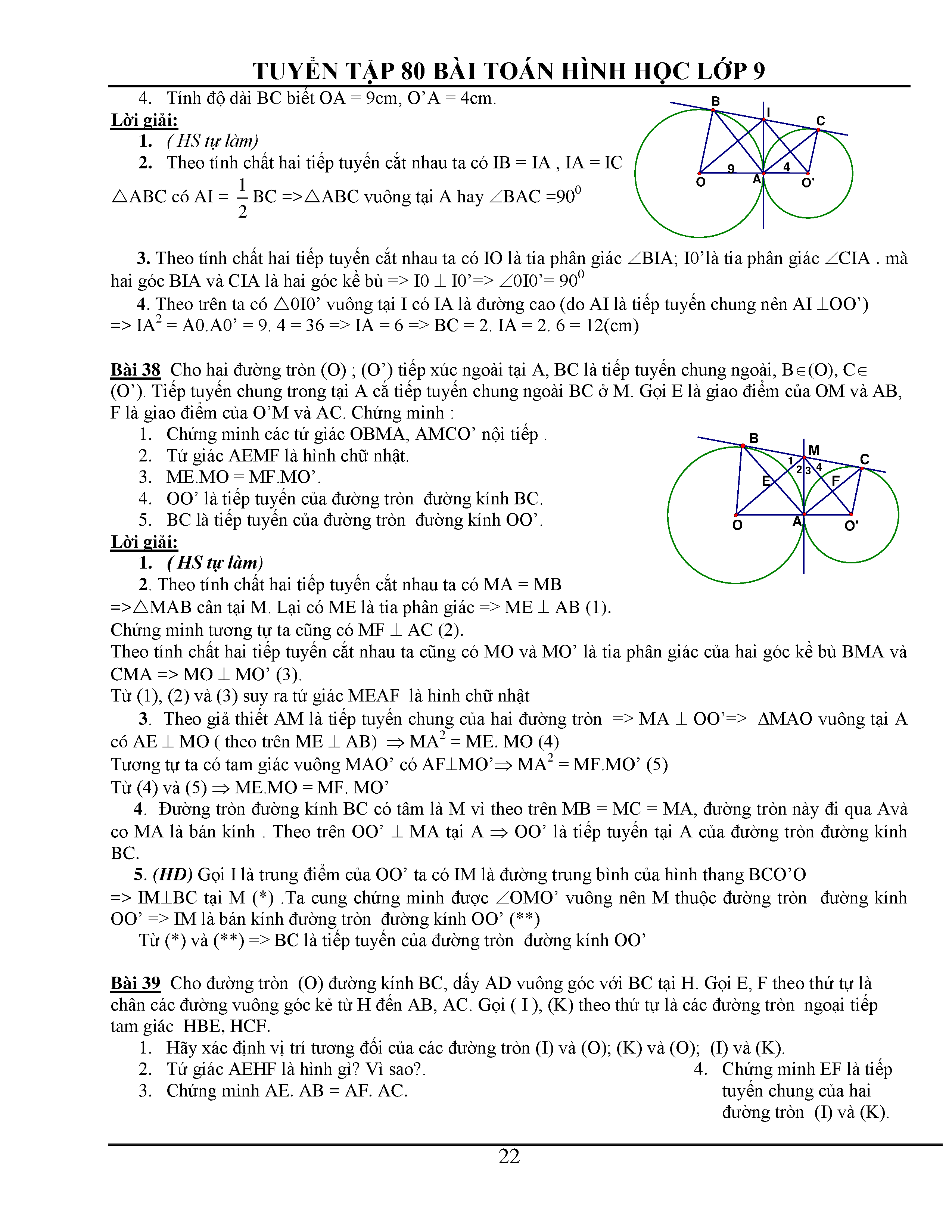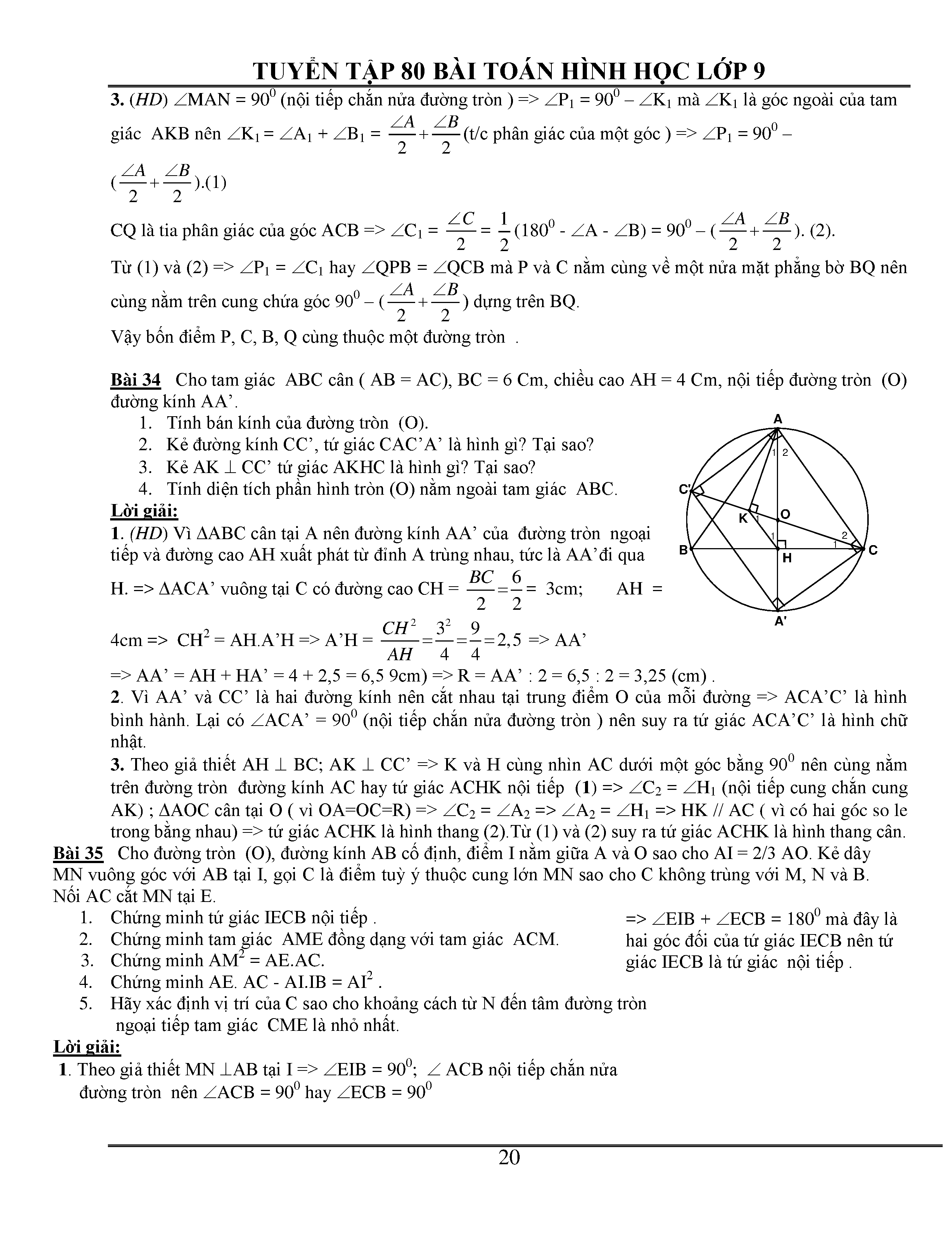 TUYỂN TẬP 80 BÀI TOÁN HÌNH HỌC 9 - CÓ LỜI GIẢI CHI TIẾT