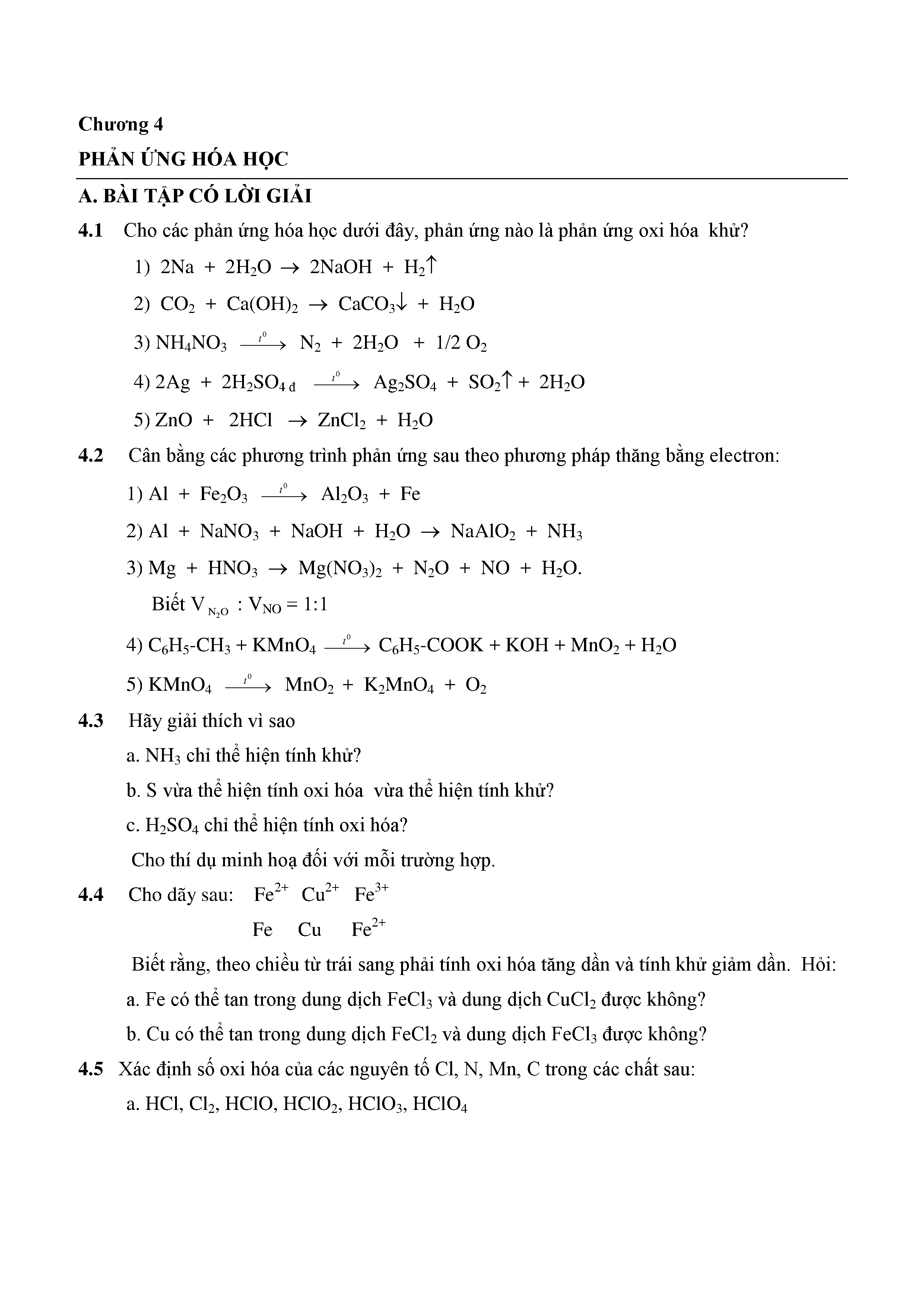 Các dạng bài tập hóa học 10 - có hướng dẫn giải