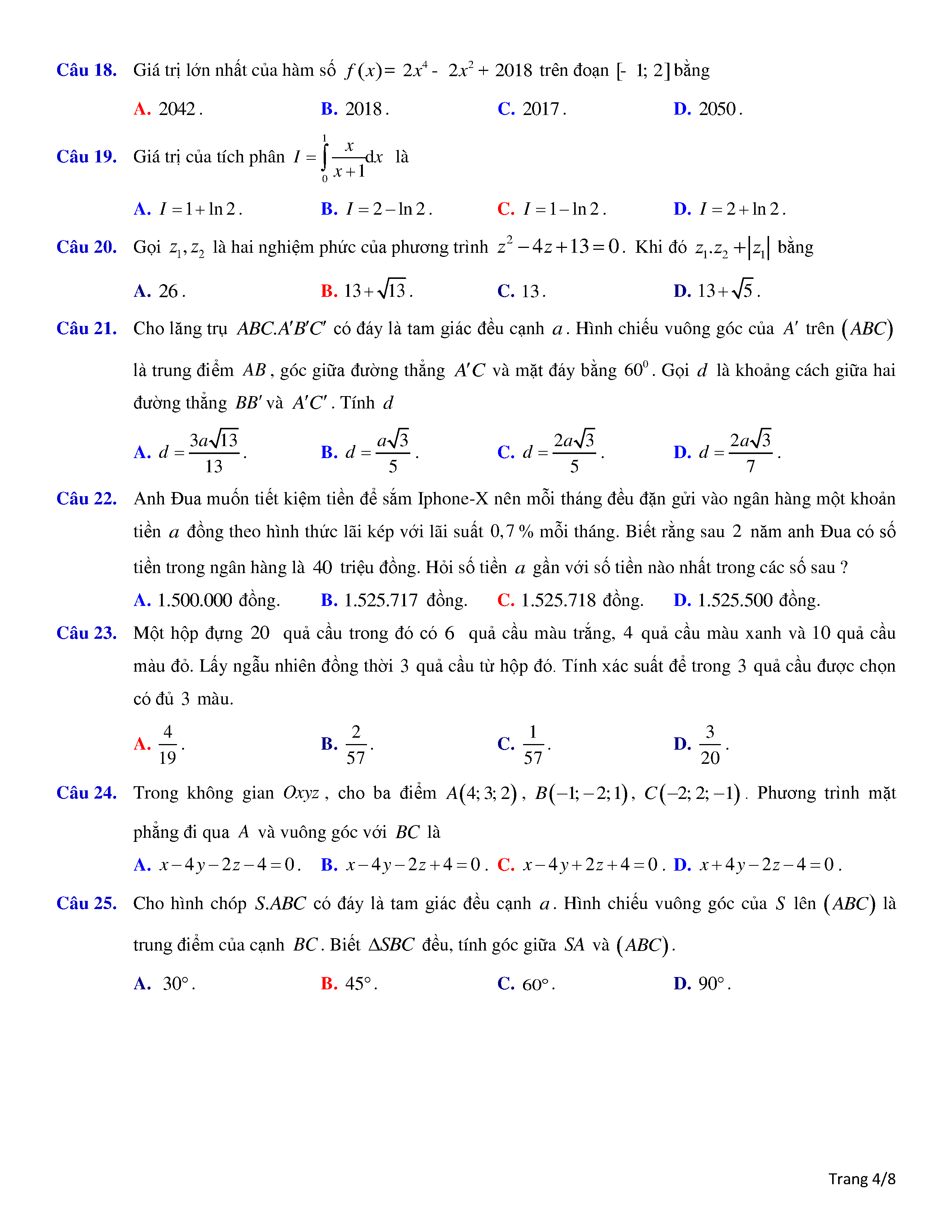 Tổng hợp 52 đề THPT quốc gia 2018 có cấu trúc mới_ đề số 16 (có đáp án)