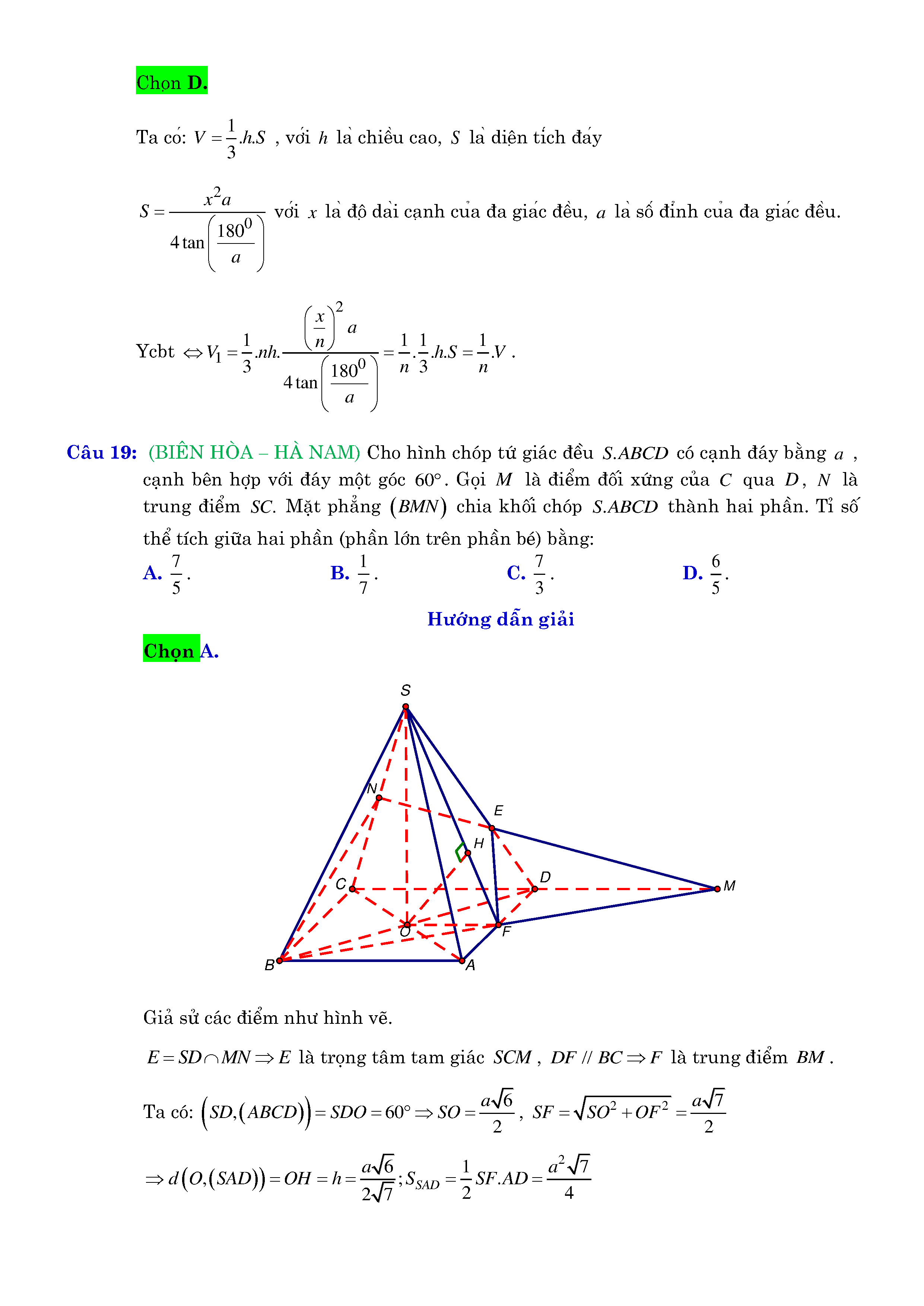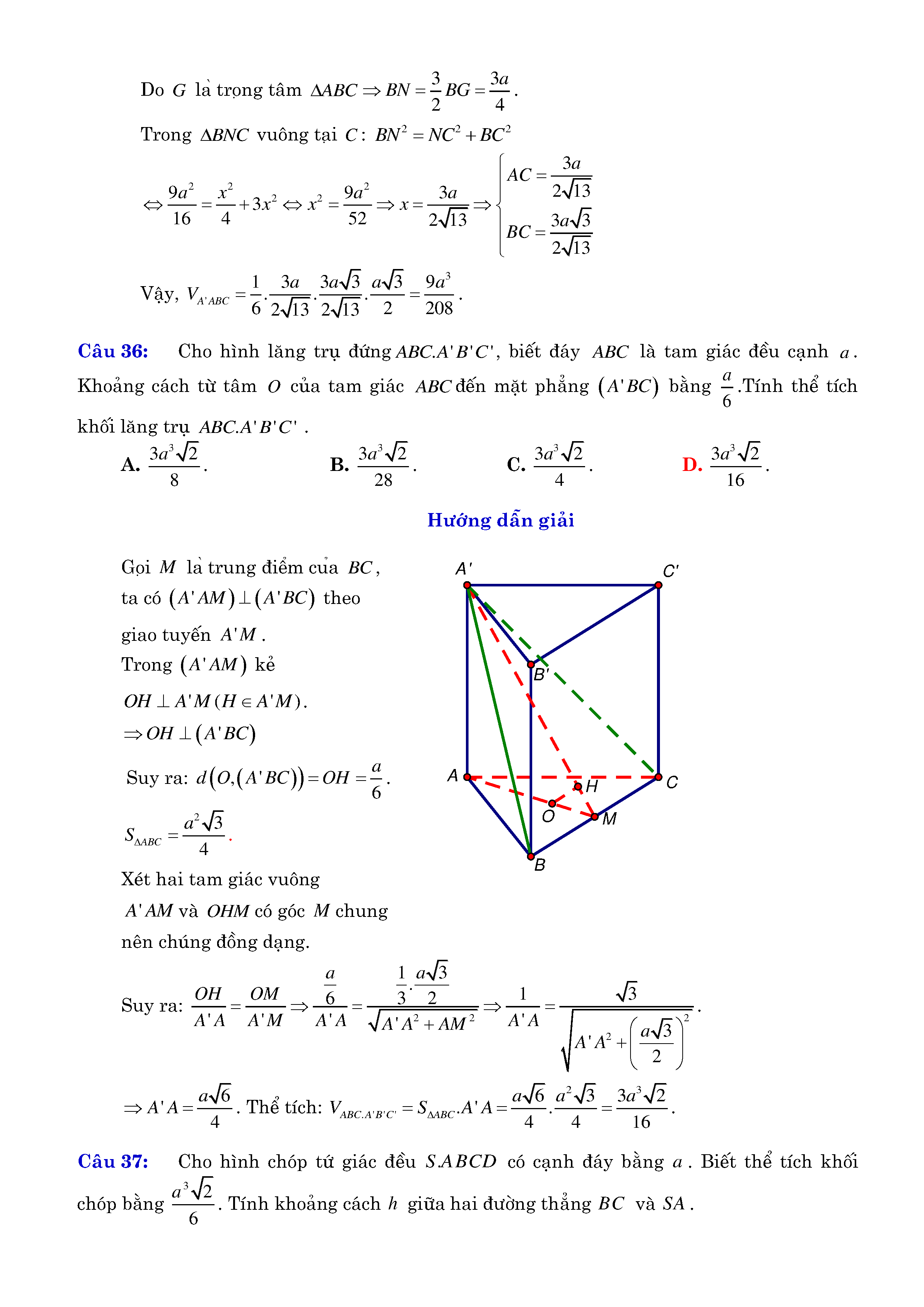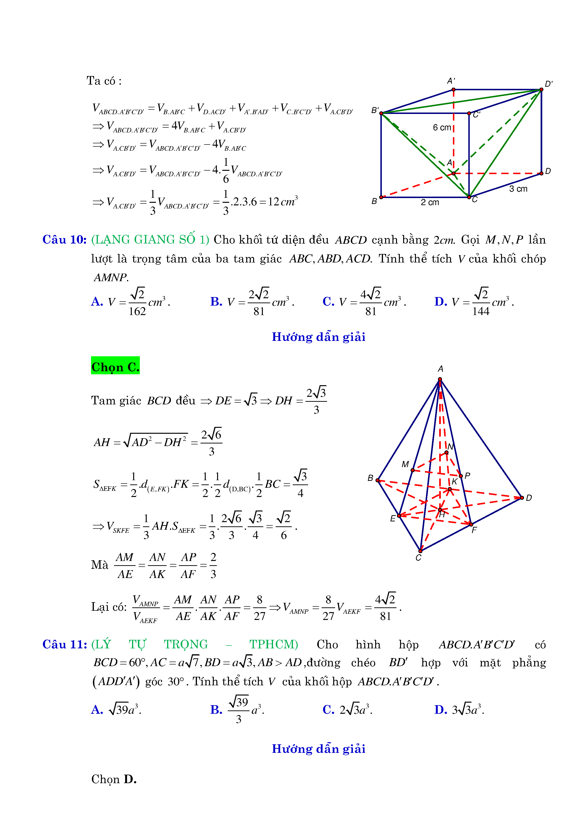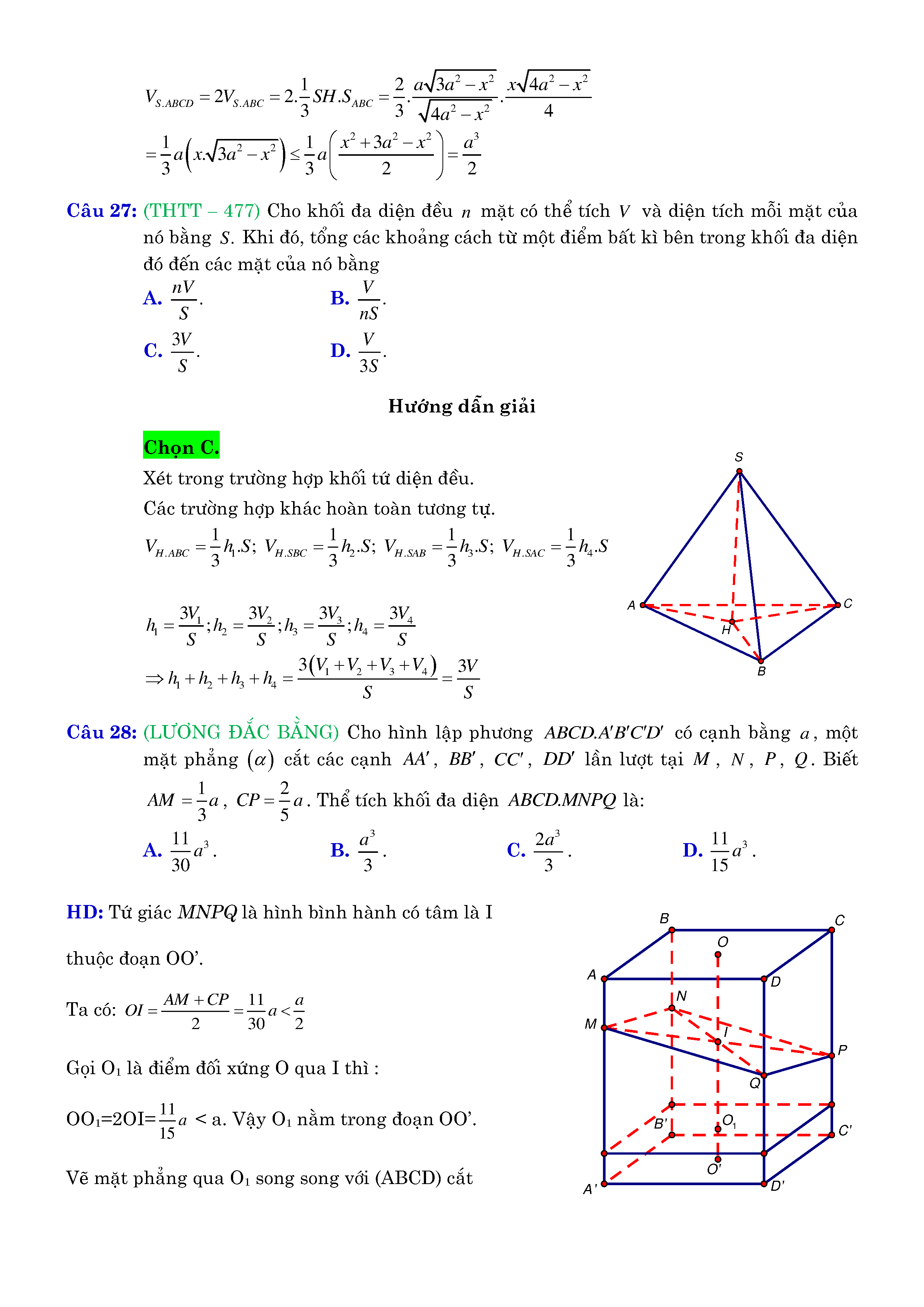 CÔNG THỨC THỂ TÍCH KHỐI ĐA DIỆN - LÝ THUYẾT & TRẮC NGHIỆM ÔN TẬP