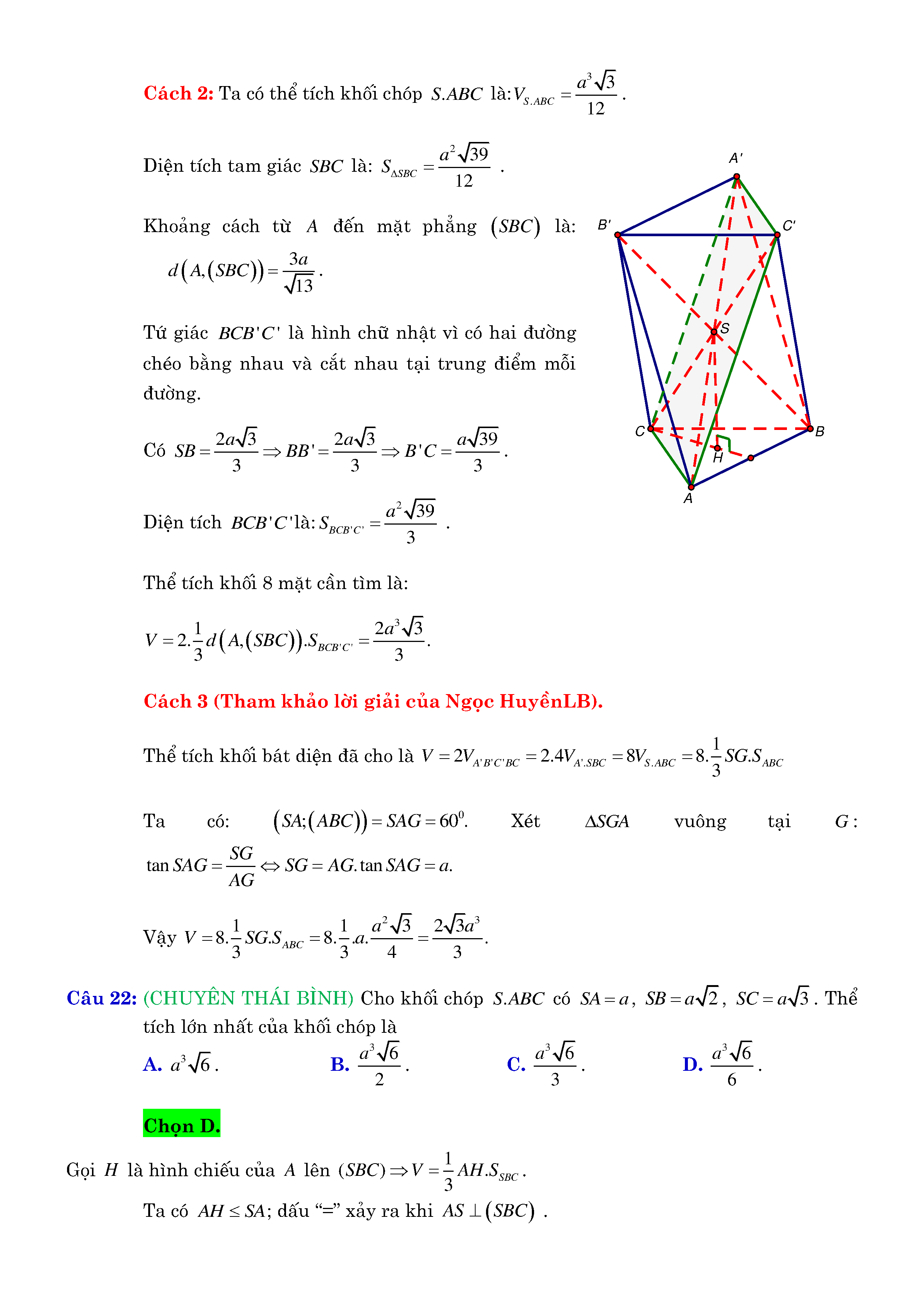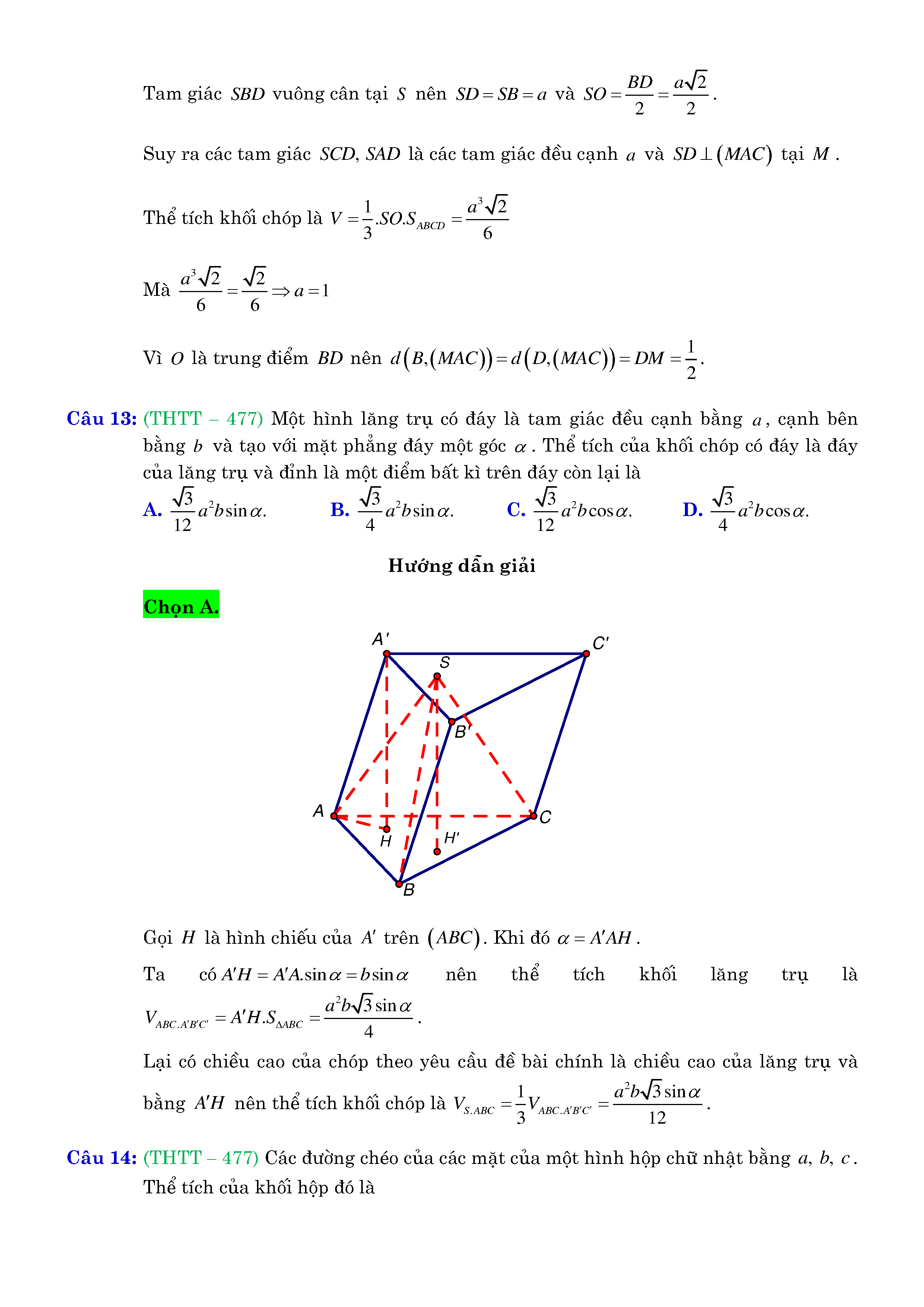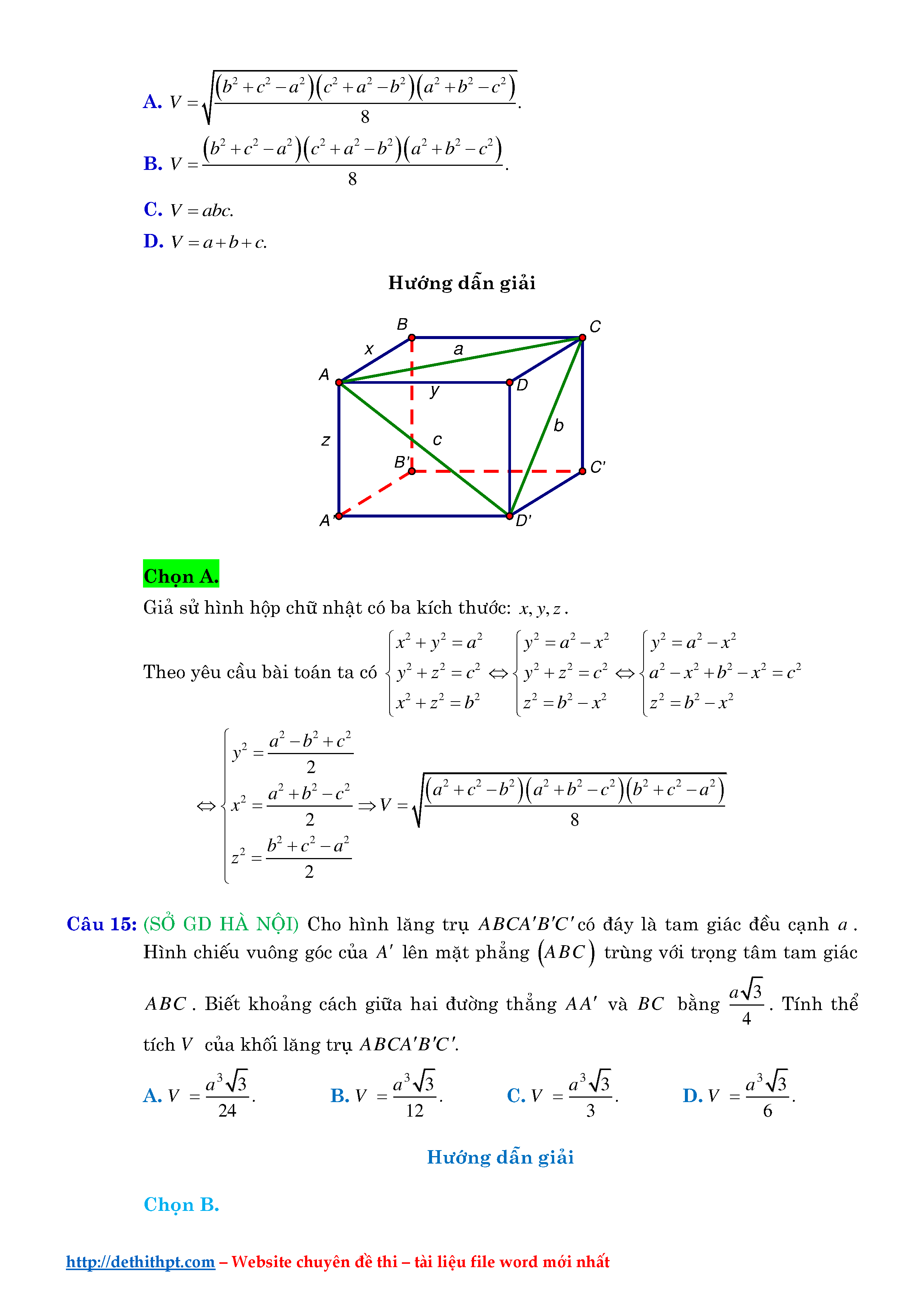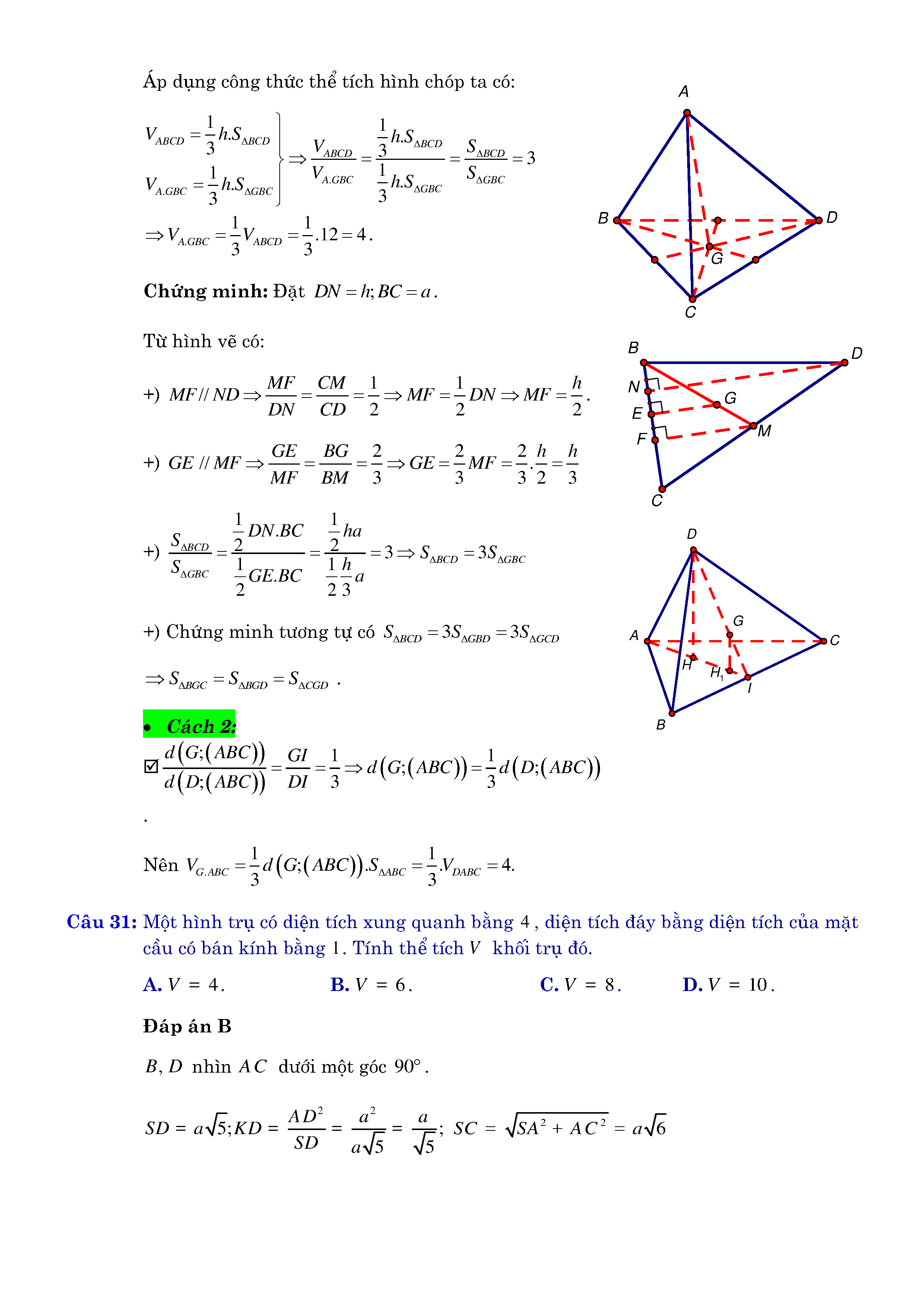 CÔNG THỨC THỂ TÍCH KHỐI ĐA DIỆN - LÝ THUYẾT & TRẮC NGHIỆM ÔN TẬP