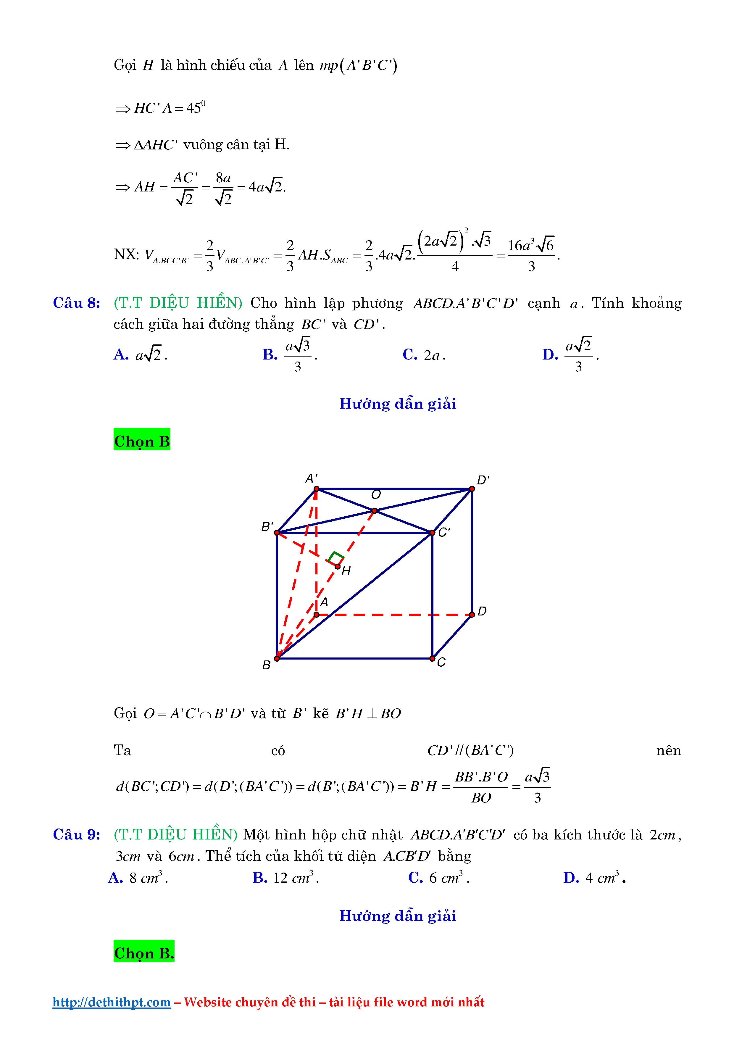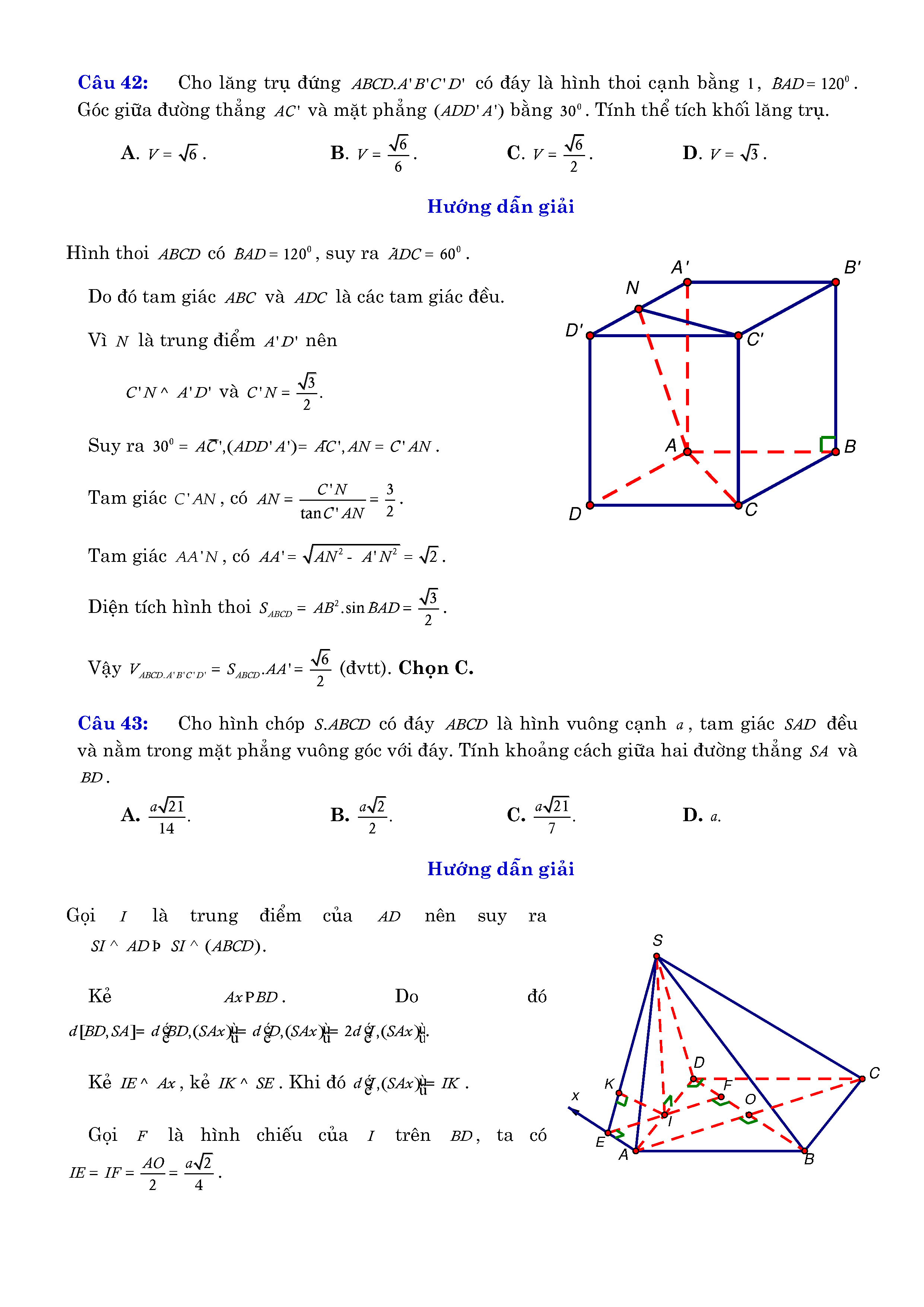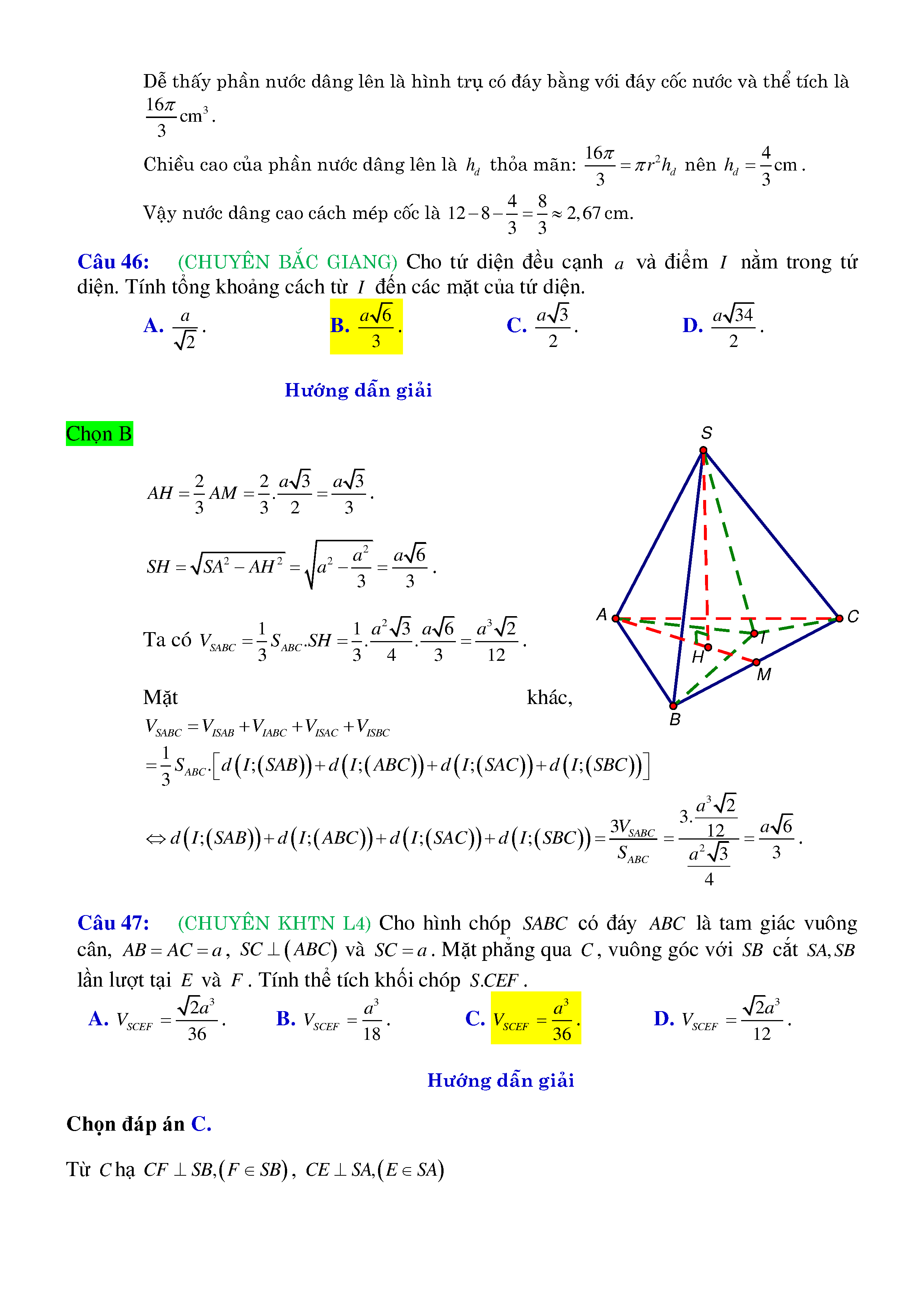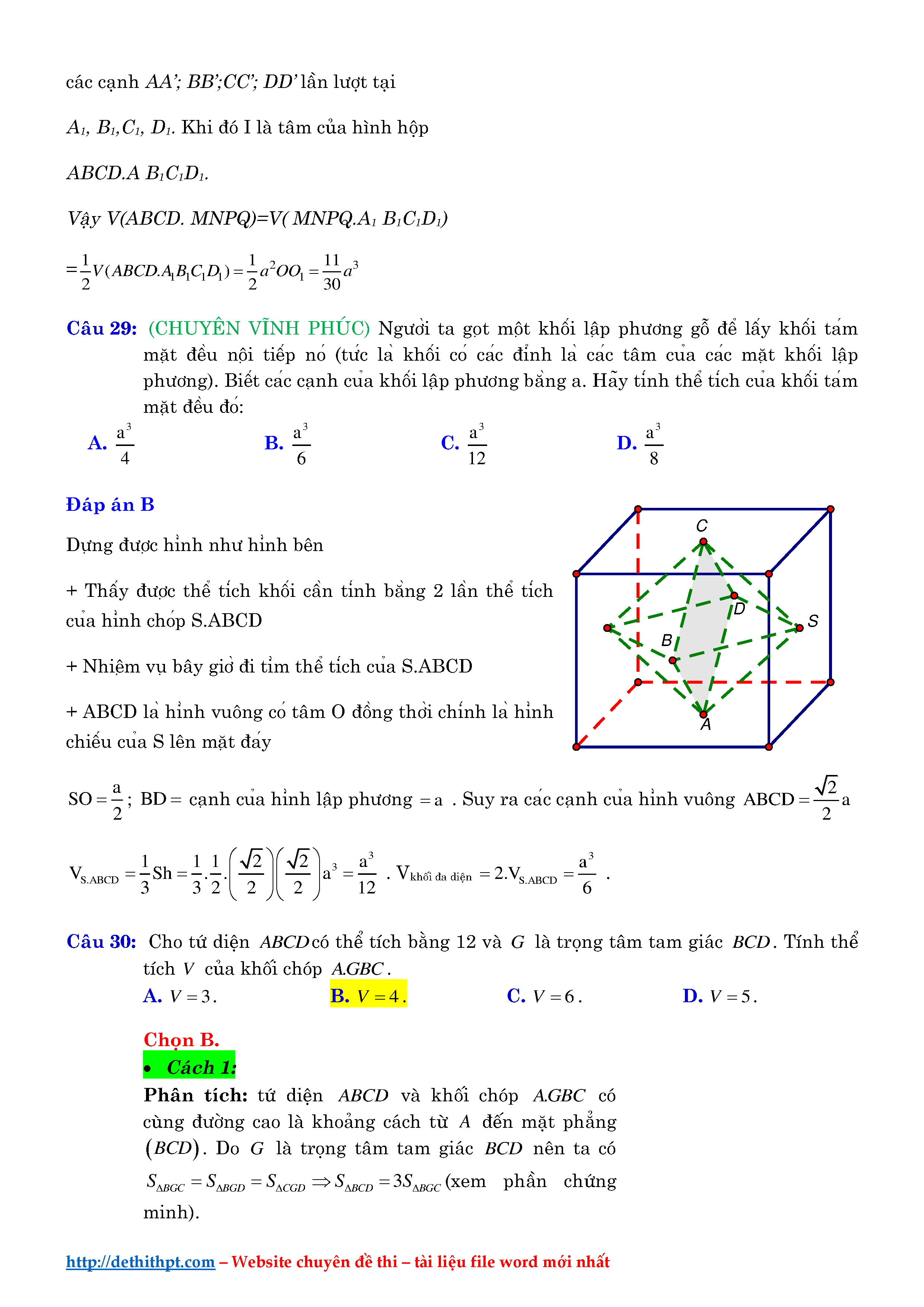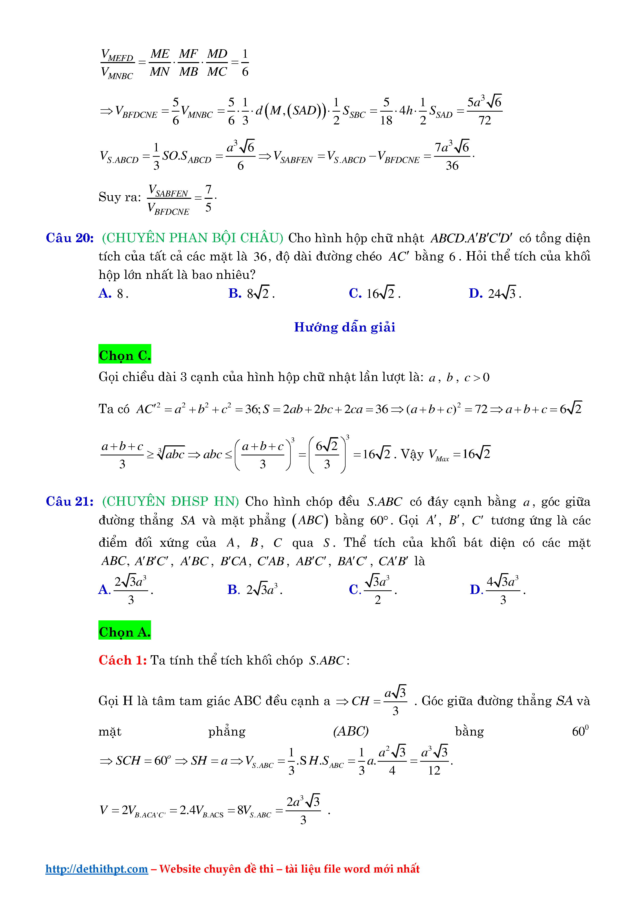 CÔNG THỨC THỂ TÍCH KHỐI ĐA DIỆN - LÝ THUYẾT & TRẮC NGHIỆM ÔN TẬP