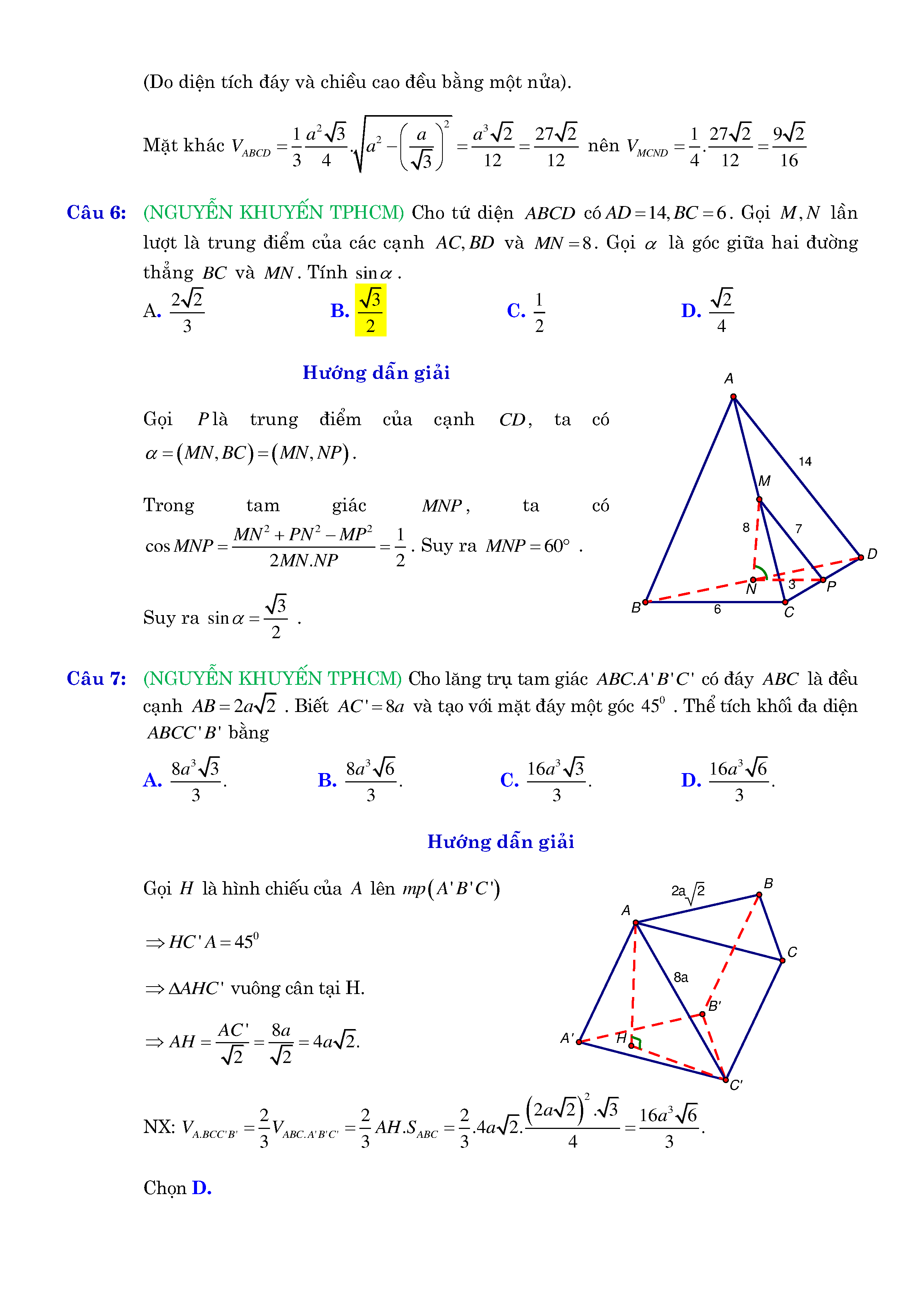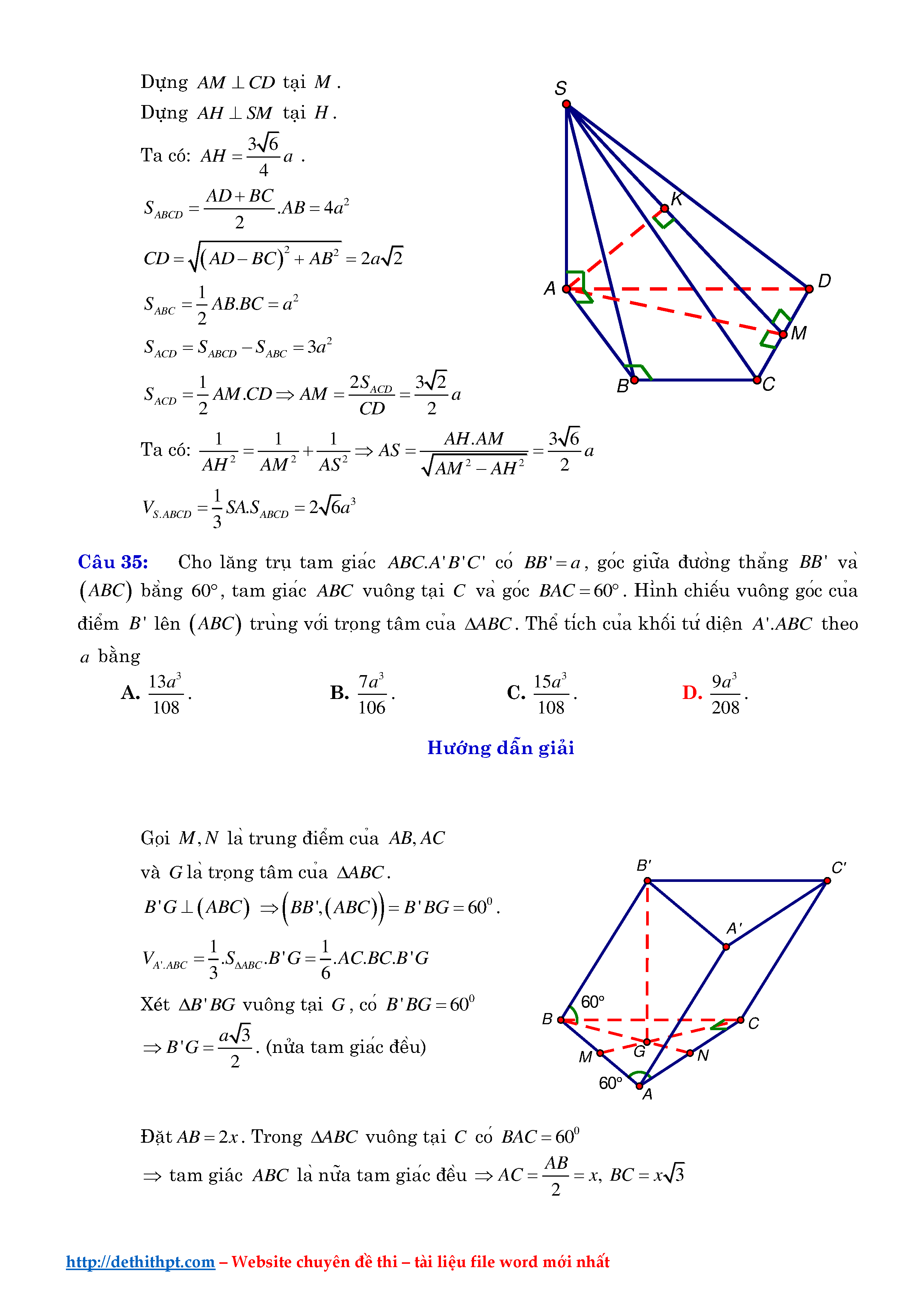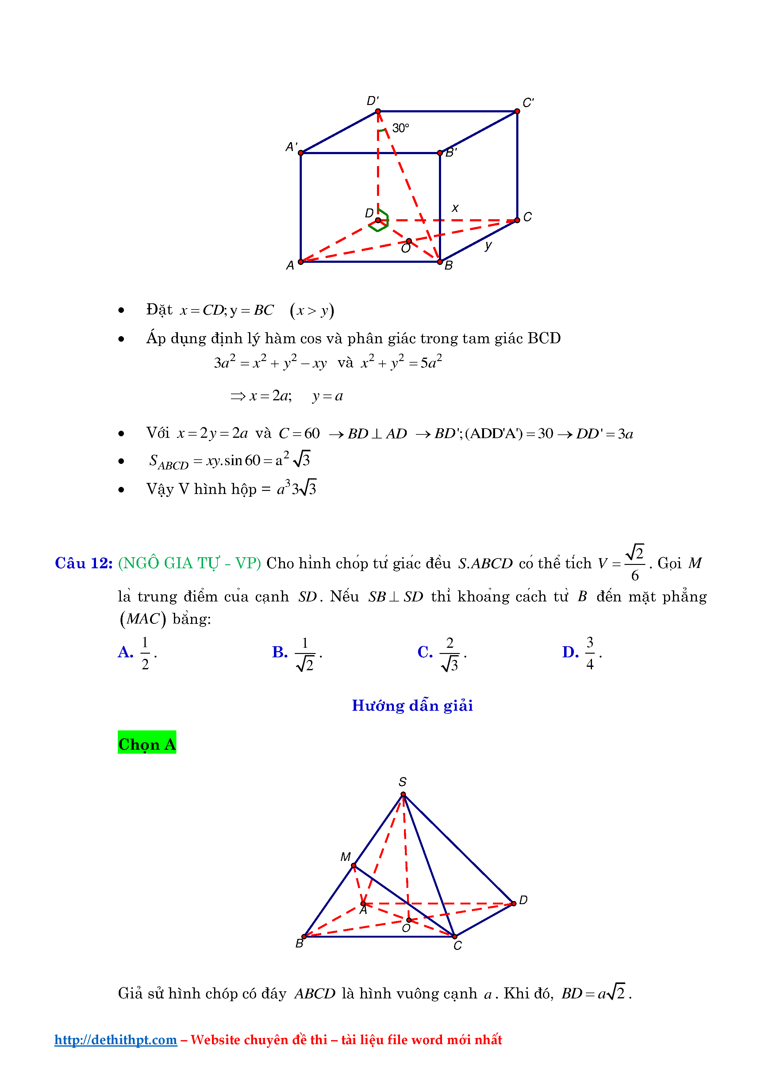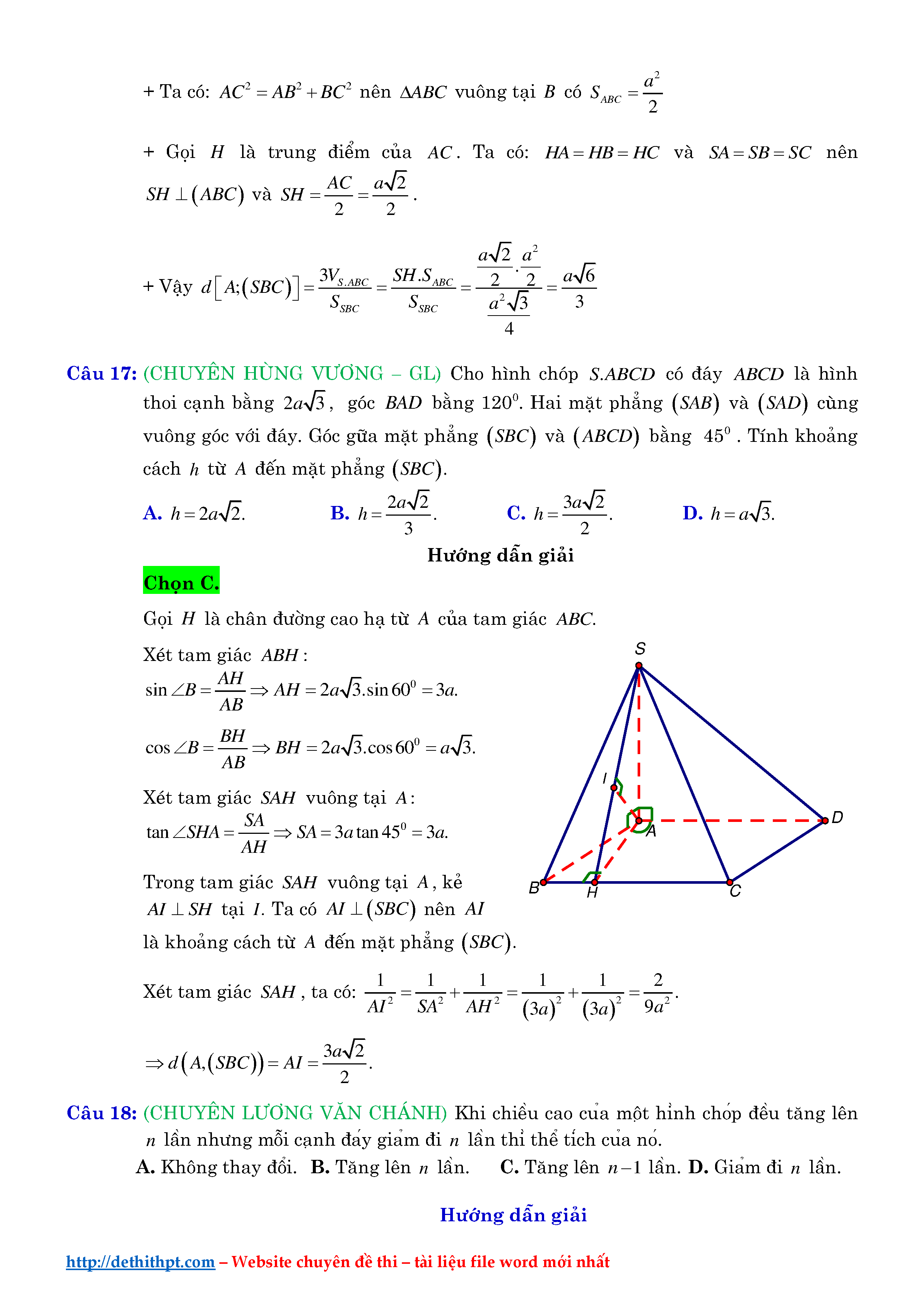 CÔNG THỨC THỂ TÍCH KHỐI ĐA DIỆN - LÝ THUYẾT & TRẮC NGHIỆM ÔN TẬP