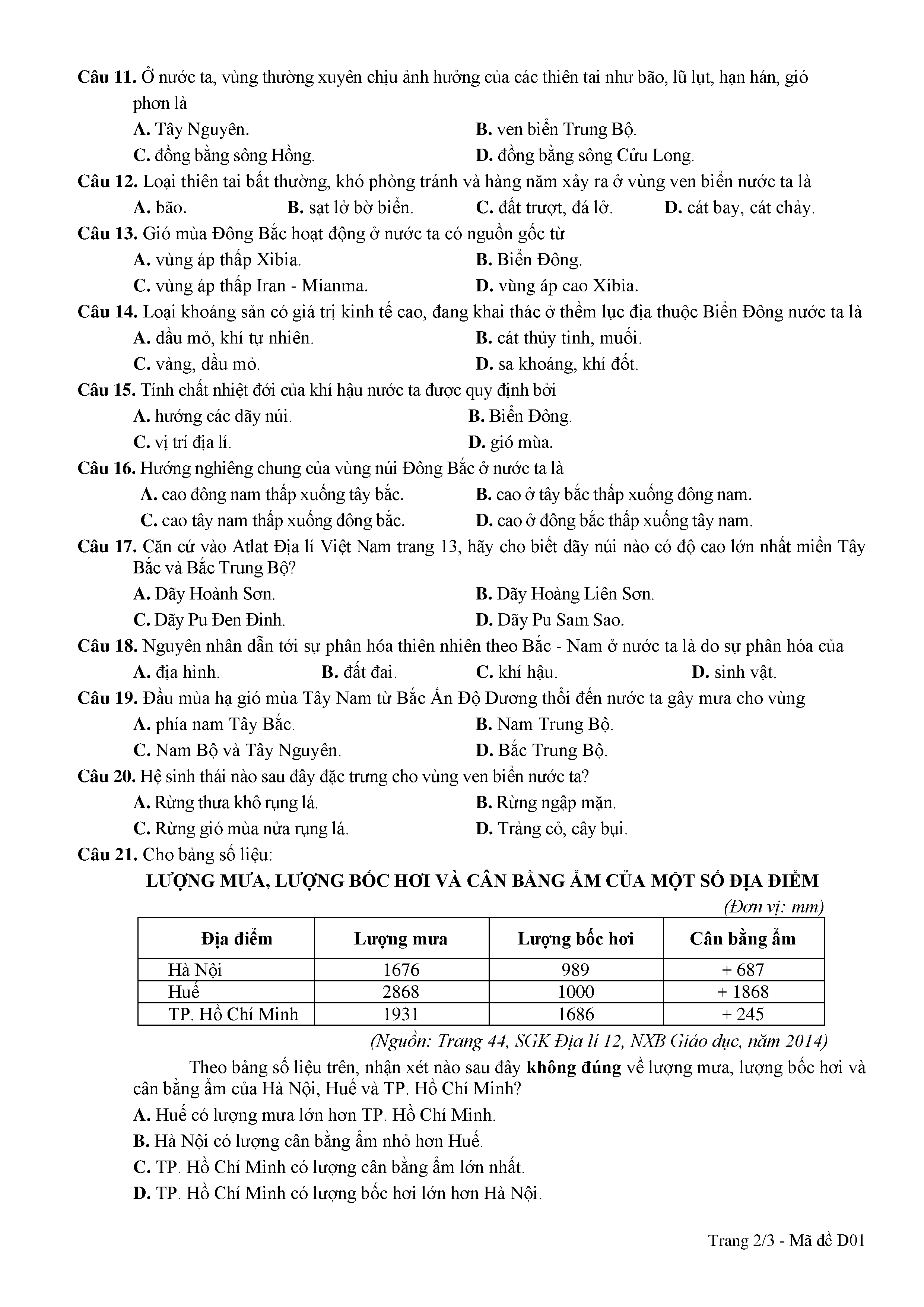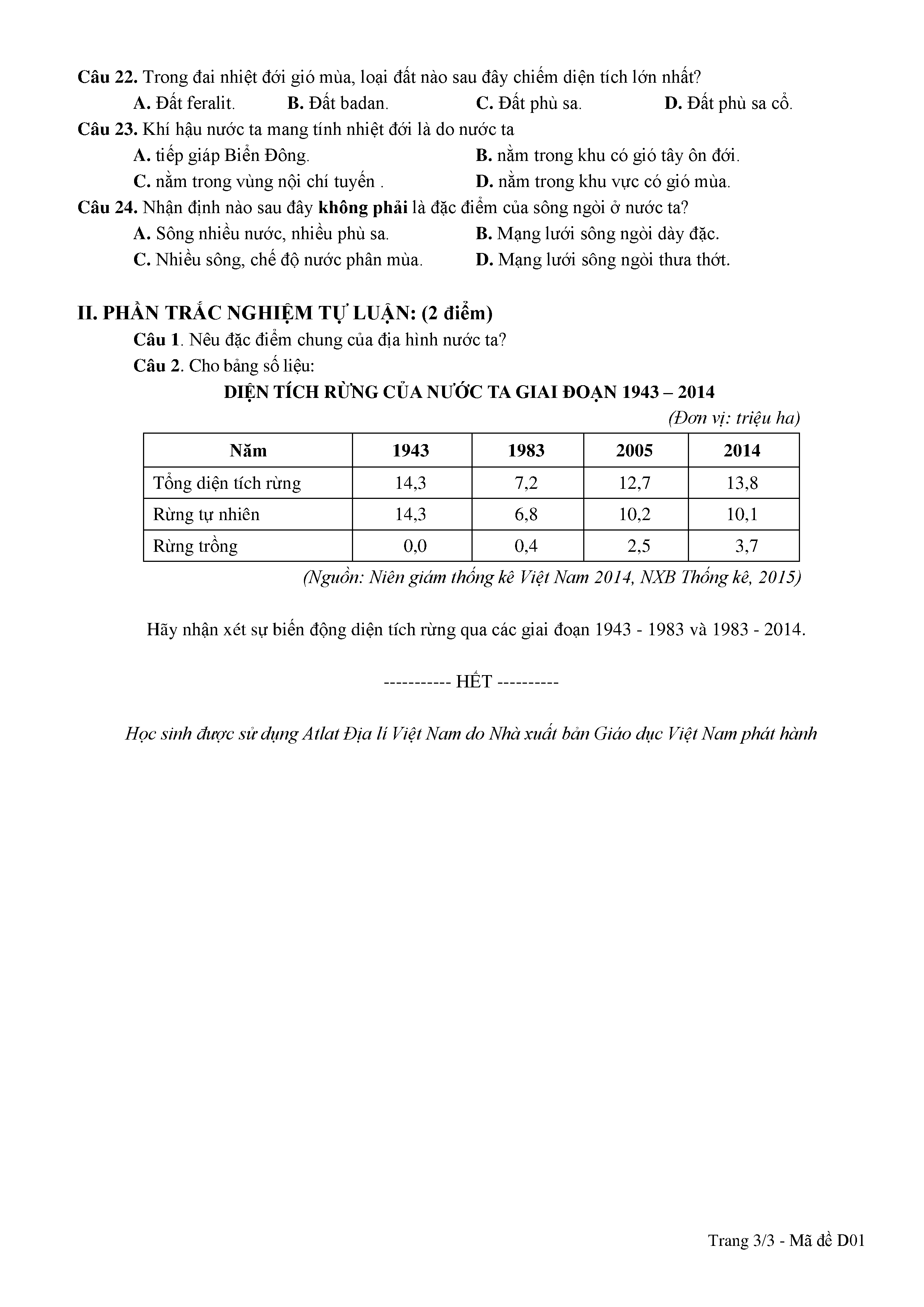 ĐỀ KIỂM TRA HỌC KÌ I - SỐ 4 - ĐỊA LÍ - LỚP 12