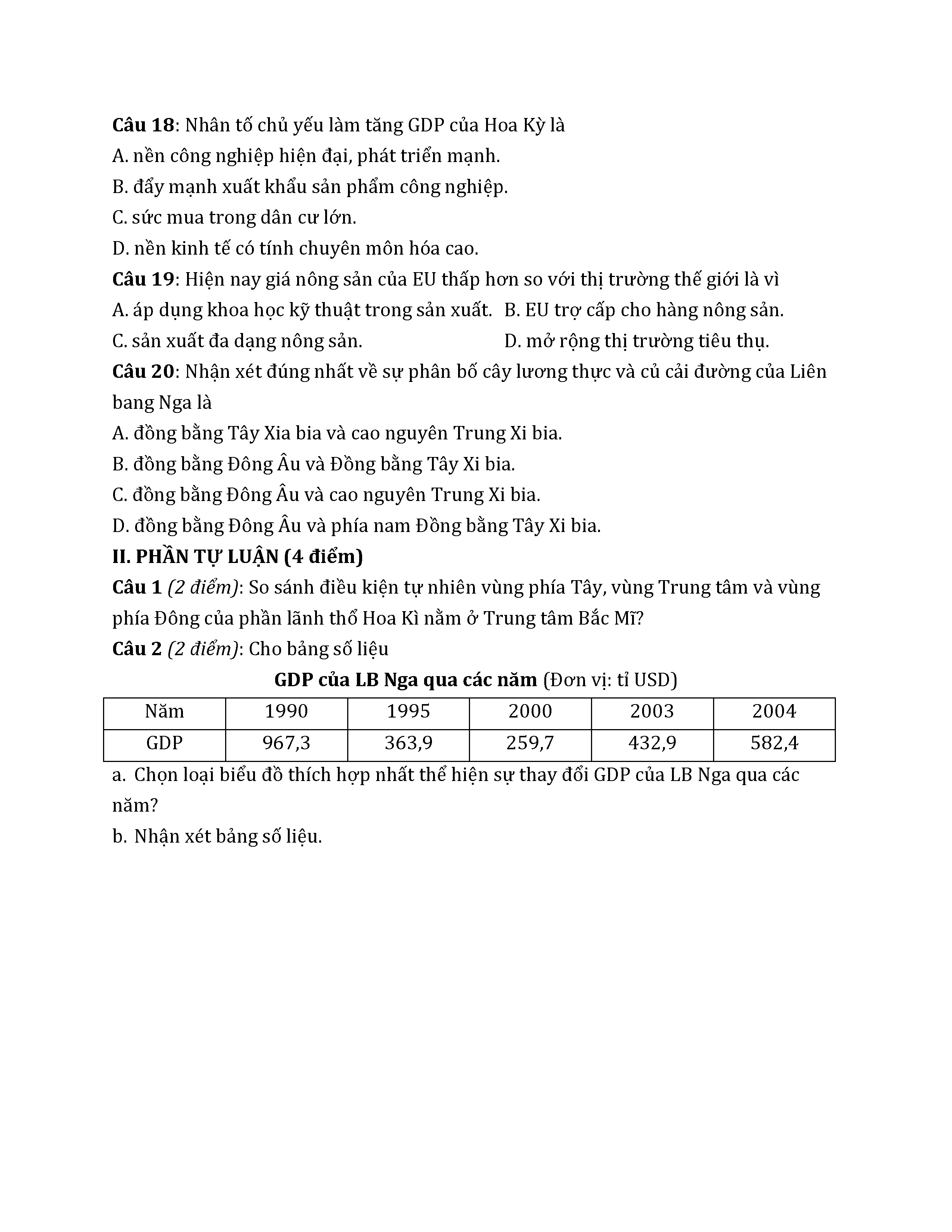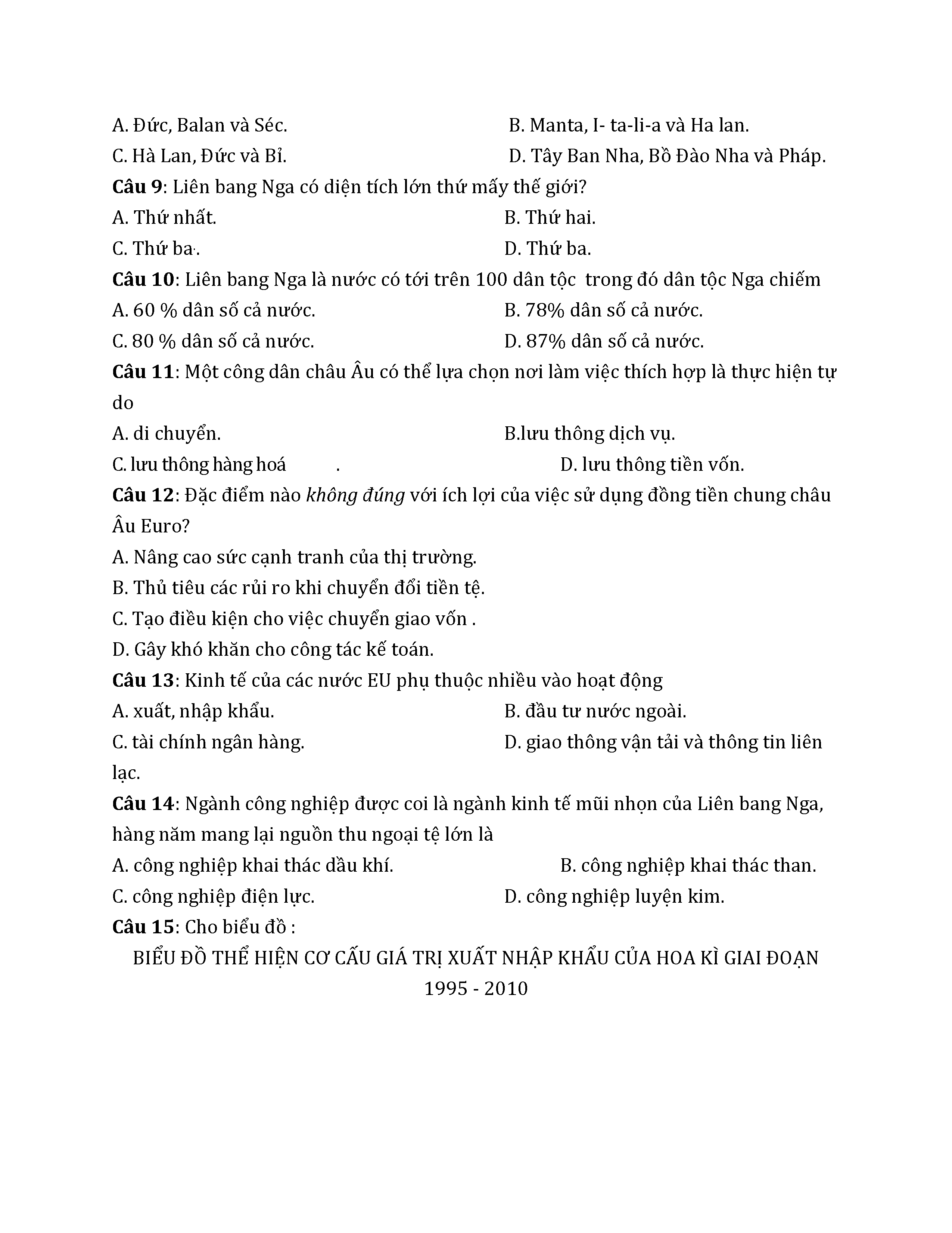 ĐỀ KIỂM TRA HỌC KÌ I - SÔ 1 - ĐỊA LÍ - LỚP 11