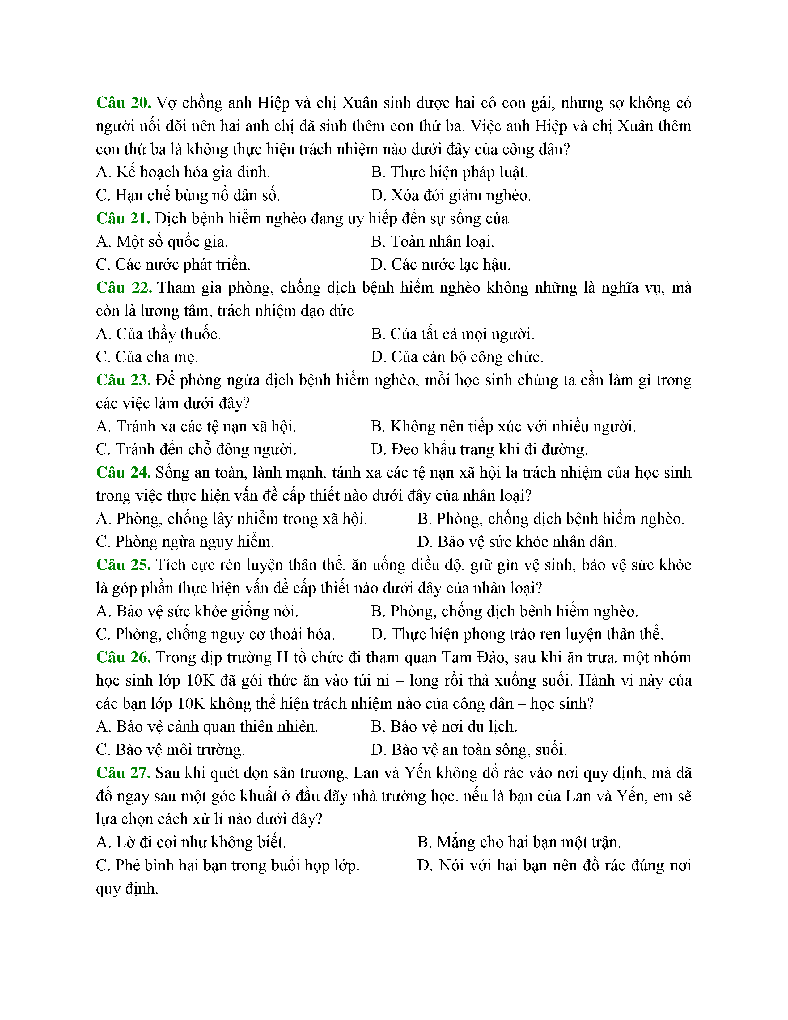 CÔNG DÂN VỚI CÁC VẤN ĐỀ CẤP THIẾT CỦA NHÂN LOẠI - PHẦN 1 - GDCD - LỚP 10