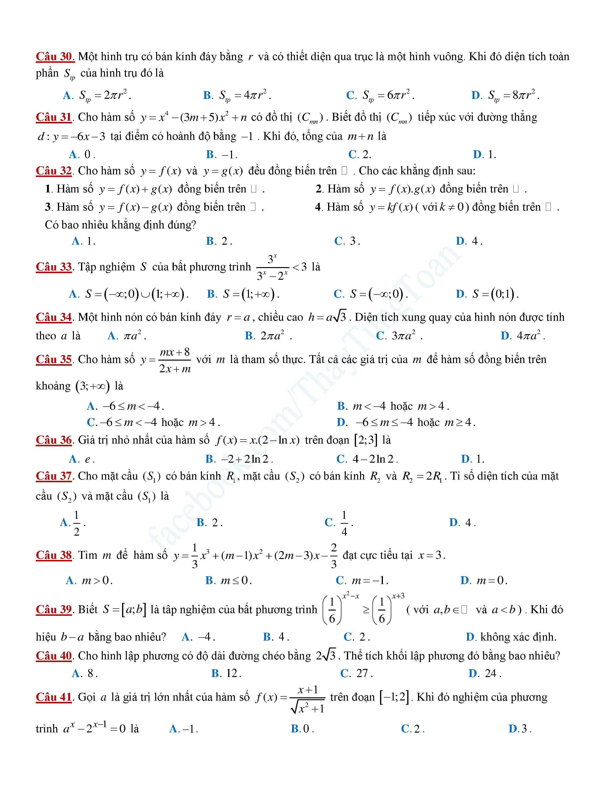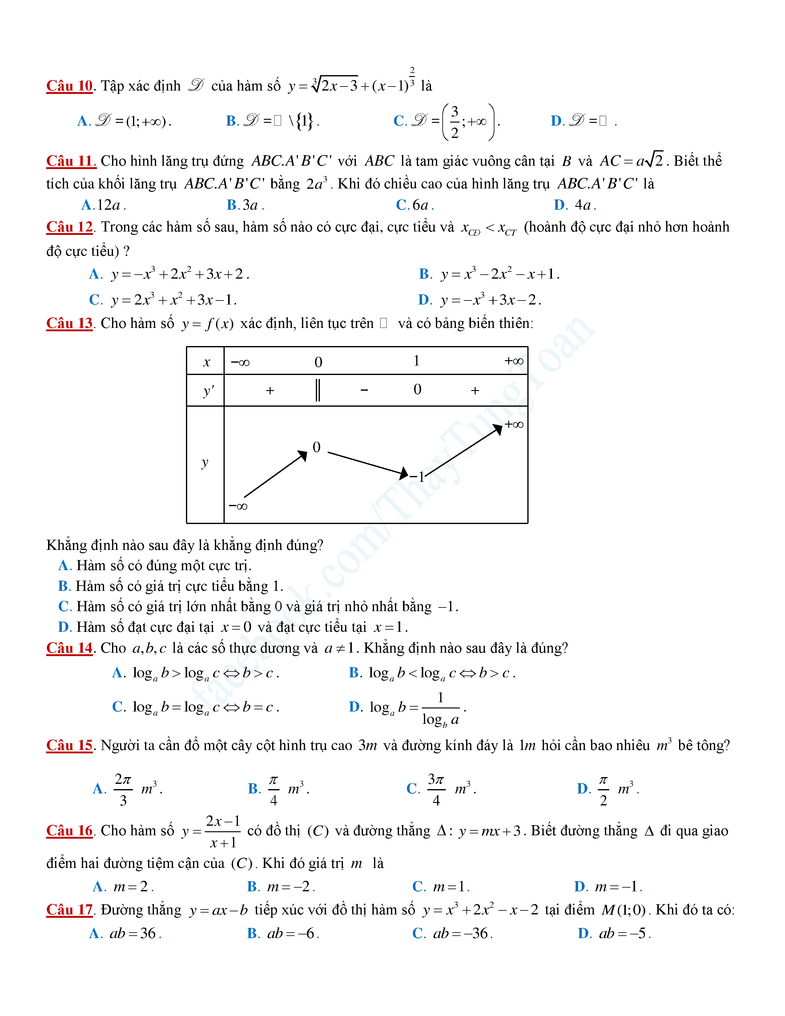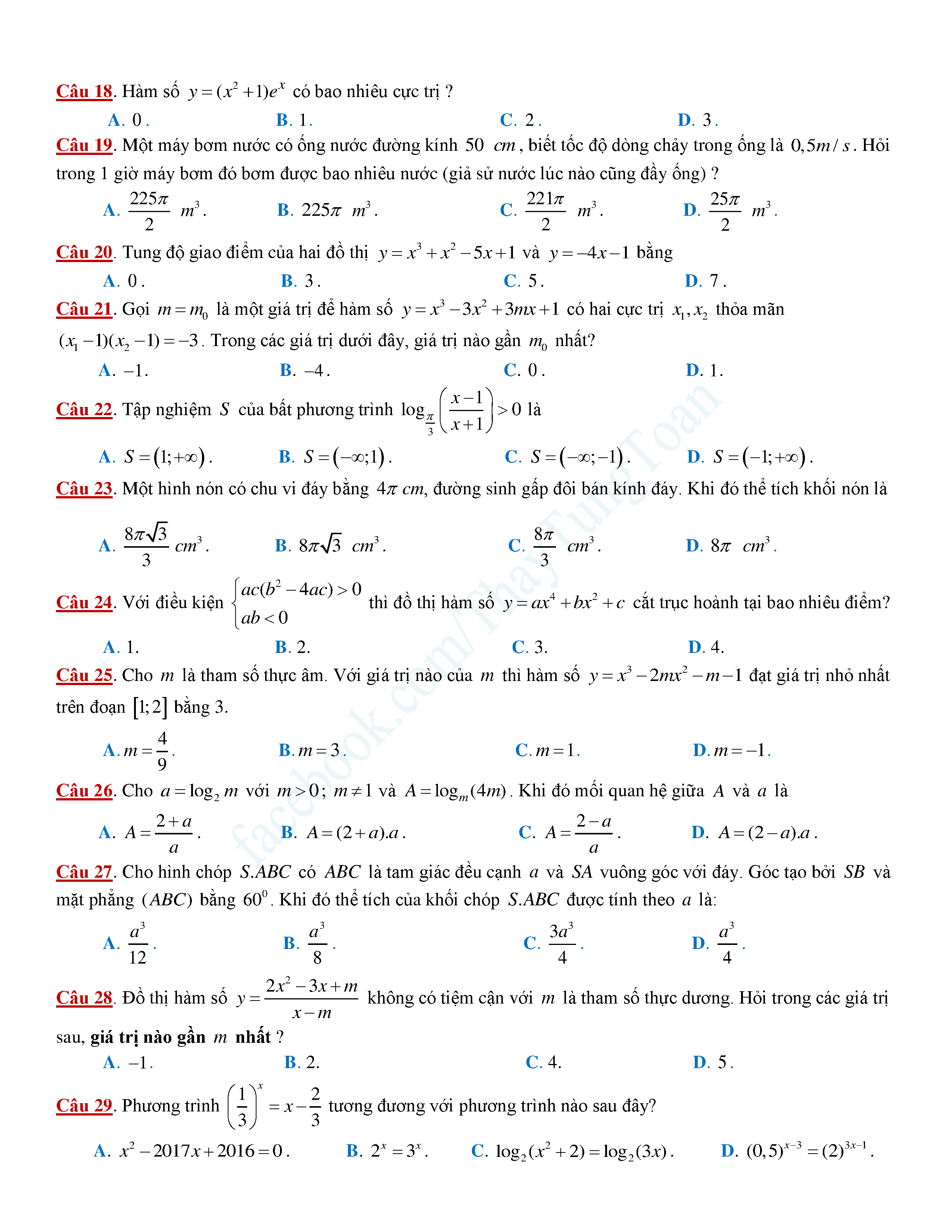 ĐỀ THI THỬ HỌC KỲ I MÔN TOÁN LỚP 12 - THẦY NGUYỄN THANH TÙNG