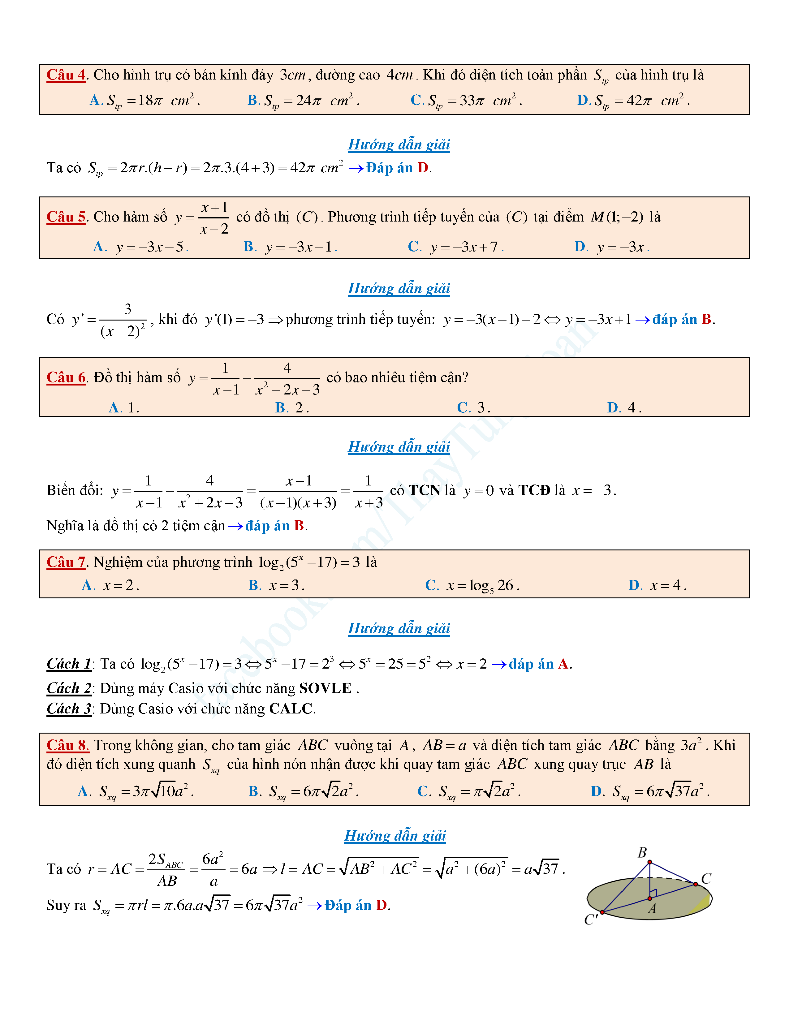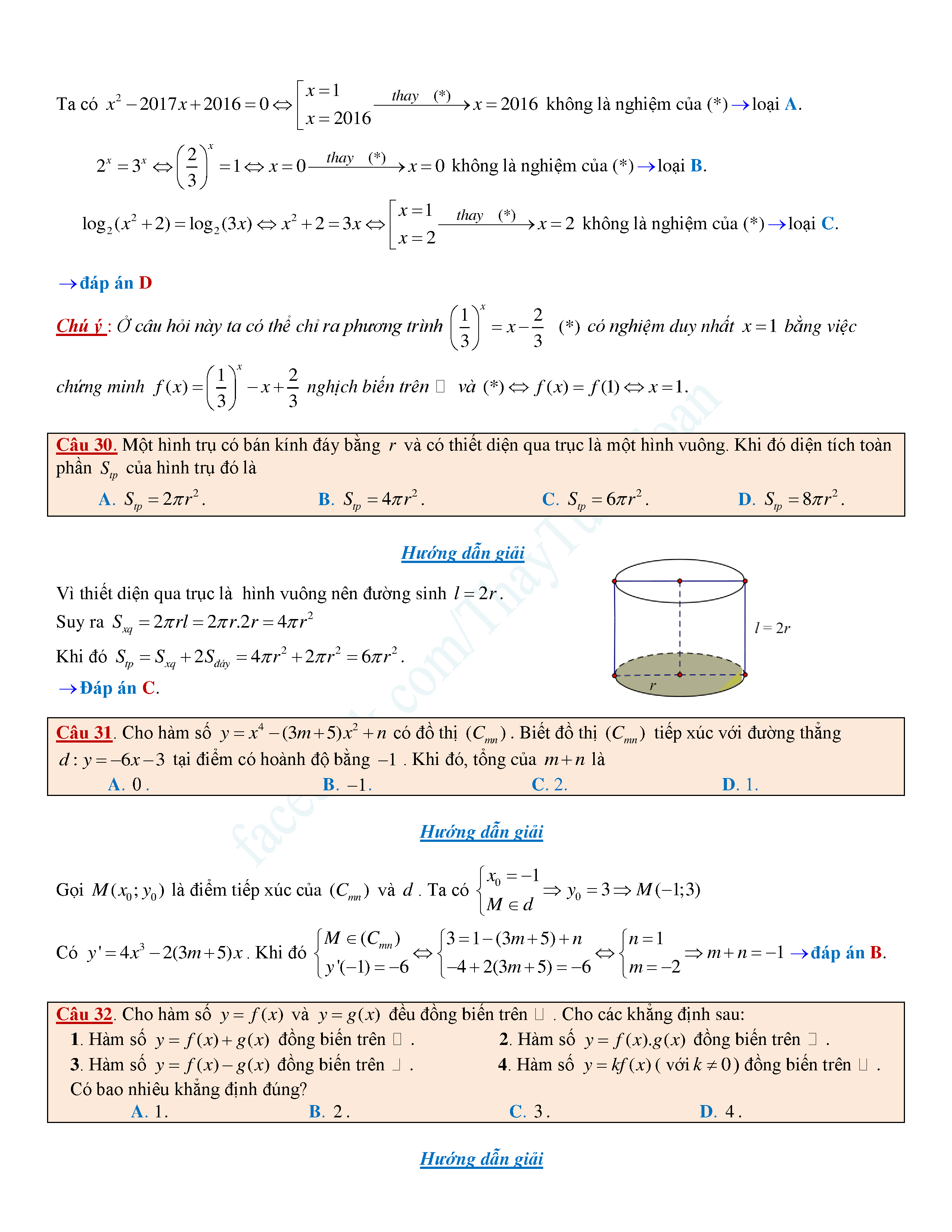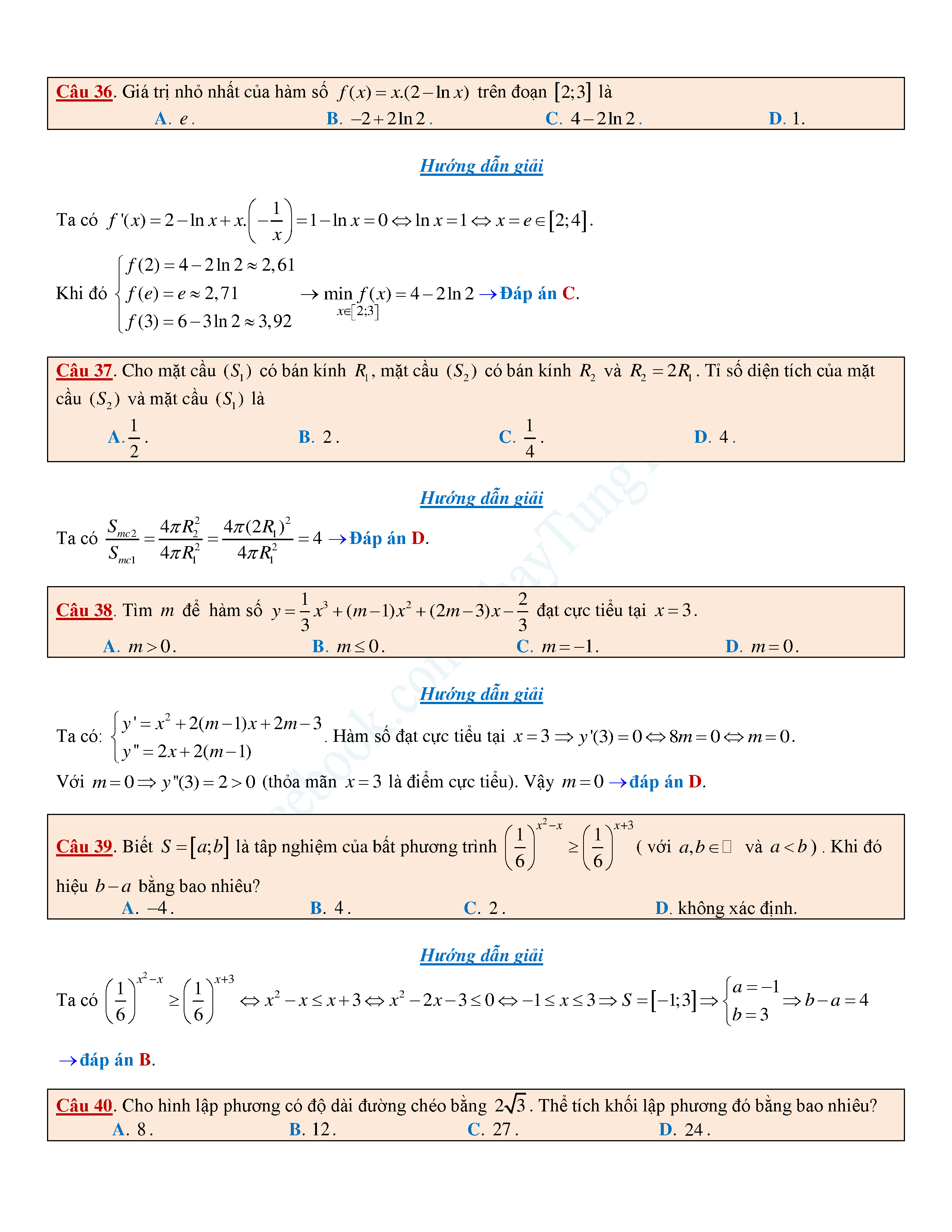 ĐỀ THI THỬ HỌC KỲ I MÔN TOÁN LỚP 12 - THẦY NGUYỄN THANH TÙNG