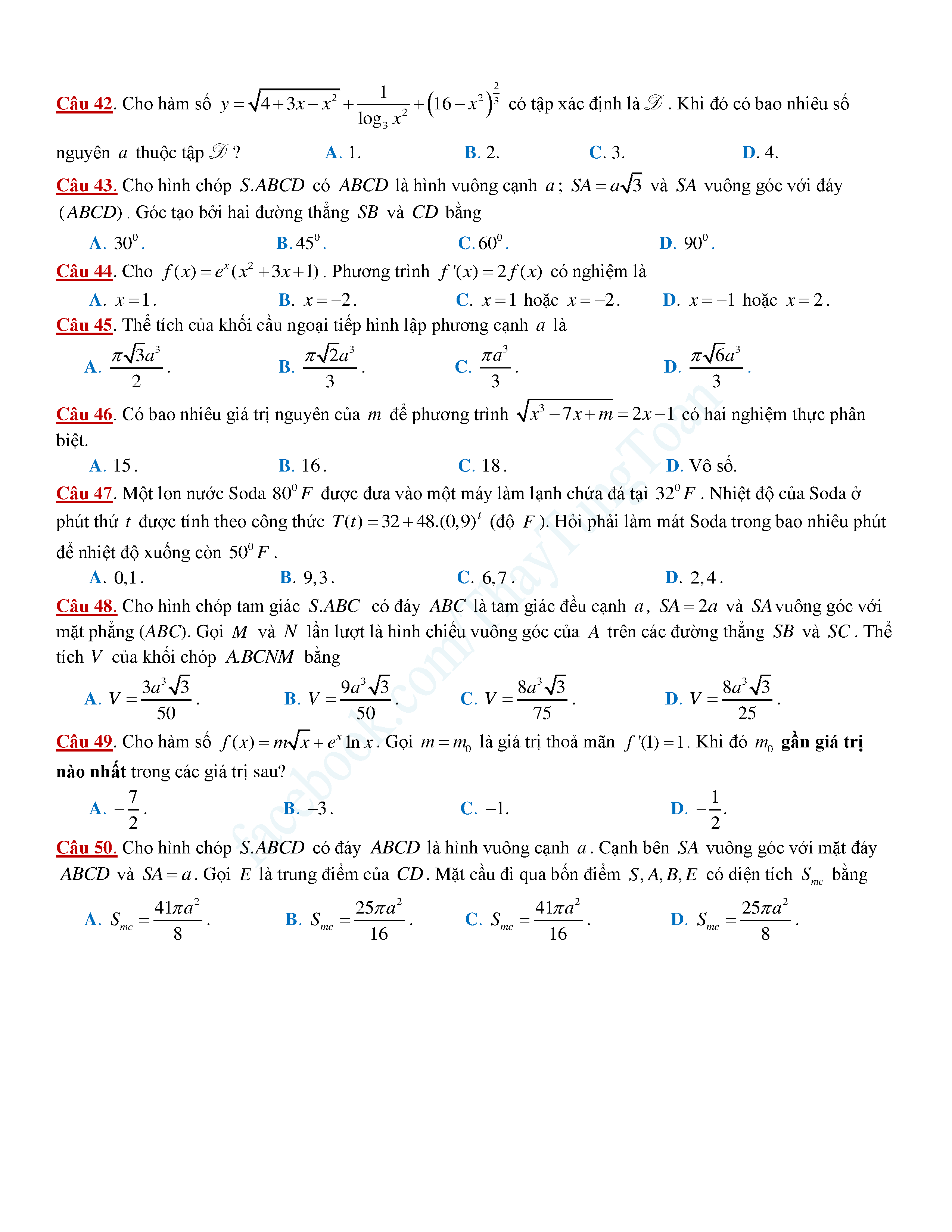 Đề thi thử học kỳ I môn Toán lớp 12 - thầy Nguyễn Thanh Tùng