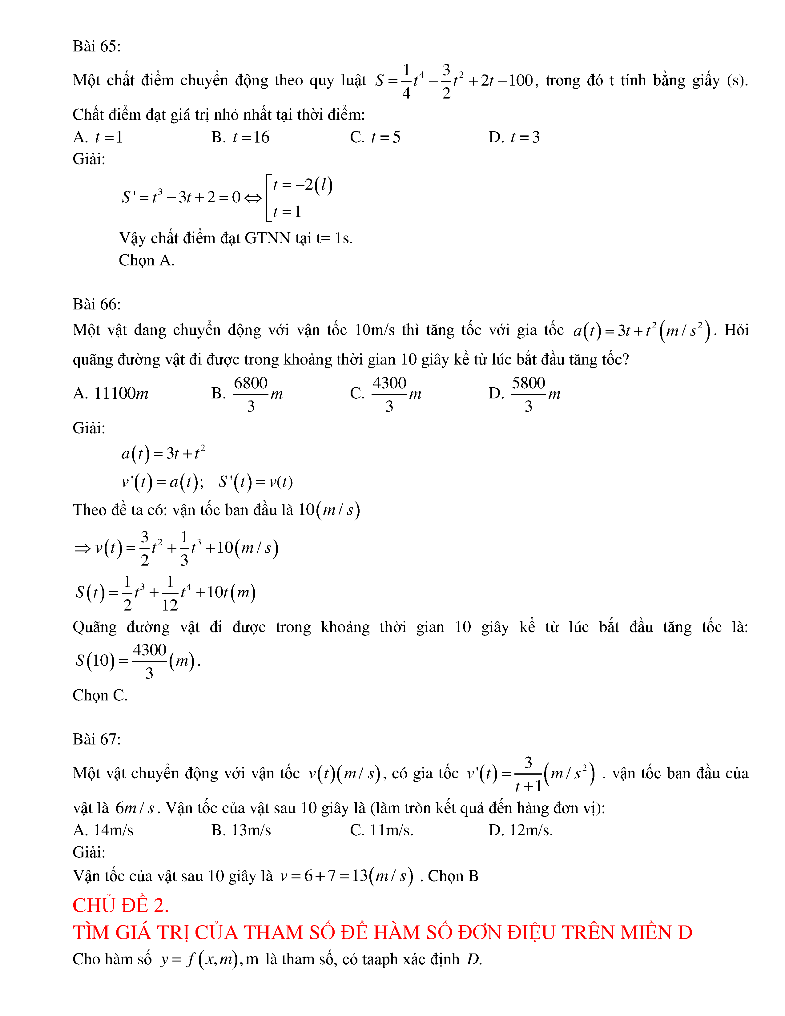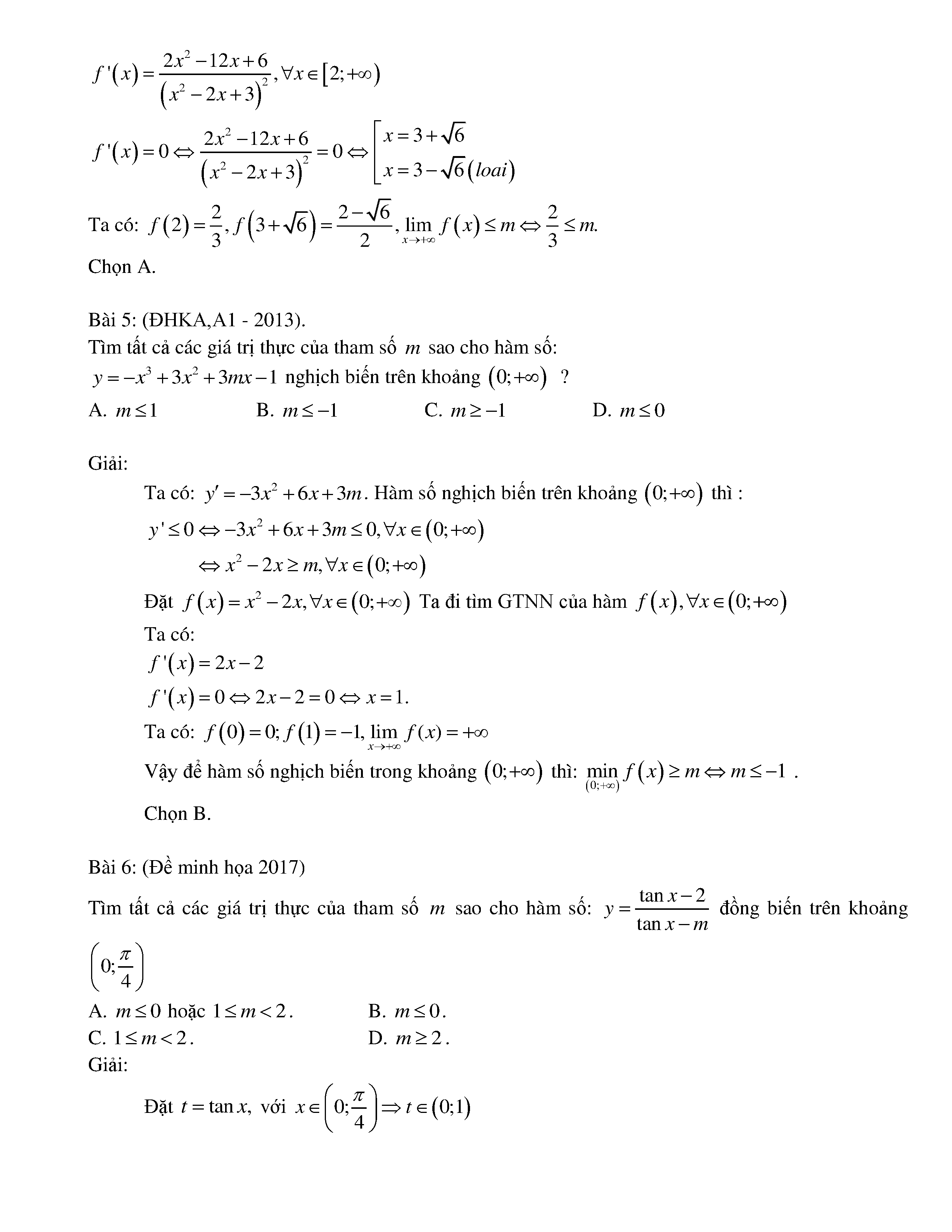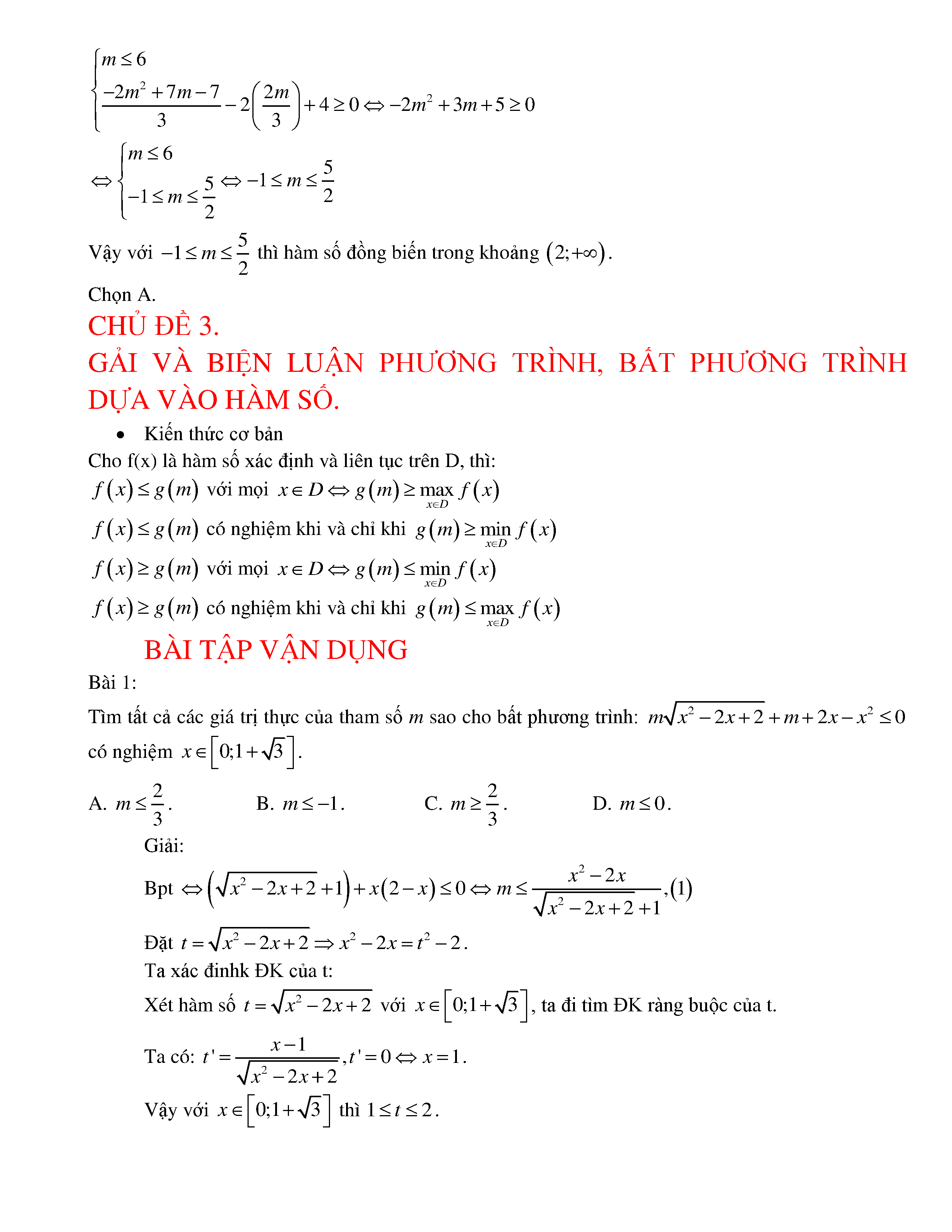Bài toán vận dụng cao chuyên đề ứng dụng đạo hàm (tiếp theo)