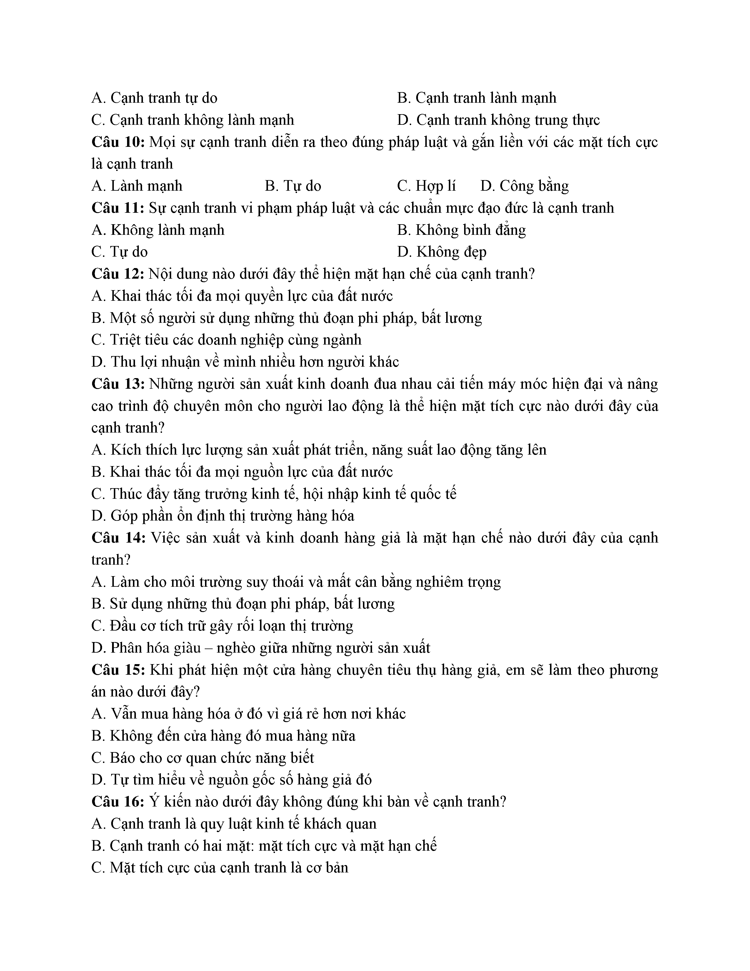 CẠNH TRANH TRONG SẢN XUẤT VÀ LƯU THÔNG HÀNG HÓA-GDCD-LỚP11