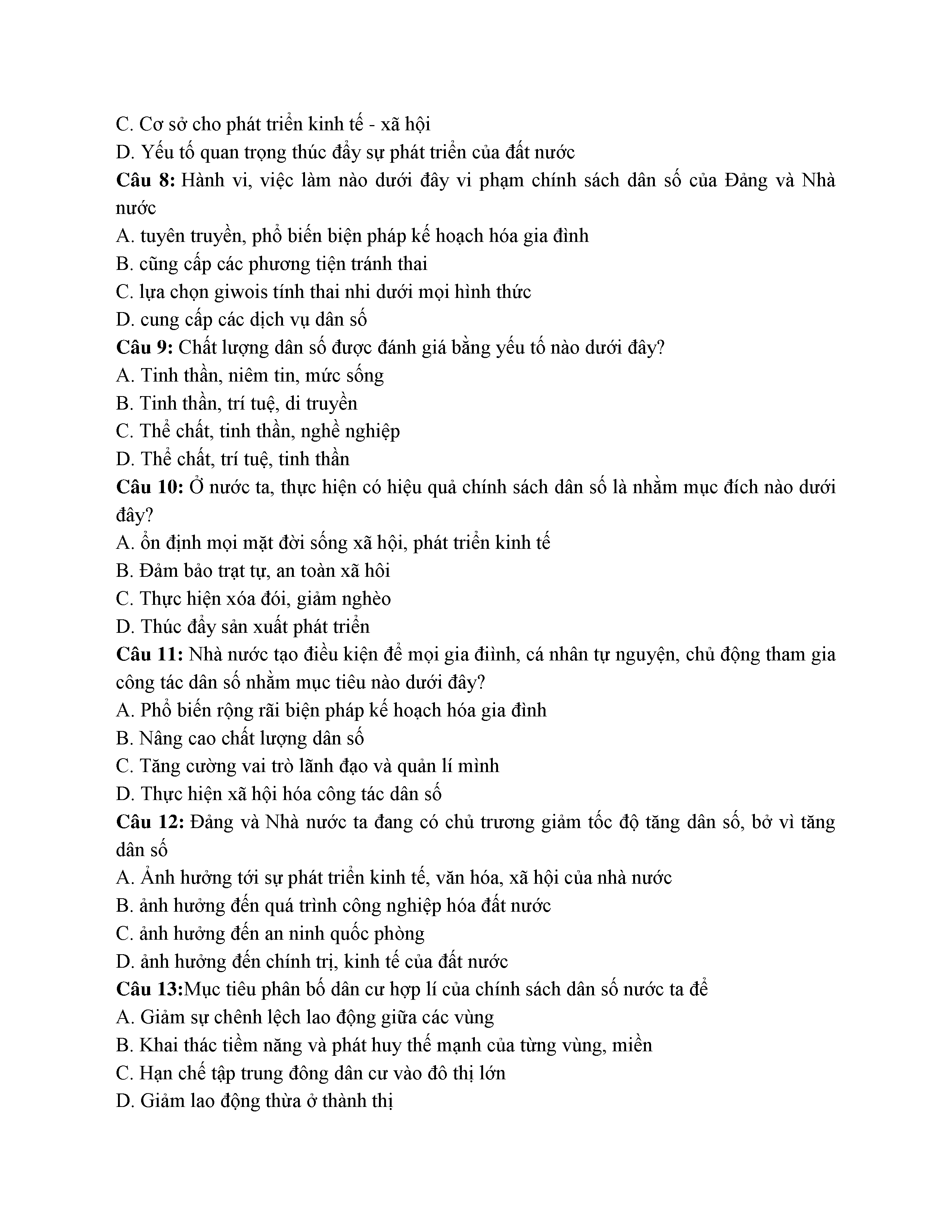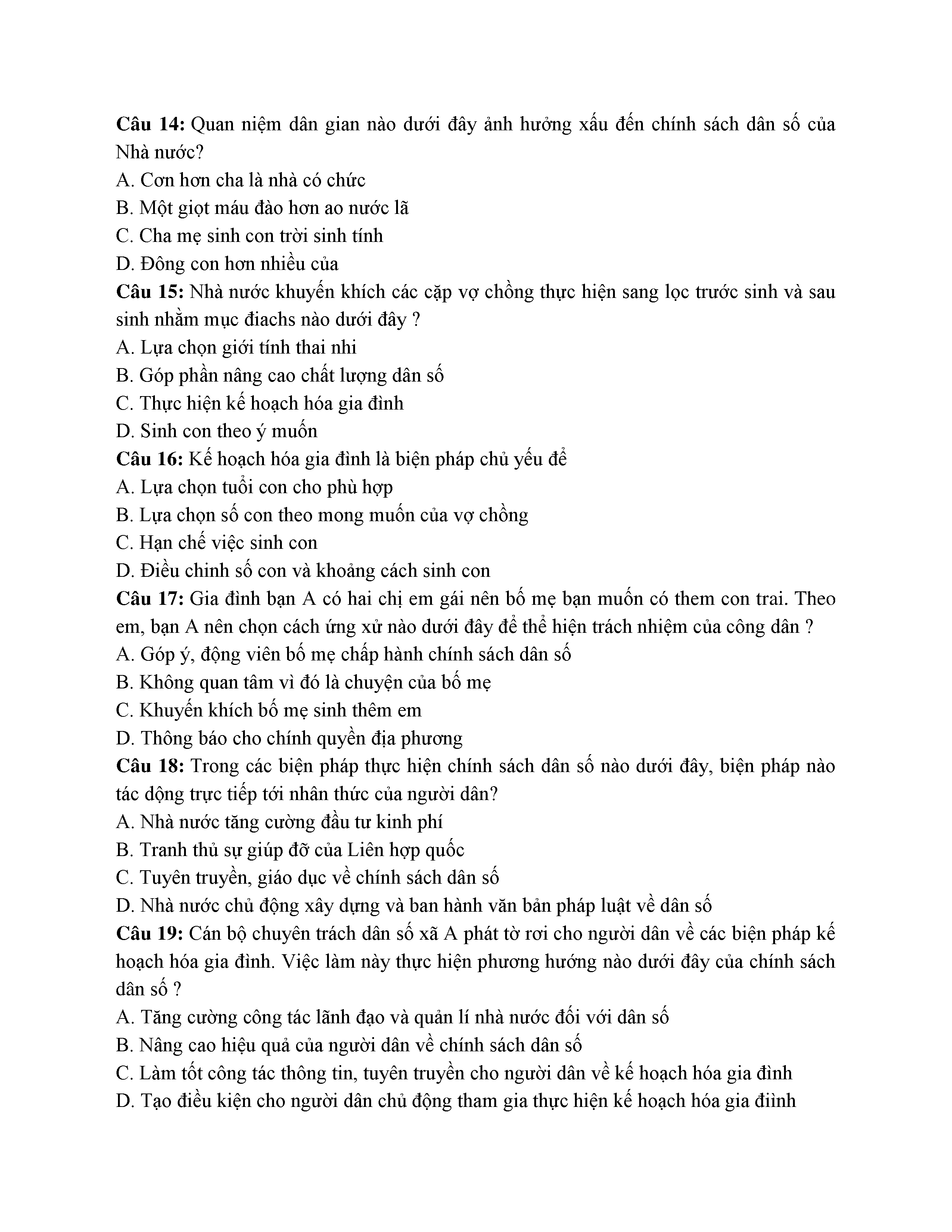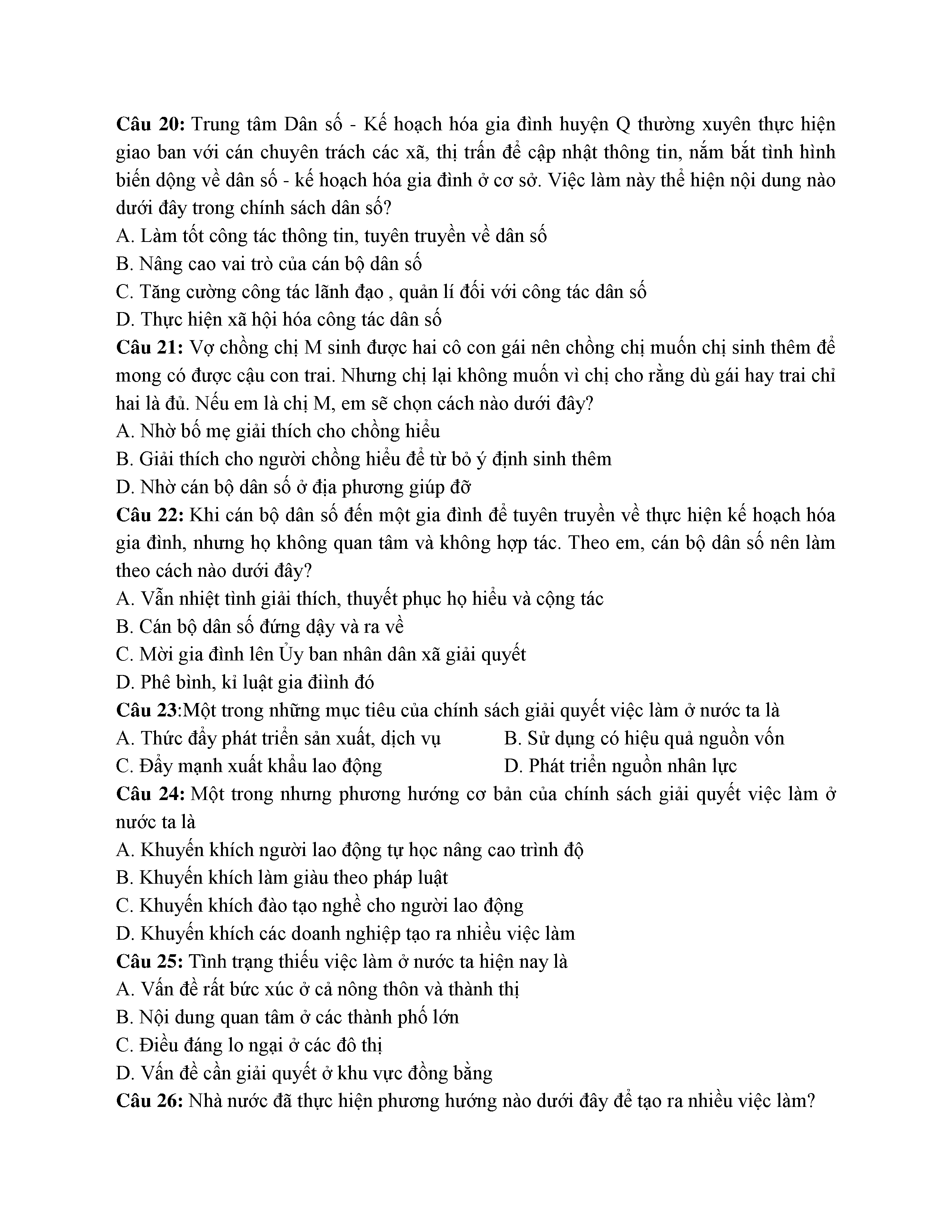 CHÍNH SÁCH DÂN SỐ VÀ GIẢI QUYẾT VIỆC LÀM-GDCD-LỚP 11