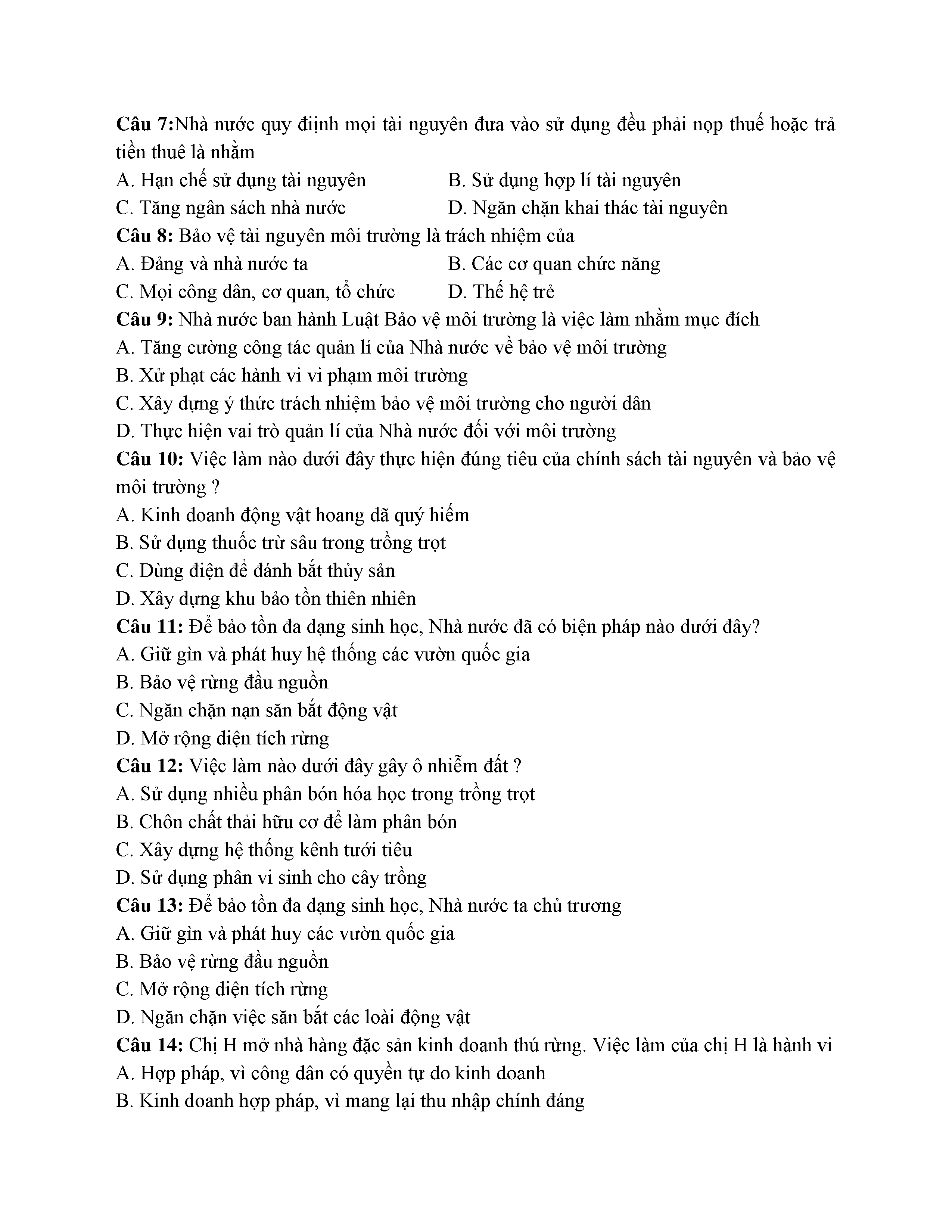 CHÍNH SÁCH TÀI NGUYÊN VÀ BẢO VỆ MÔI TRƯỜNG-PHẦN 1-GDCD-LỚP 11