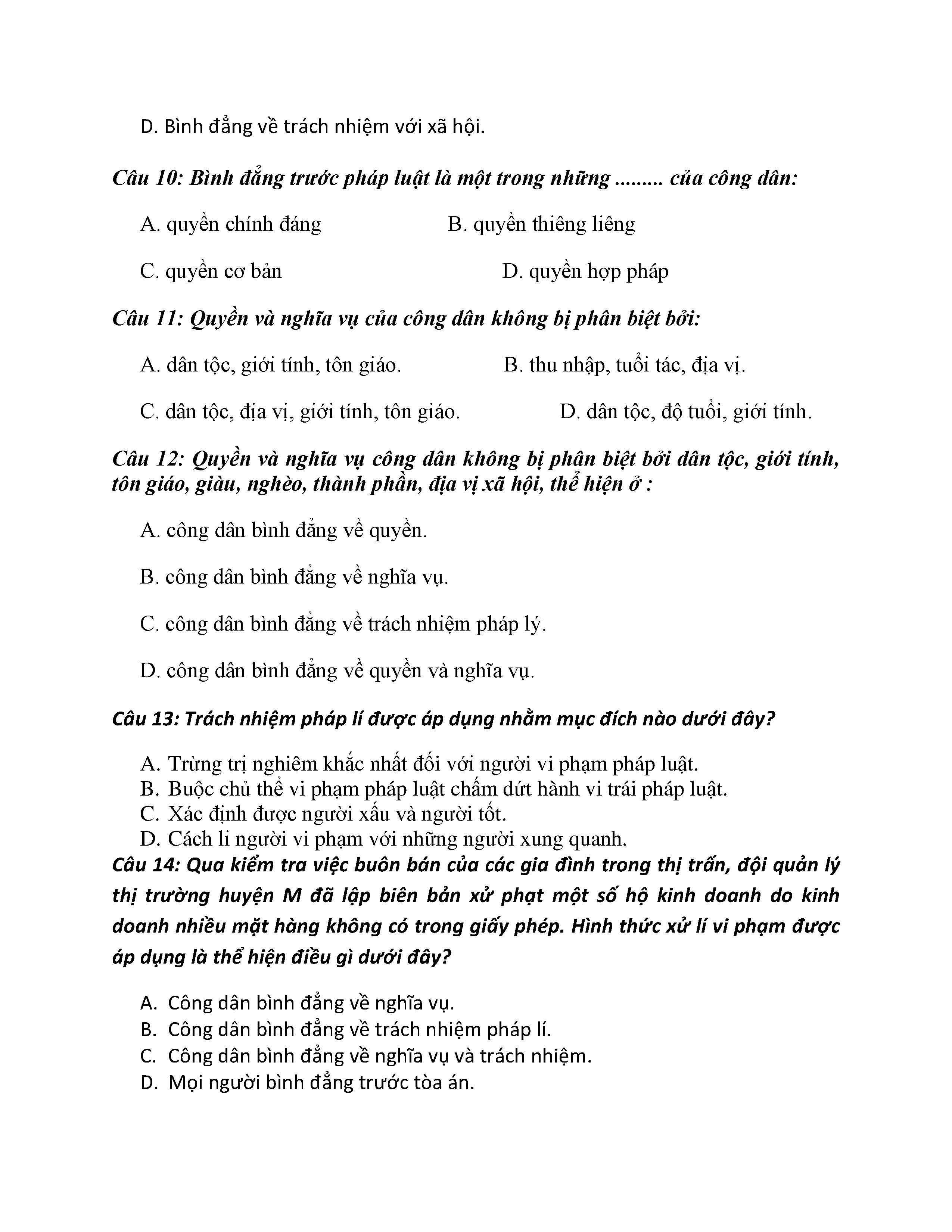 CÔNG DÂN BÌNH ĐẲNG TRƯỚC PHÁP LUẬT-GDCD-LỚP 12