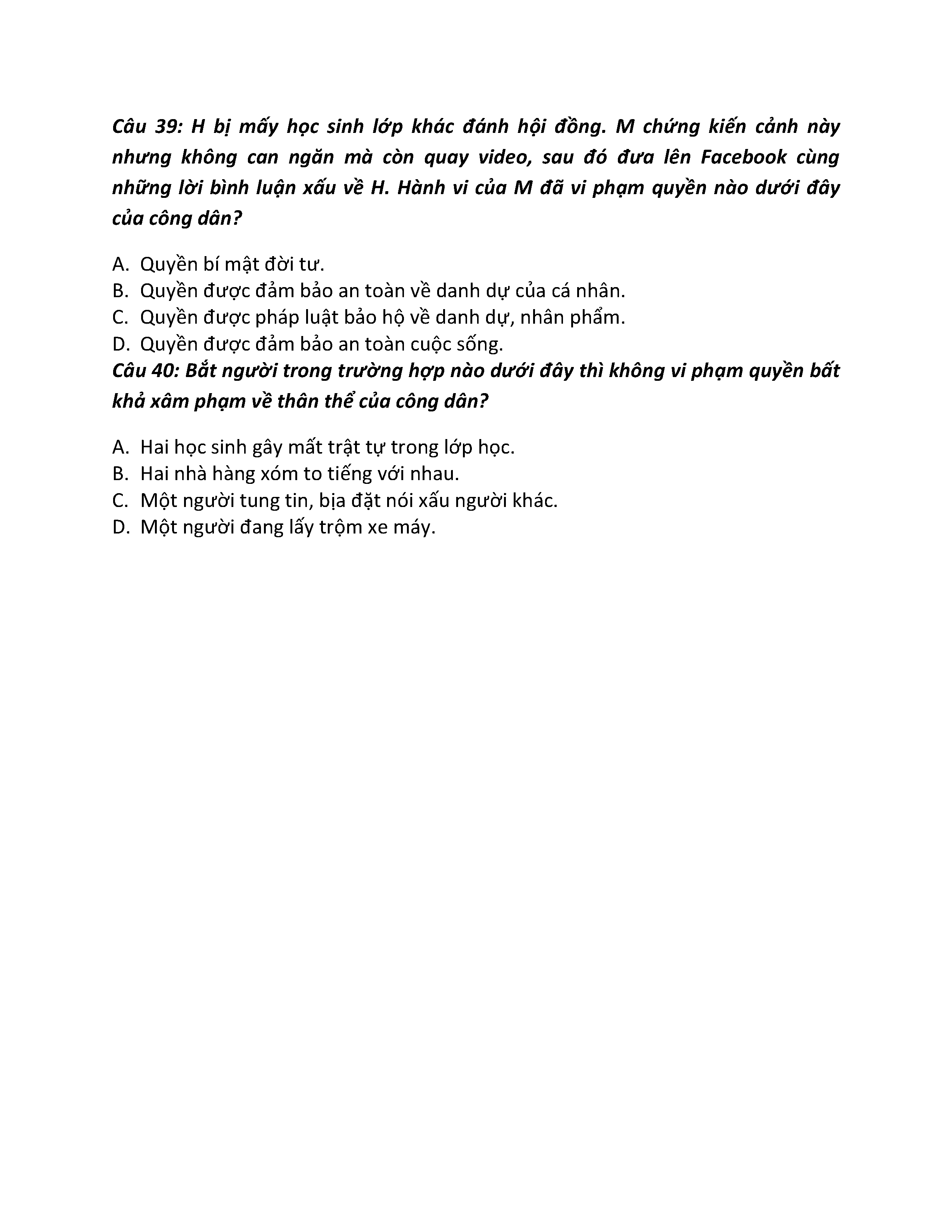 CÔNG DÂN VỚI CÁC QUYỀN TỰ DO CƠ BẢN - PHẦN 2 - GDCD- LỚP 12