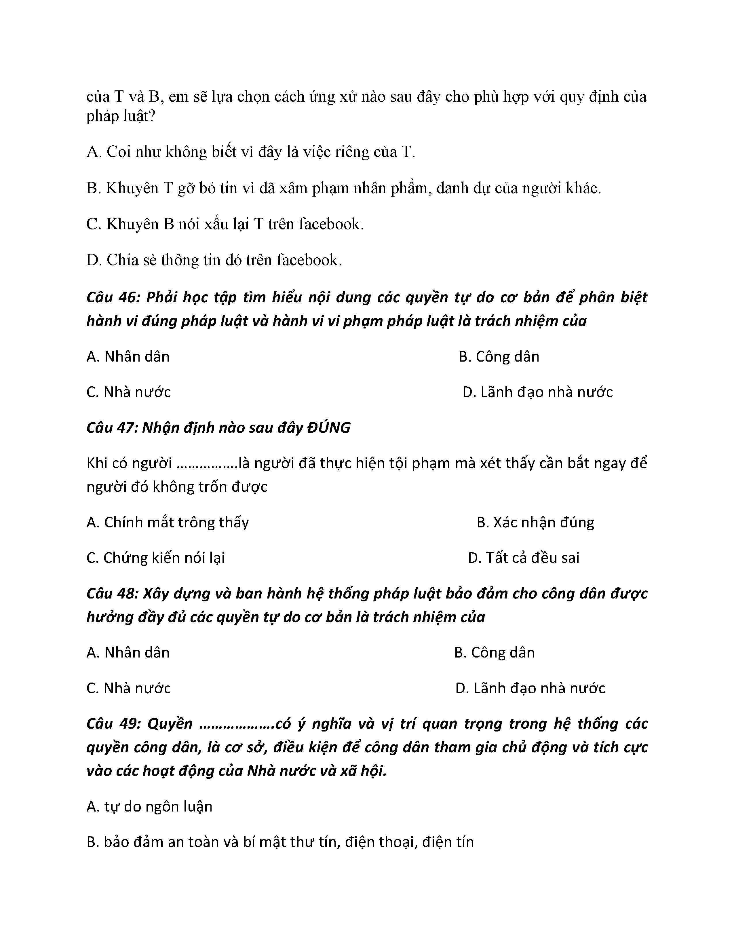 CÔNG DÂN VỚI CÁC QUYỀN TỰ DO CƠ BẢN - PHẦN 3 - GDCD- LỚP 12
