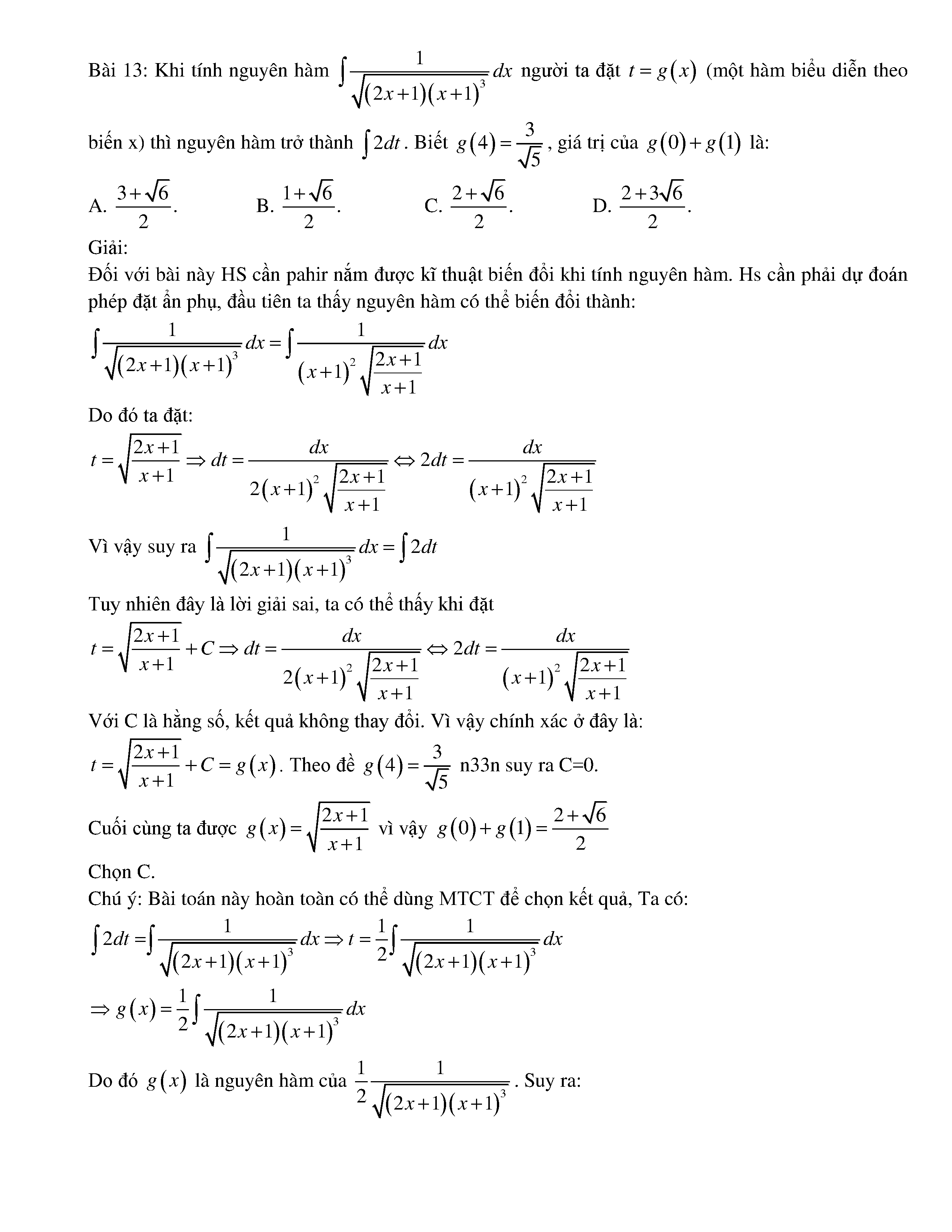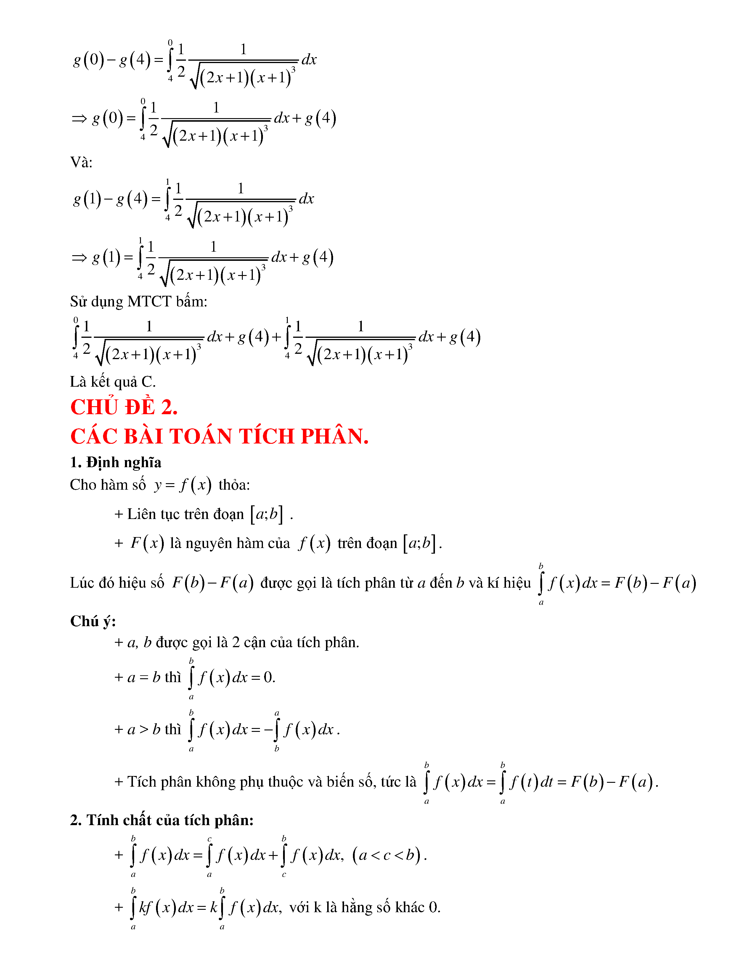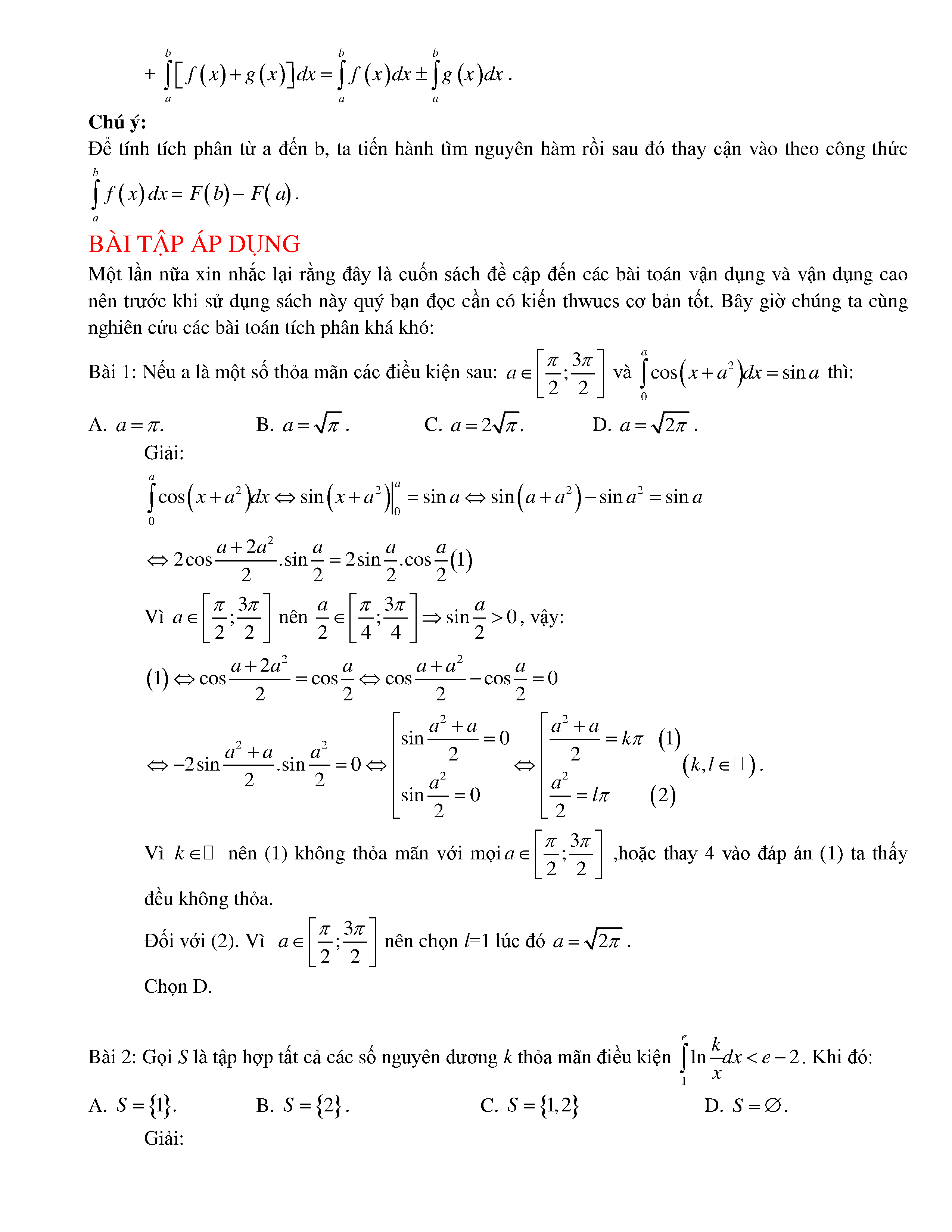 Bài Toán vận dụng cao về Nguyên hàm - Tích phân