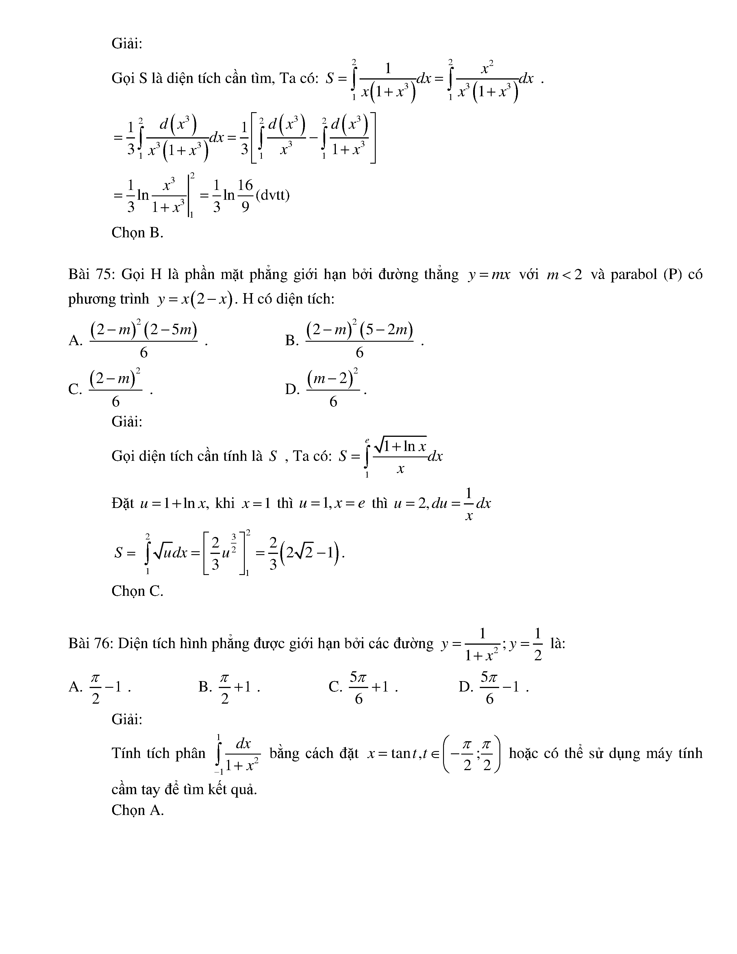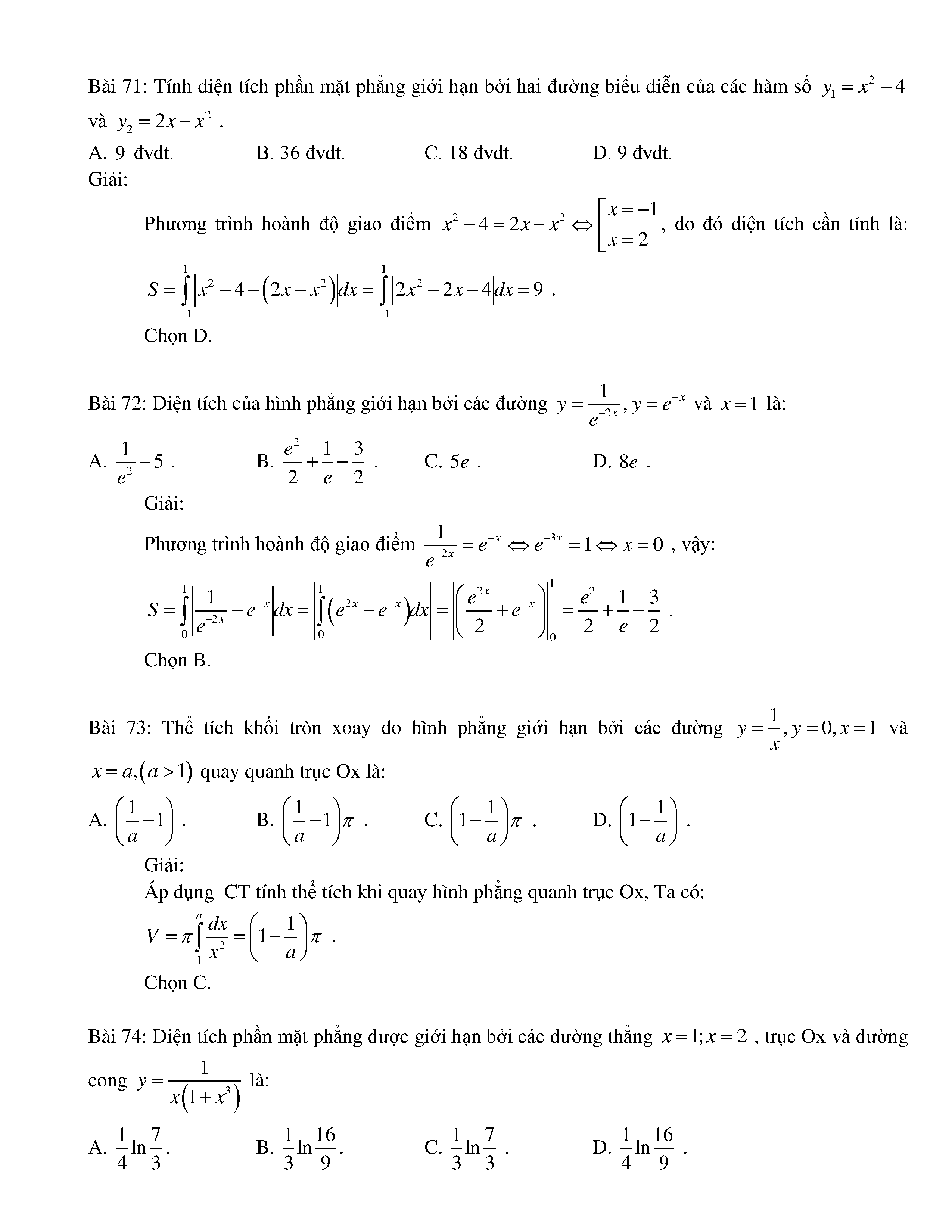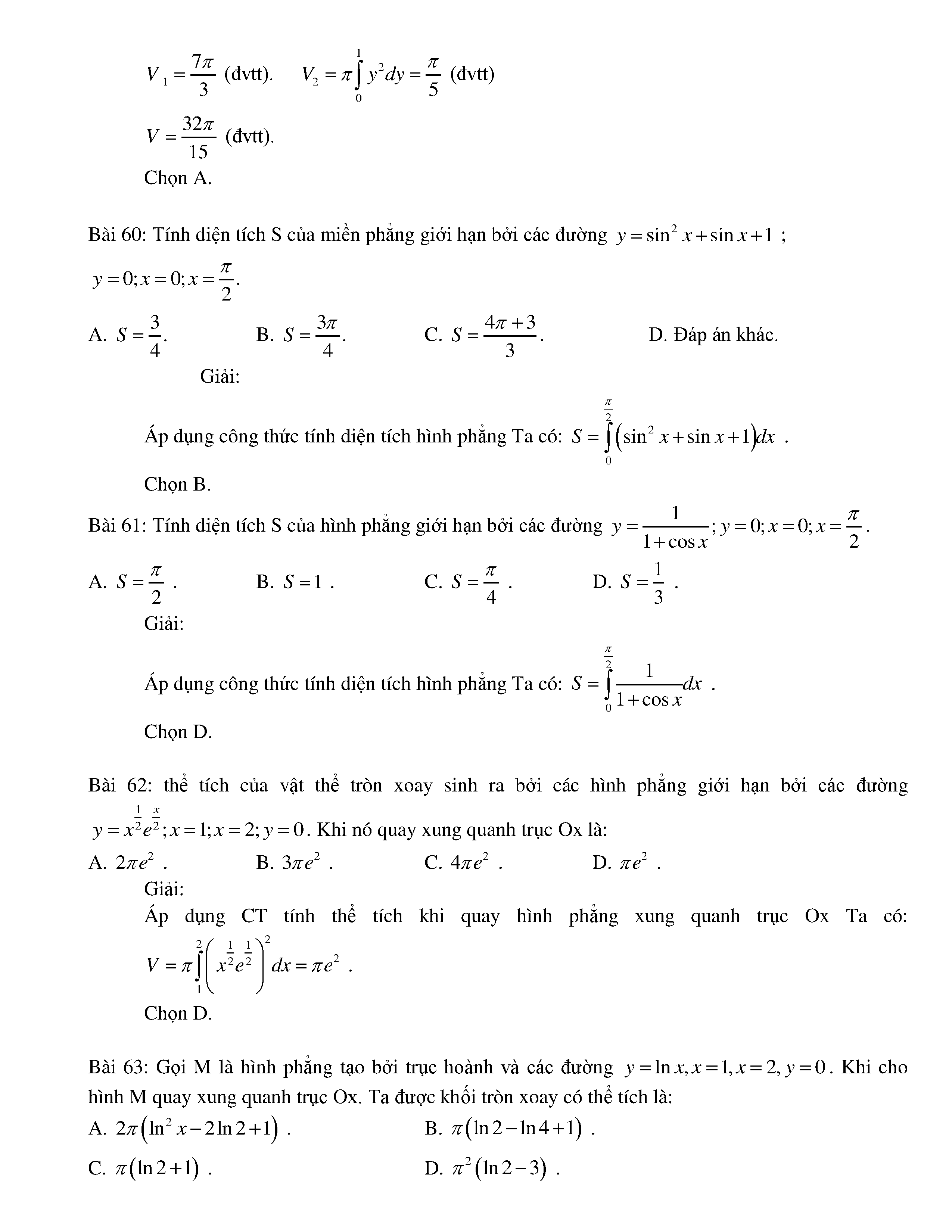 Bài tập chương III: ỨNG DỤNG NGUYÊN HÀM - TÍCH PHÂN