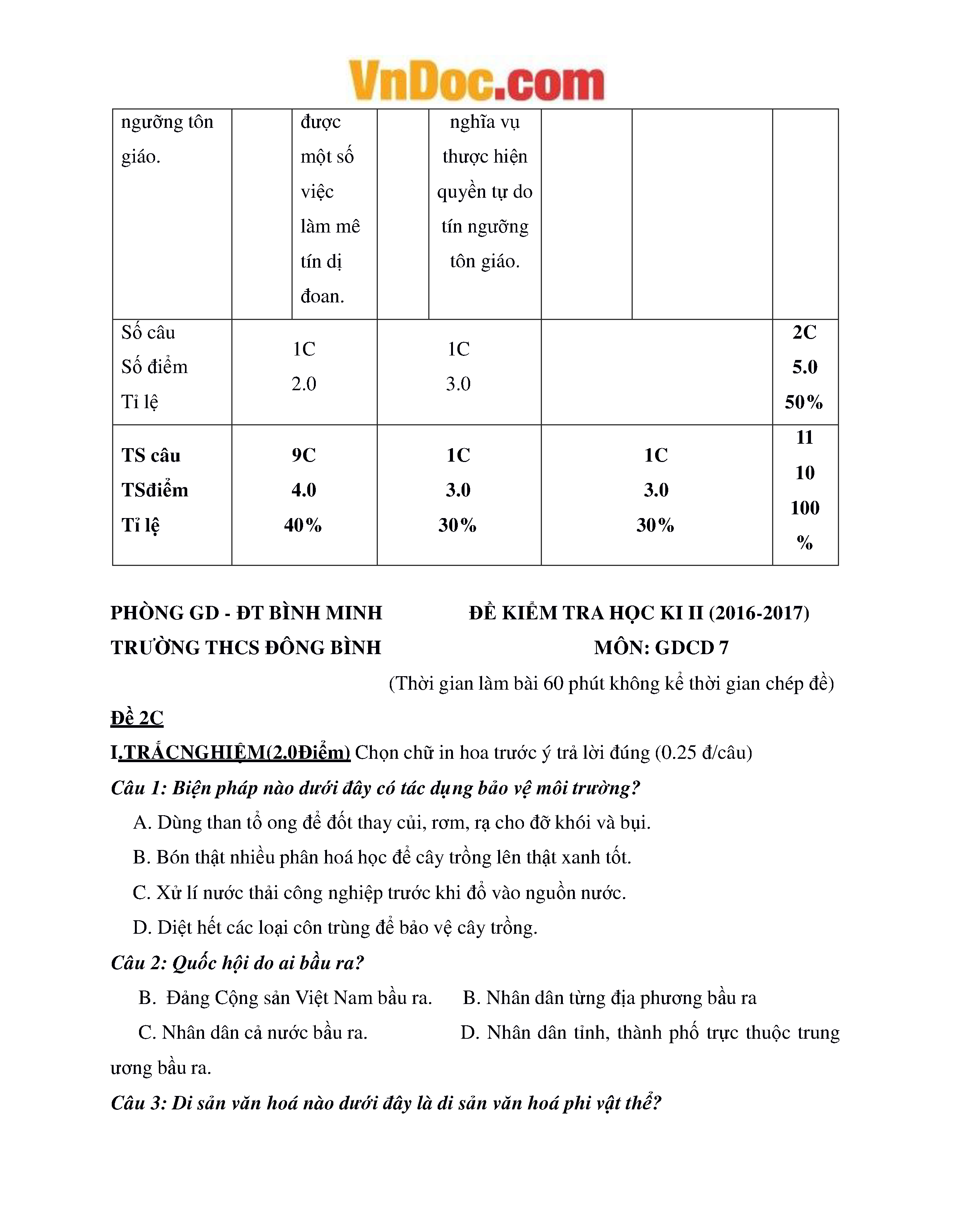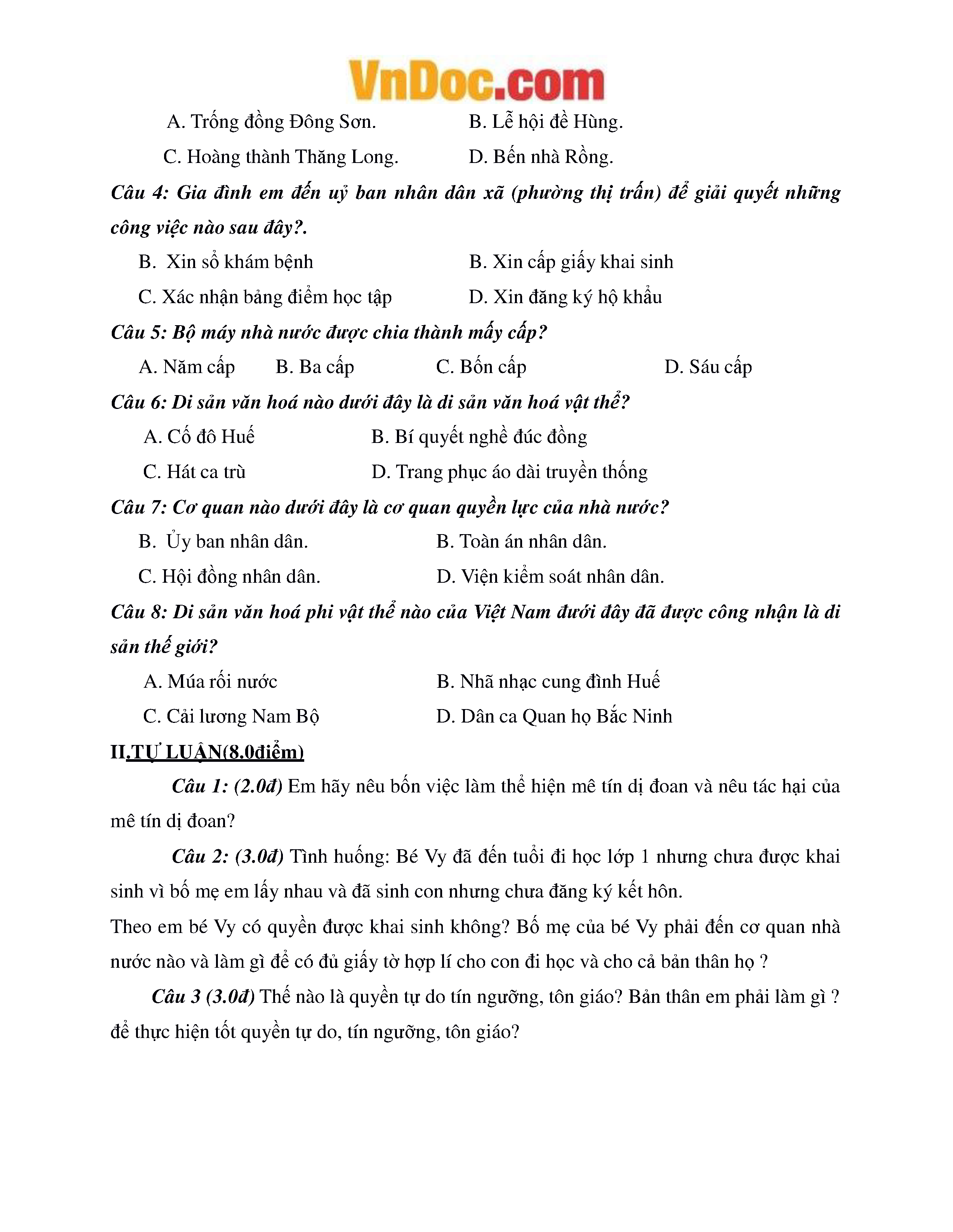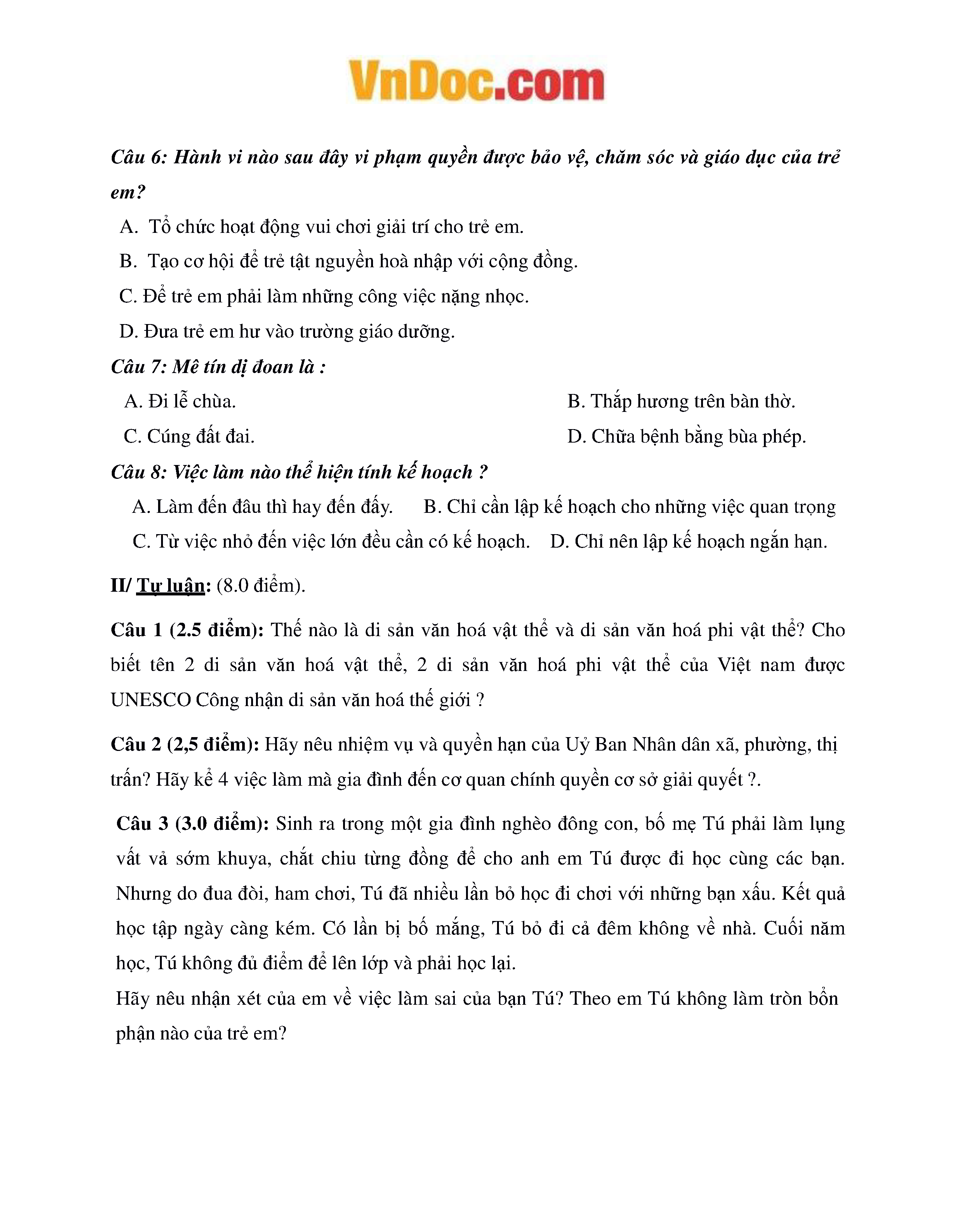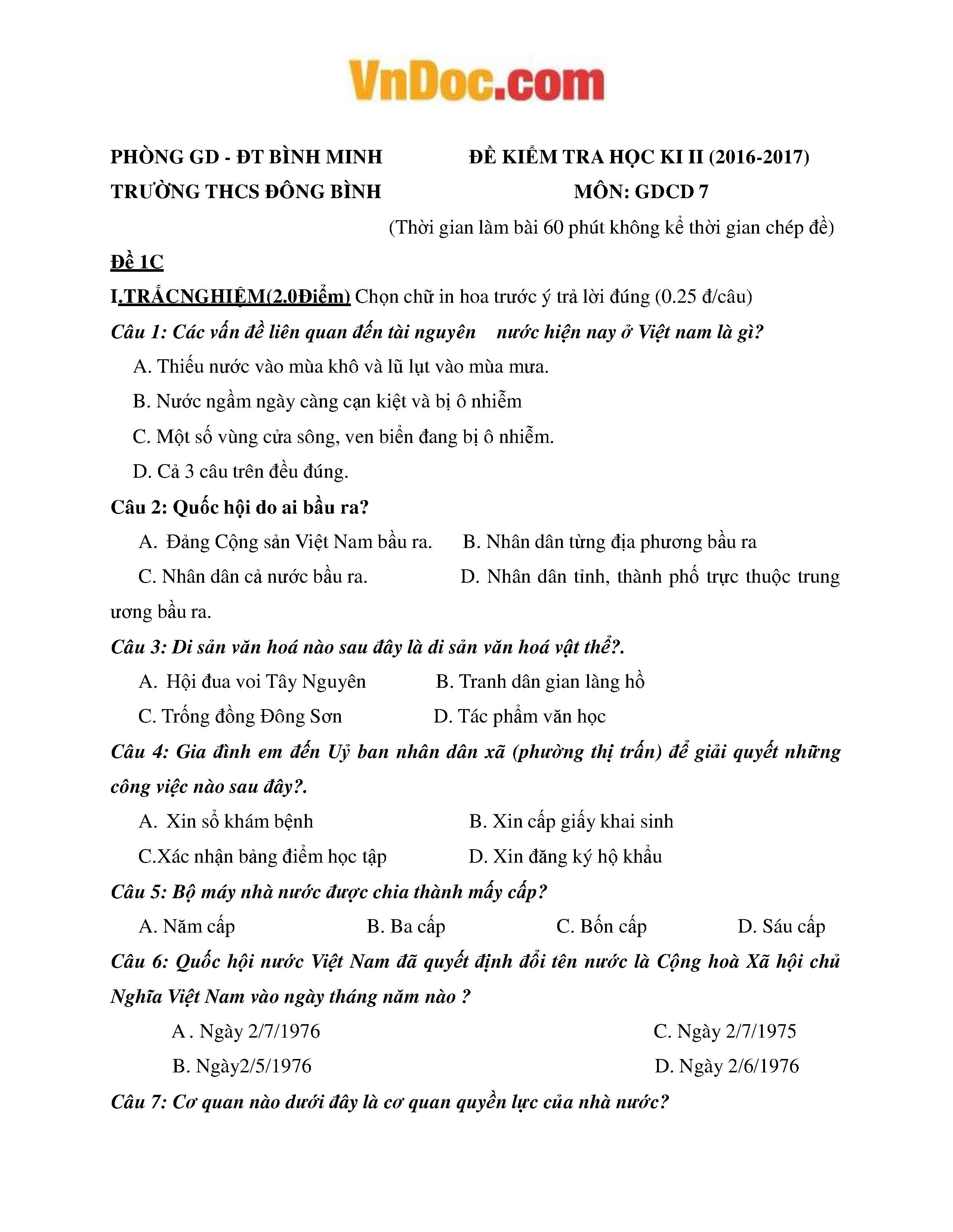 BỘ ĐỀ KIỂM TRA HK II - GDCD - LỚP 7