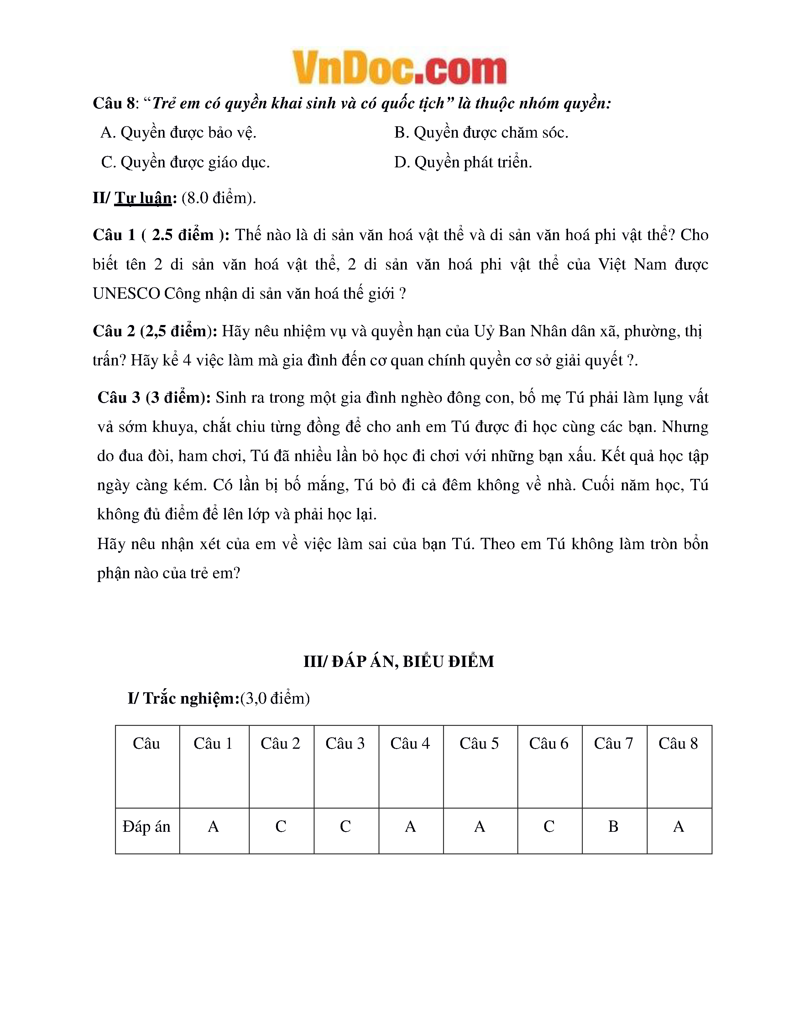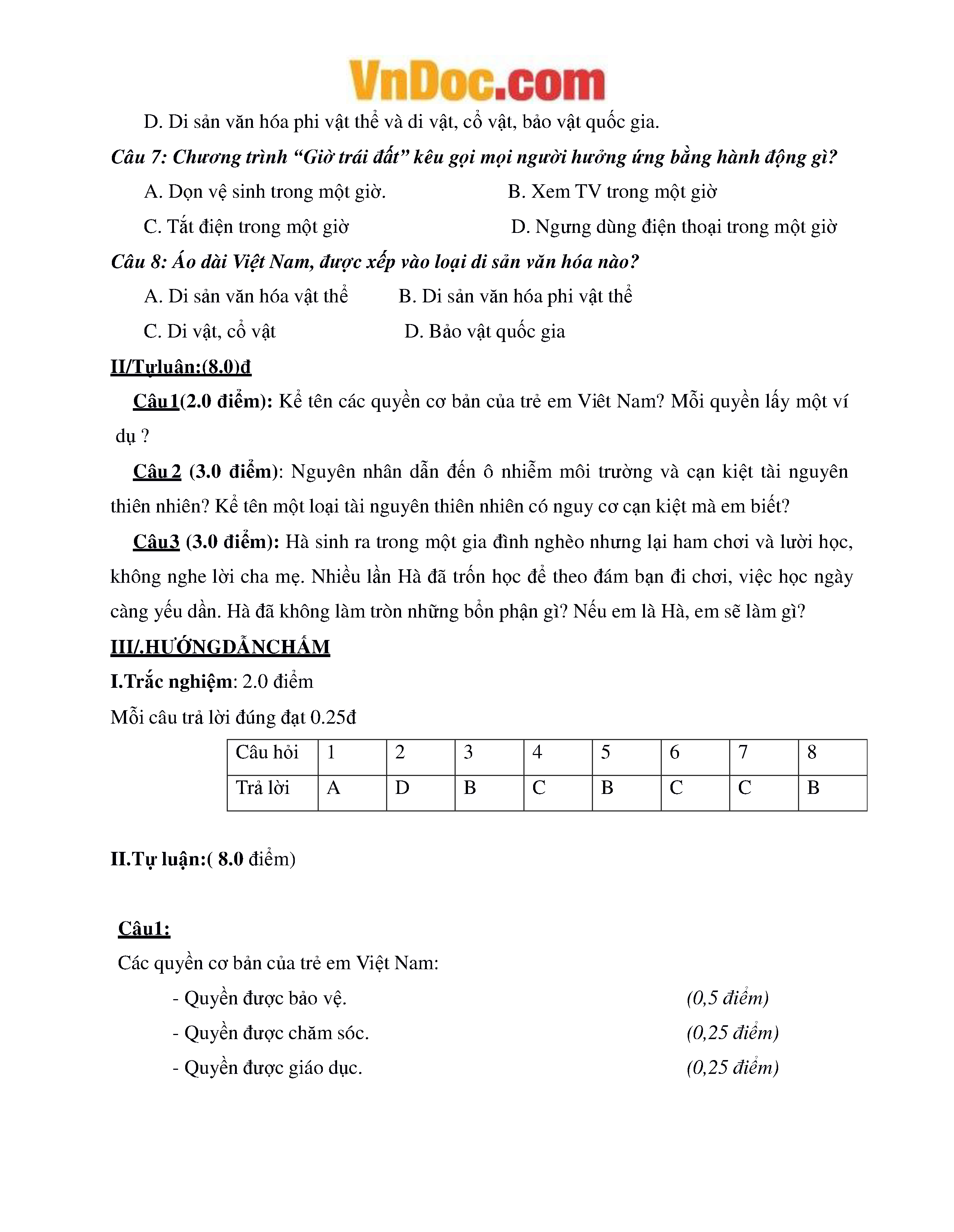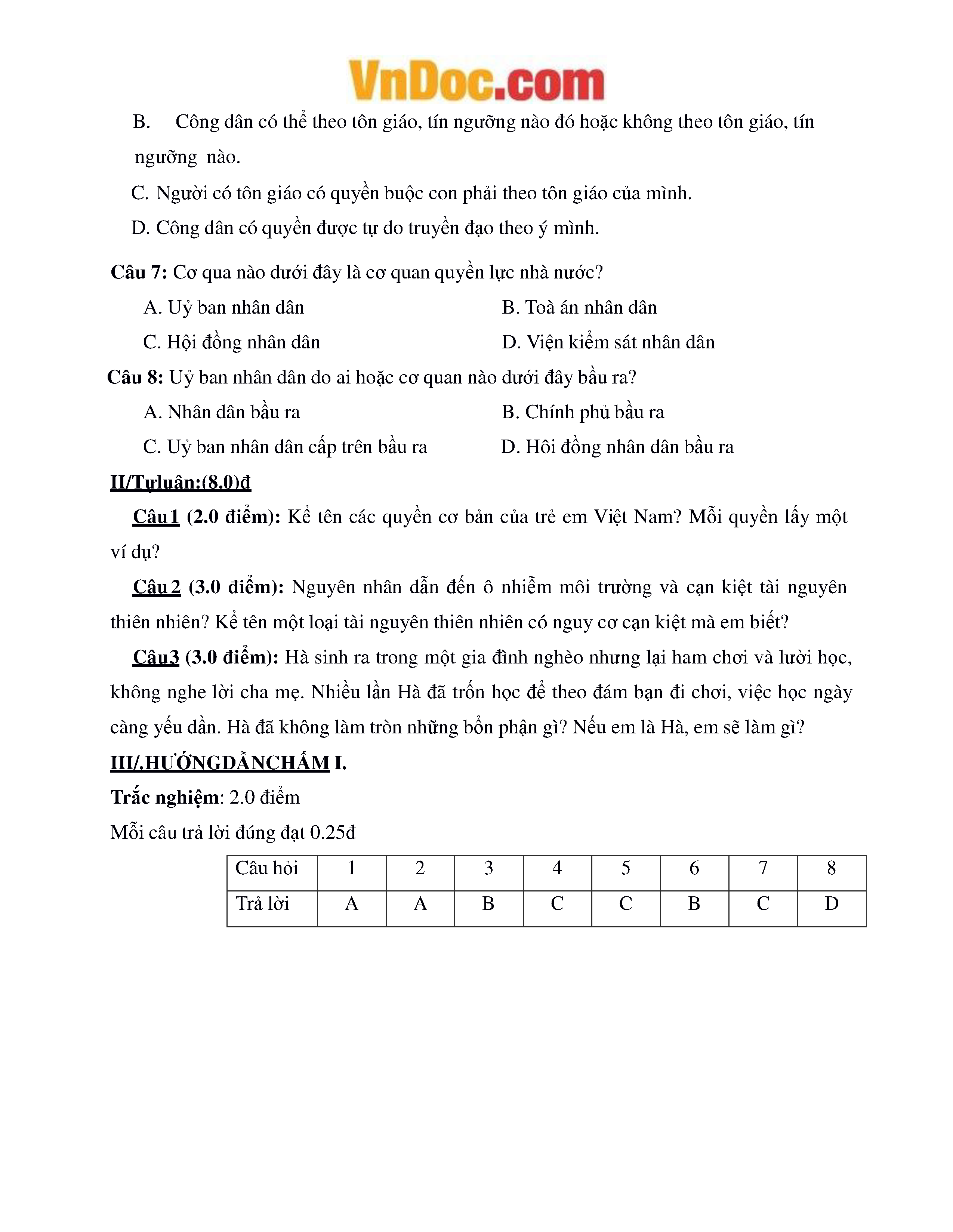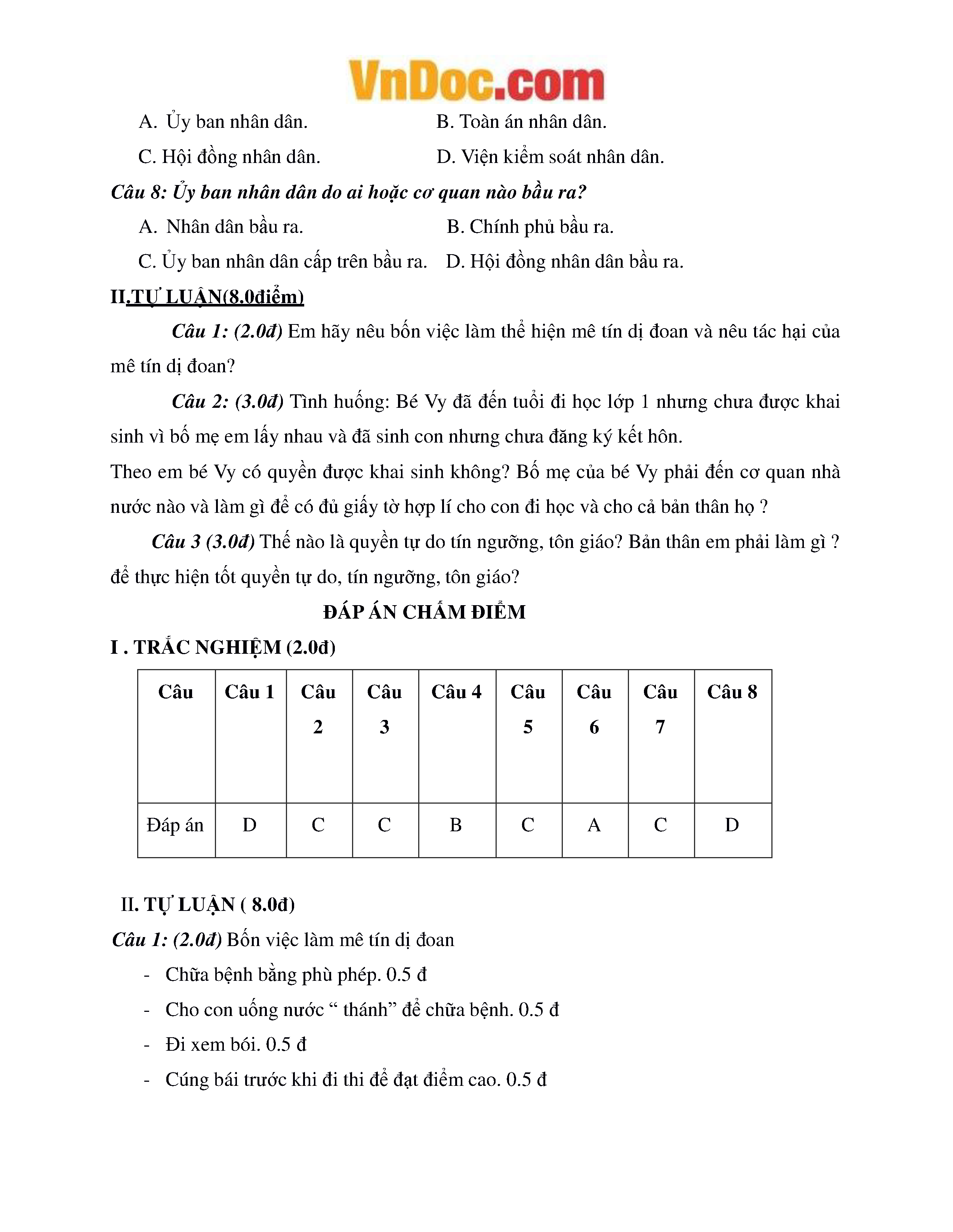 BỘ ĐỀ KIỂM TRA HK II - GDCD - LỚP 7