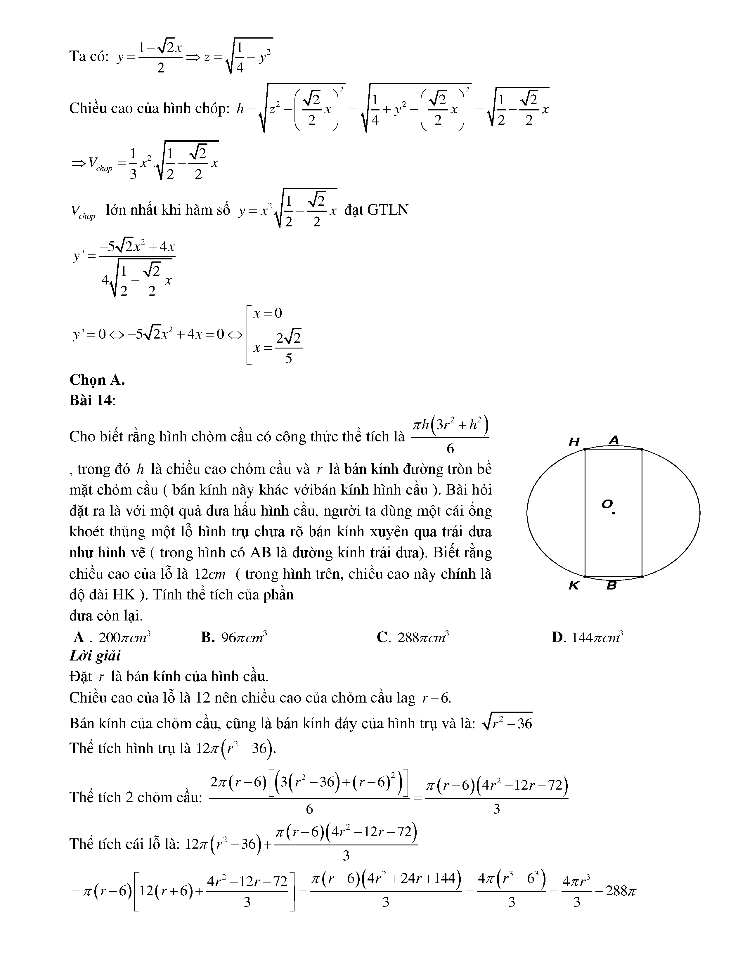 BÀI TOÁN VẬN DỤNG CAO HÌNH HỌC KHÔNG GIAN CHỦ ĐỀ MẶT NÓN - KHỐI TRÒN