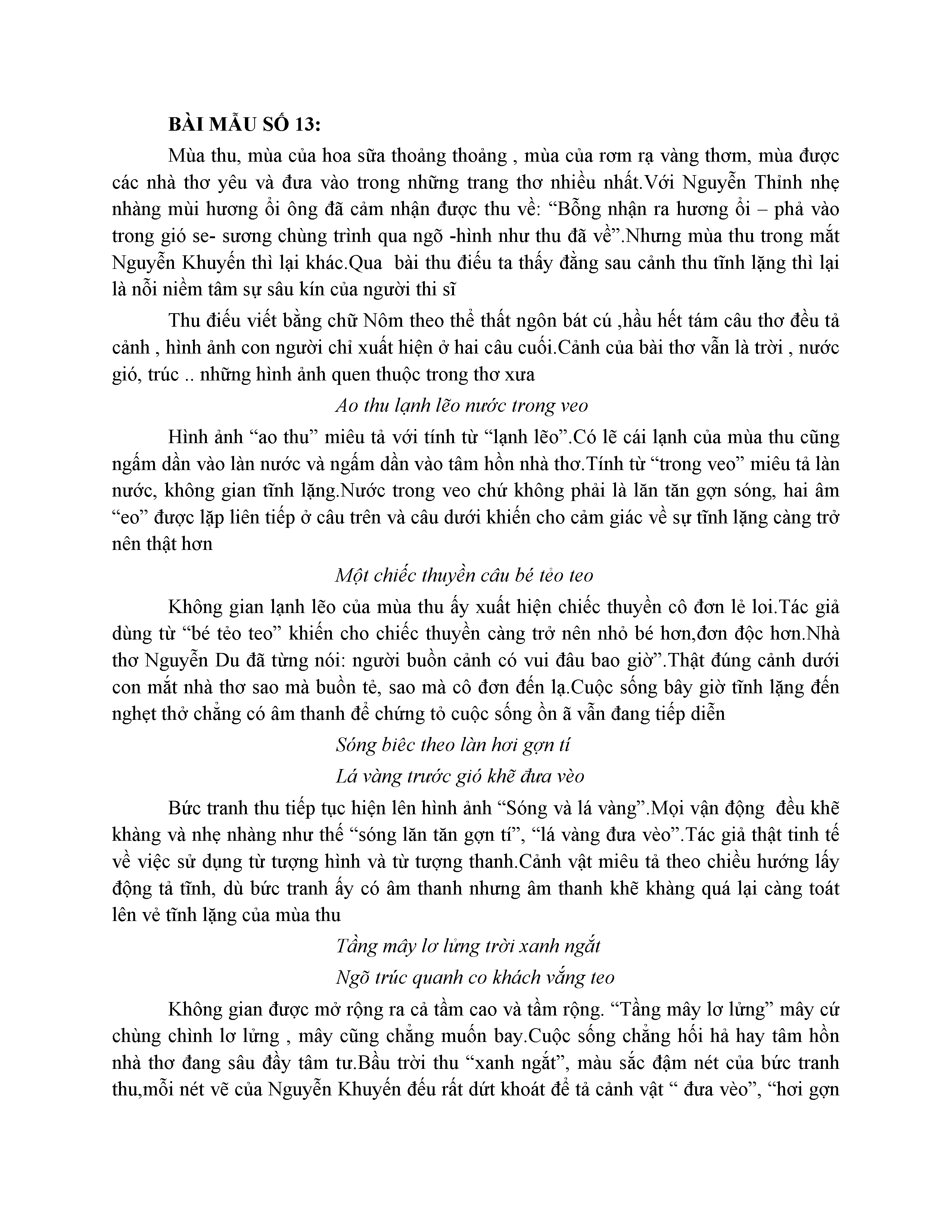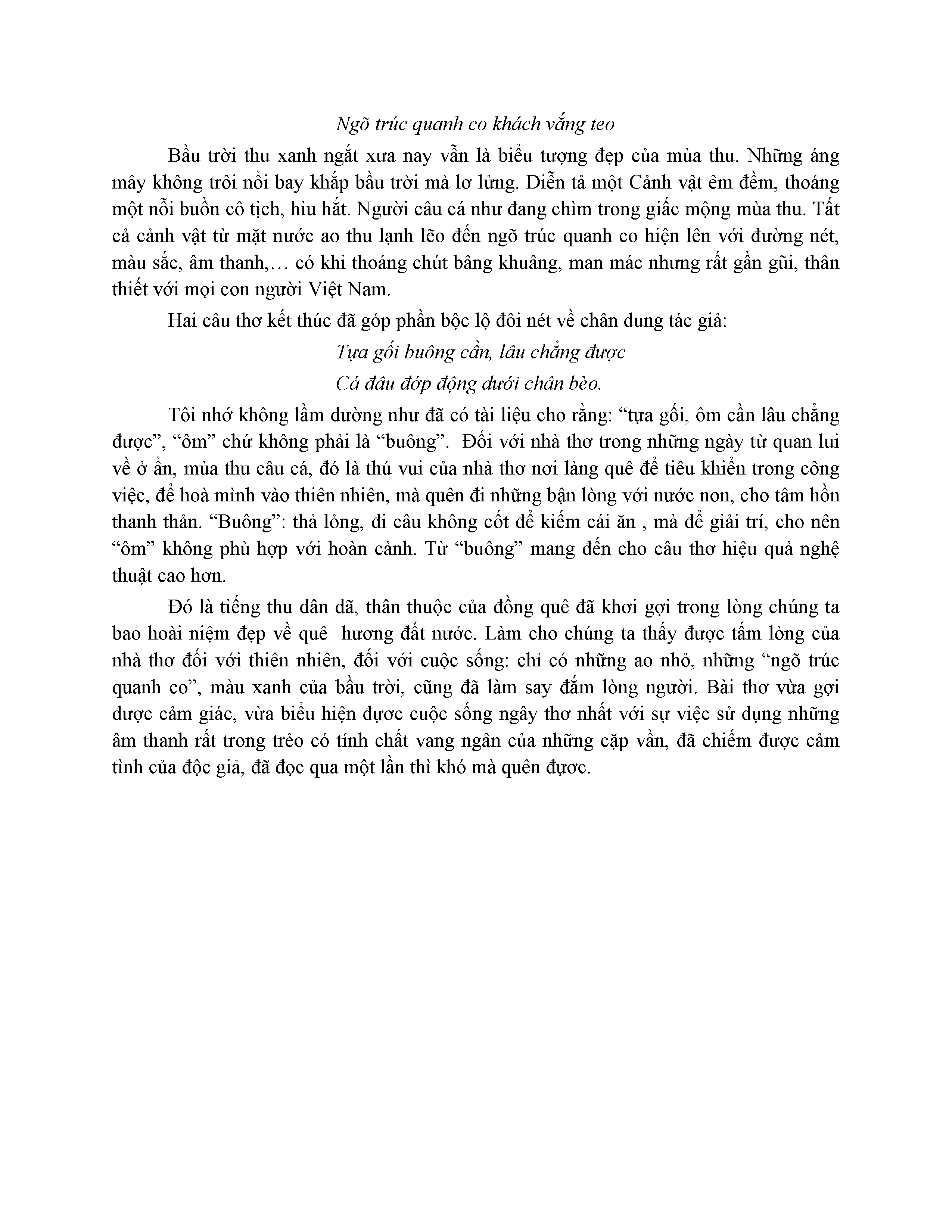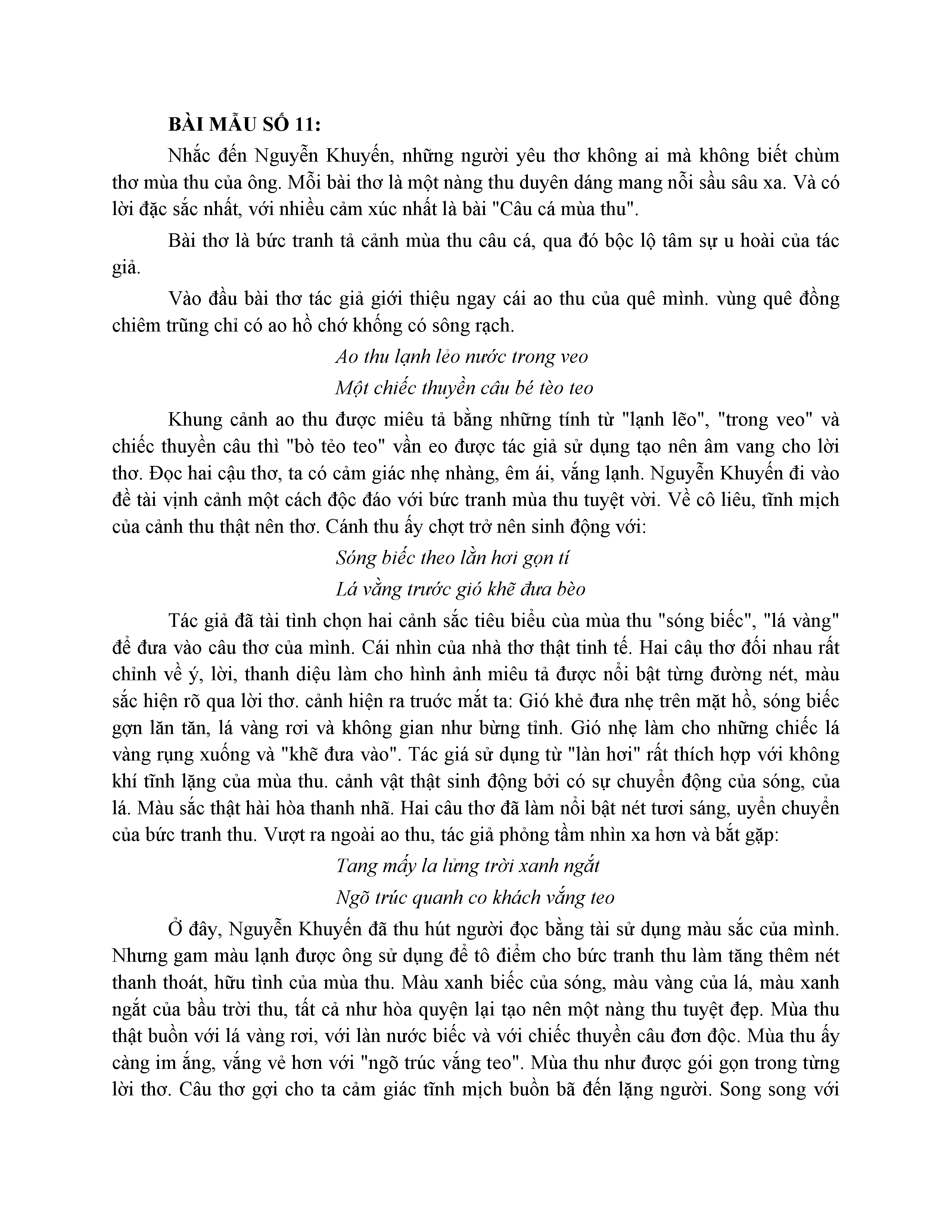 Văn 11: 14 bài phân tích tác phẩm Thu Điếu