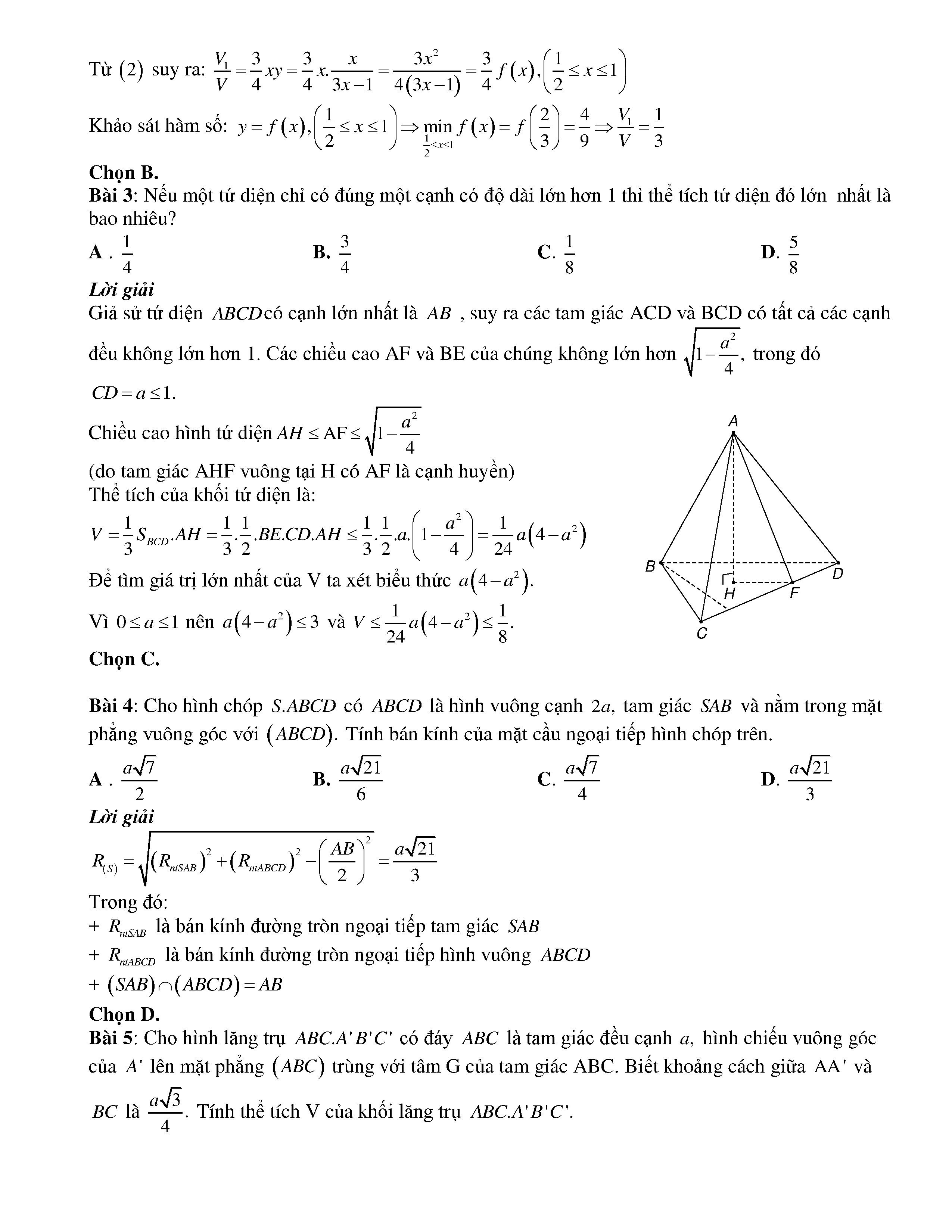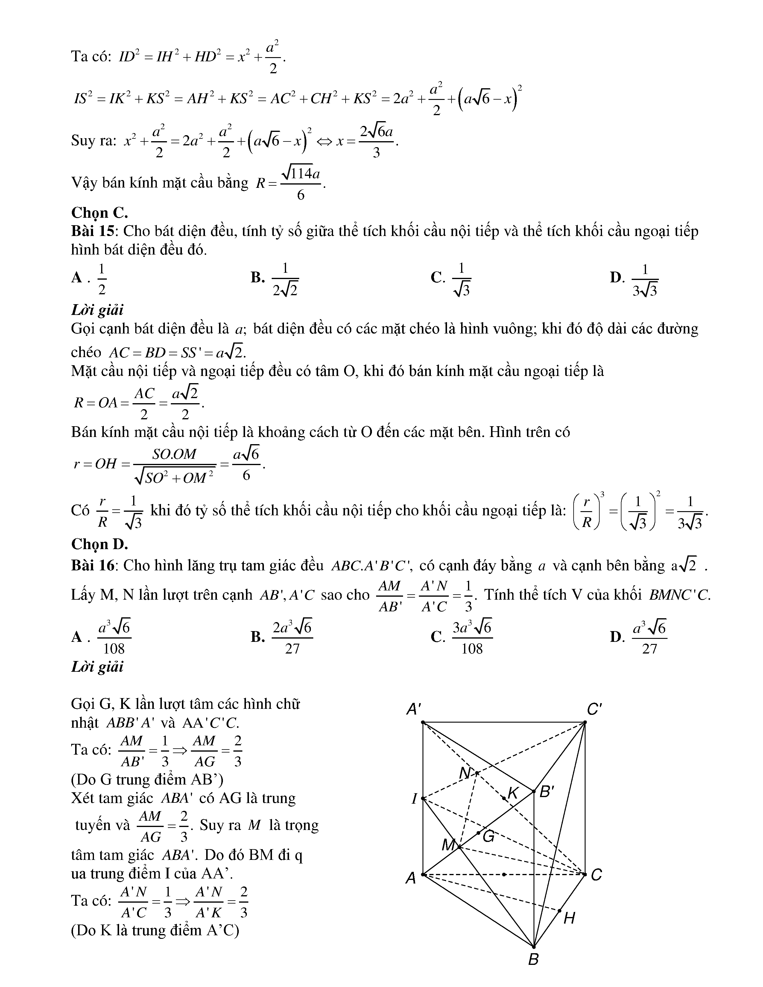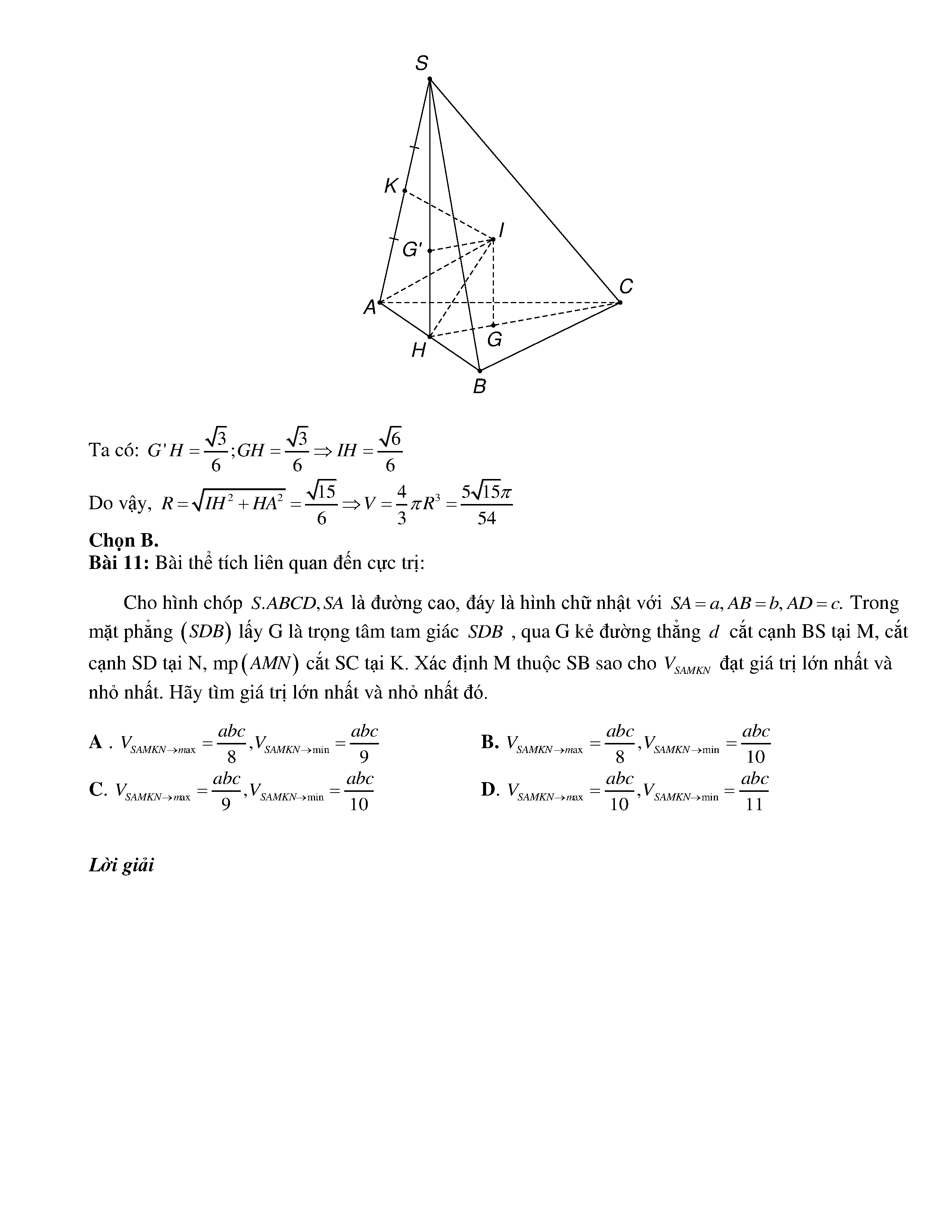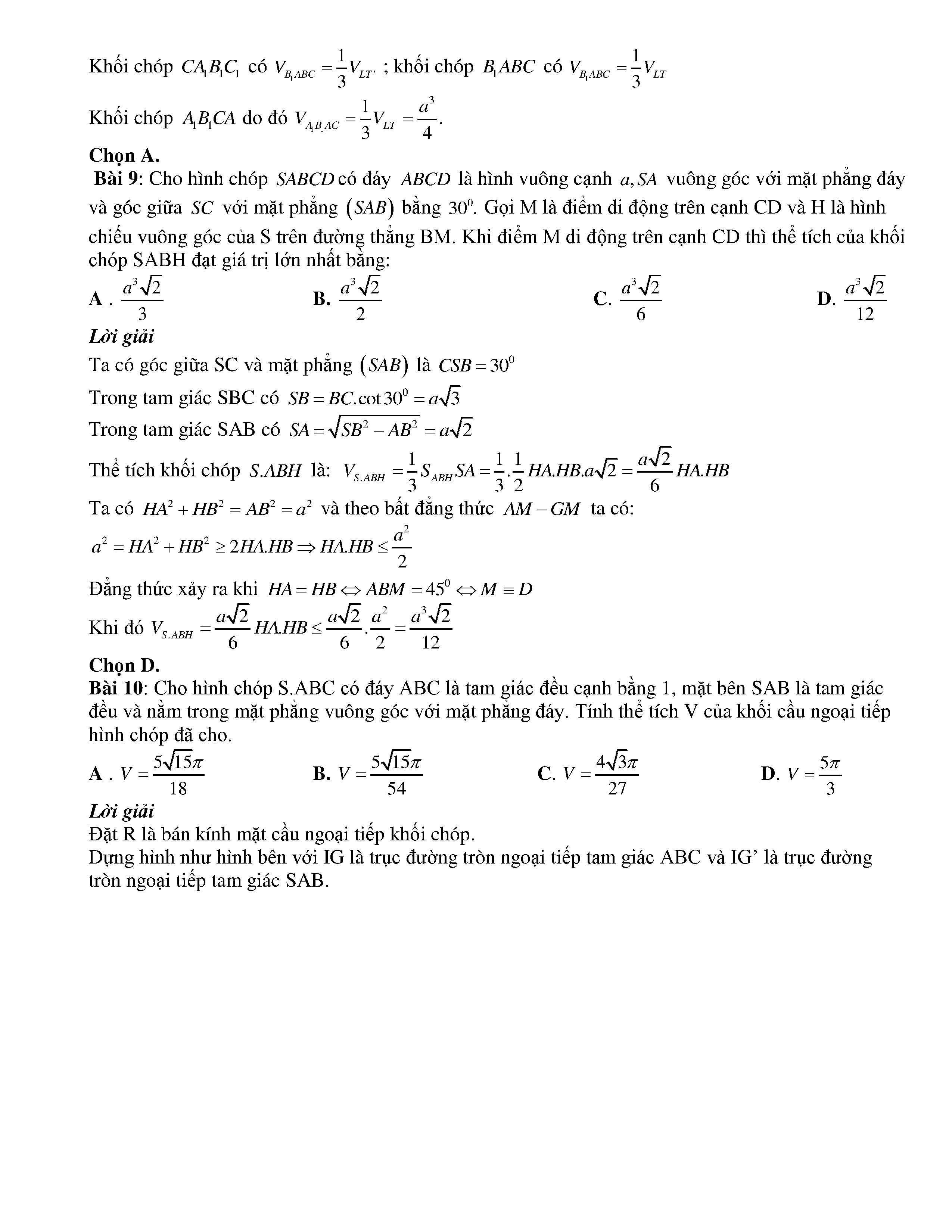 BÀI TOÁN VẬN DỤNG CAO HÌNH HỌC KHÔNG GIAN (TIẾP THEO)