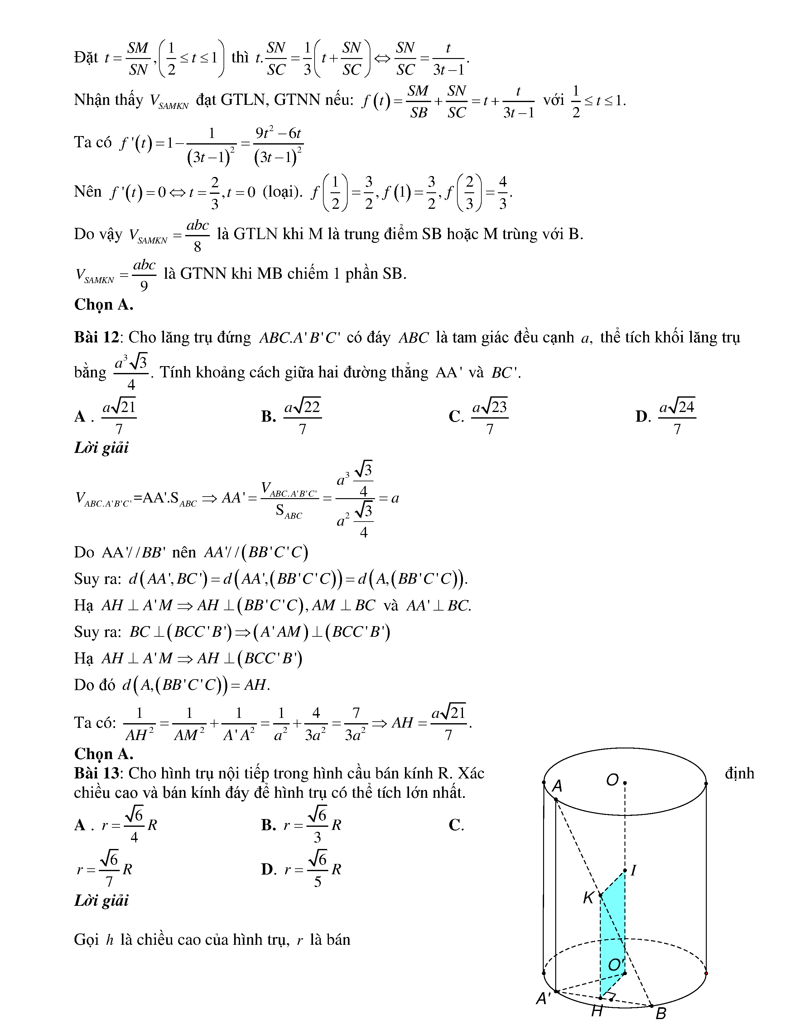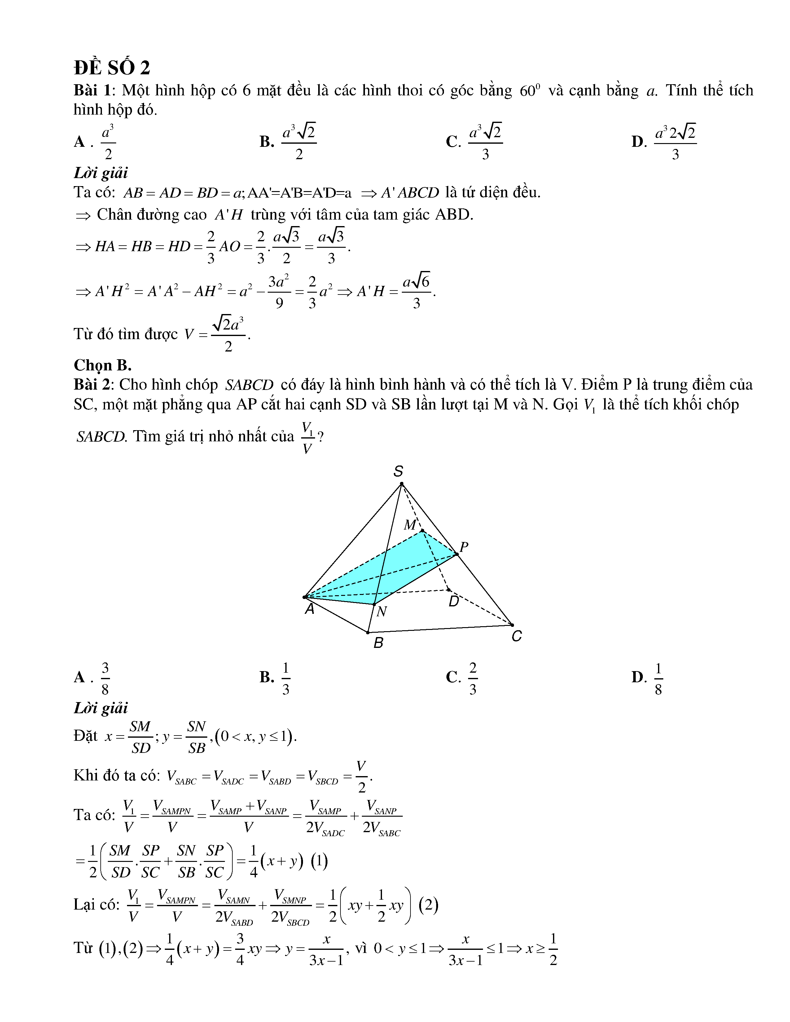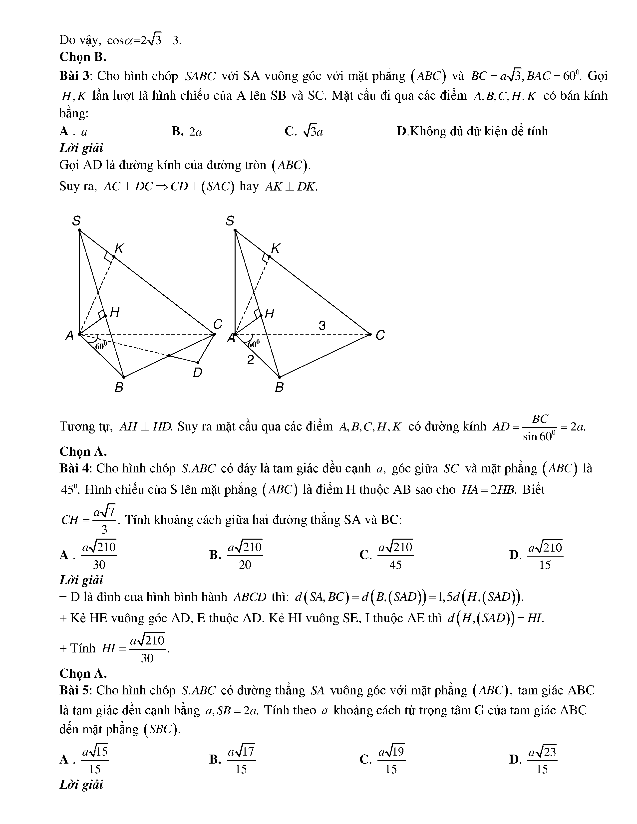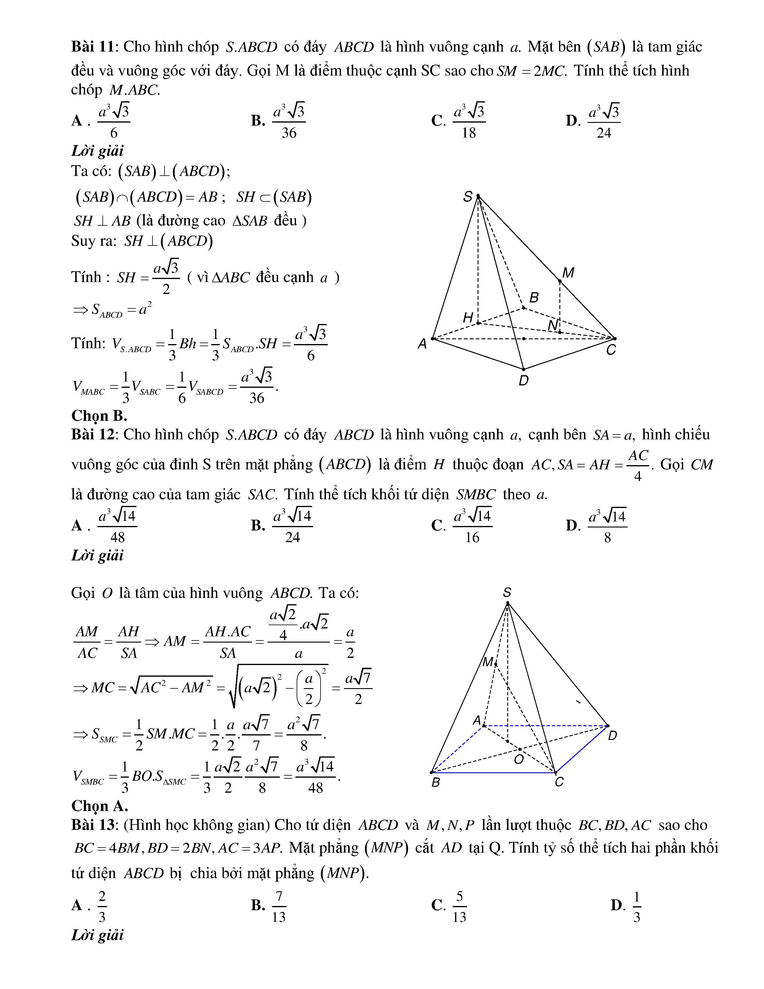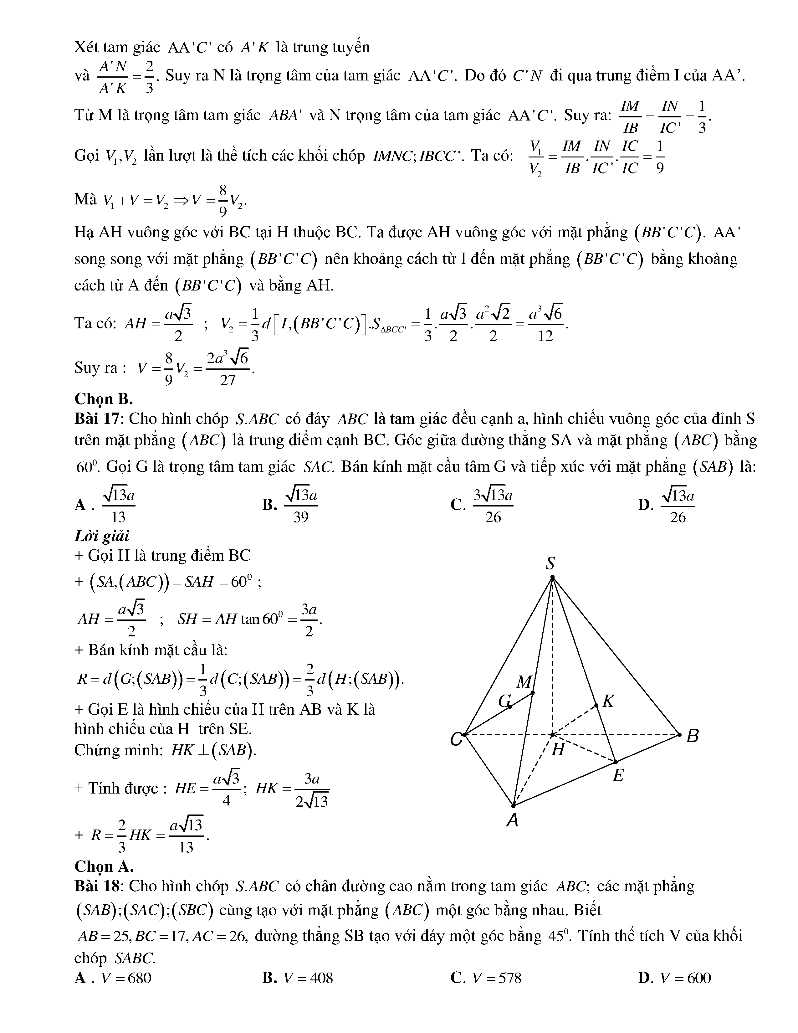 BÀI TOÁN VẬN DỤNG CAO HÌNH HỌC KHÔNG GIAN (TIẾP THEO)