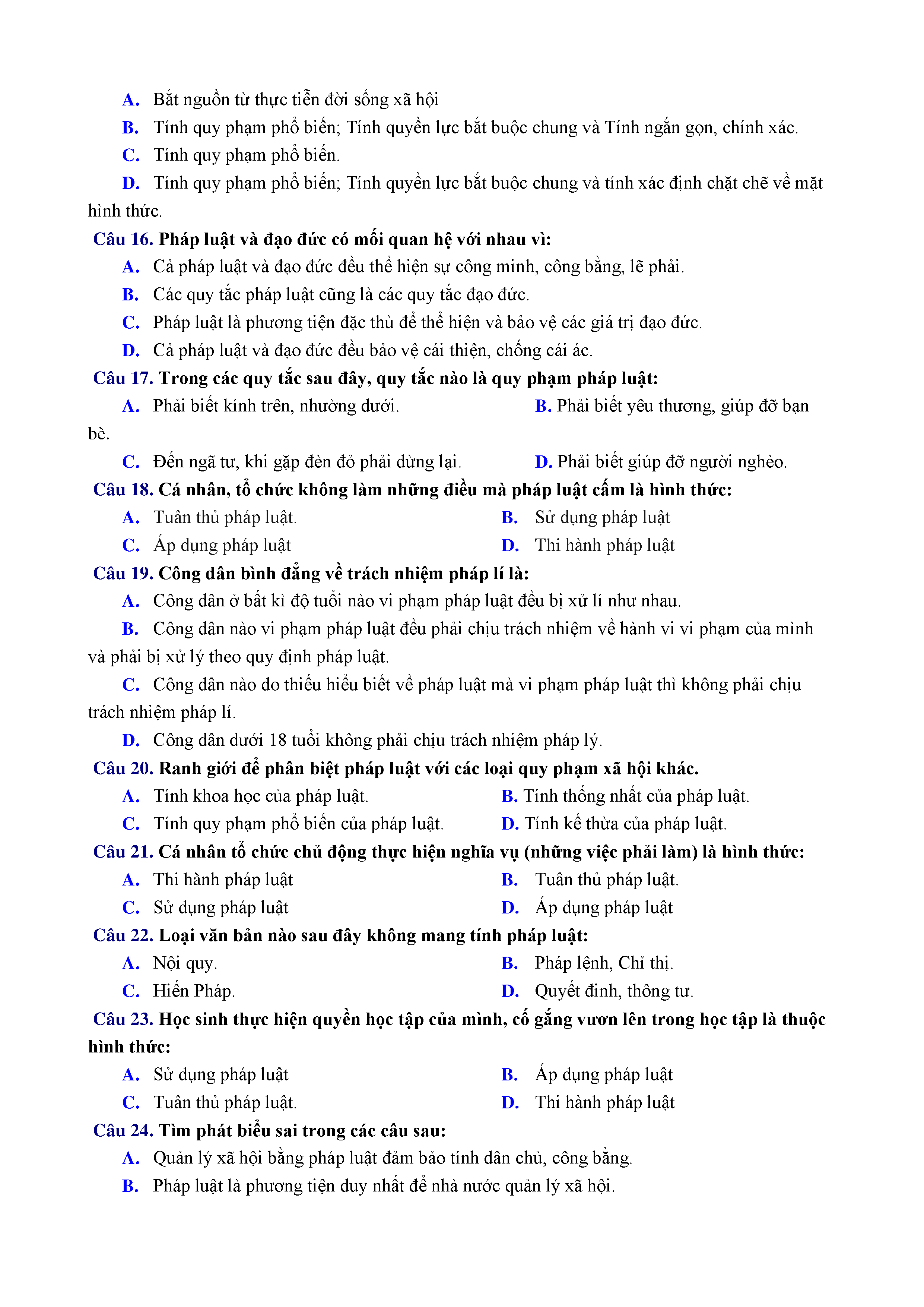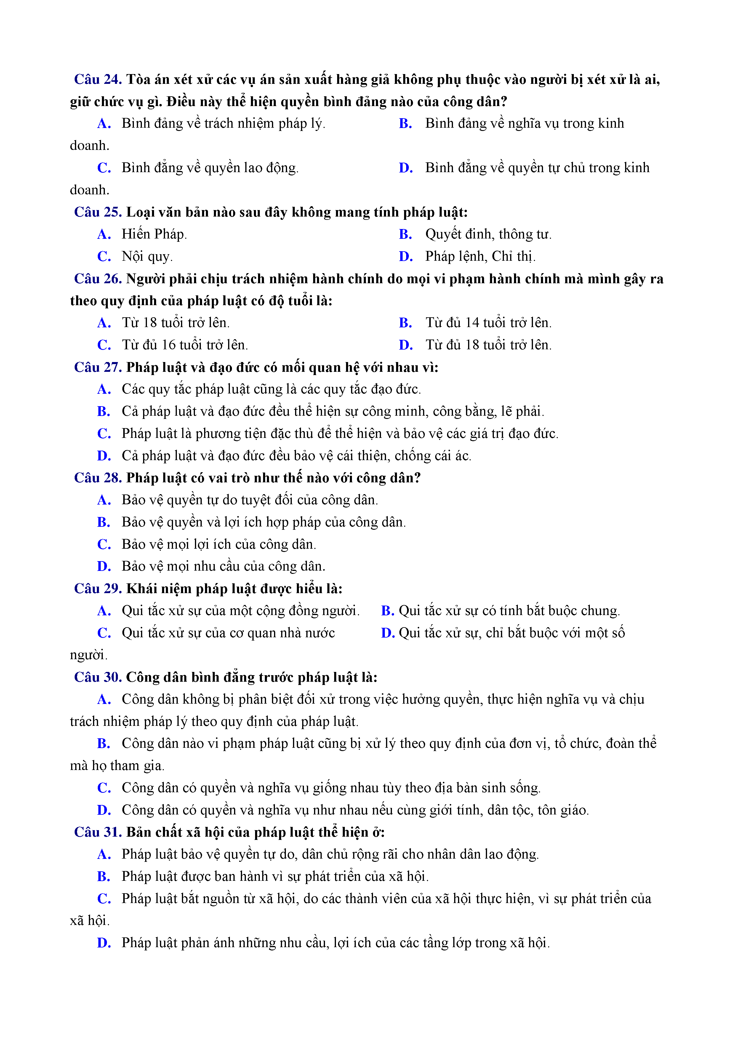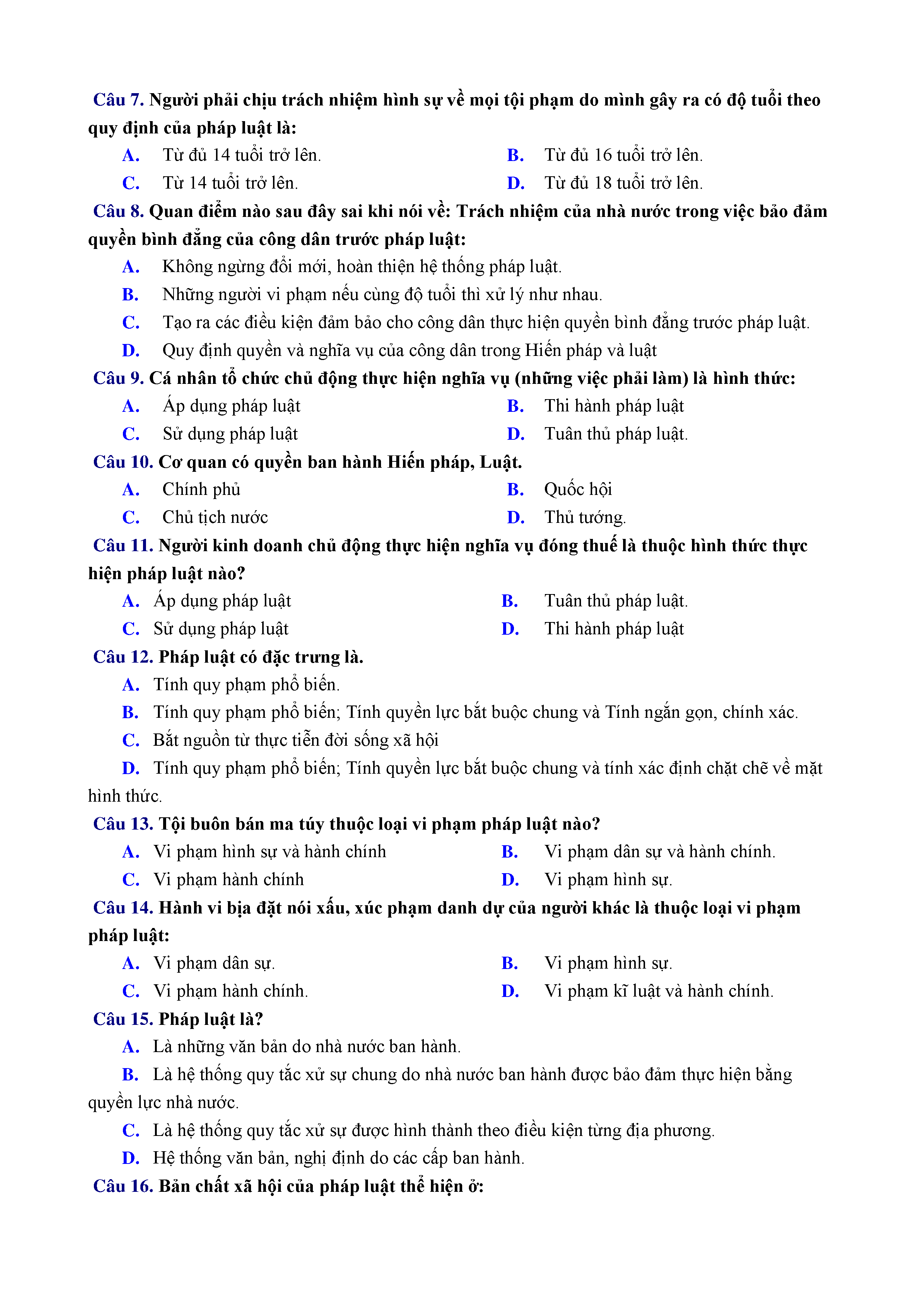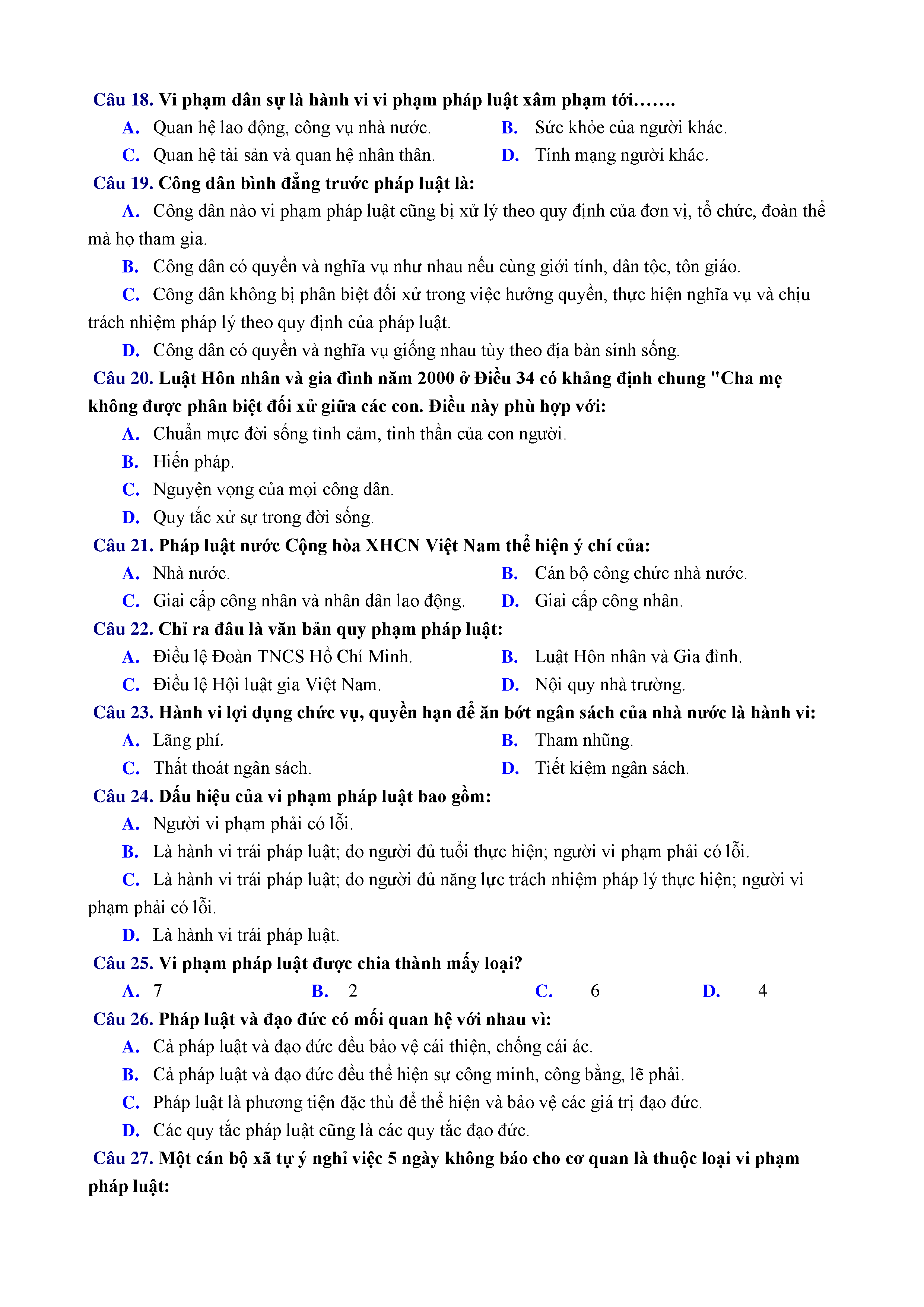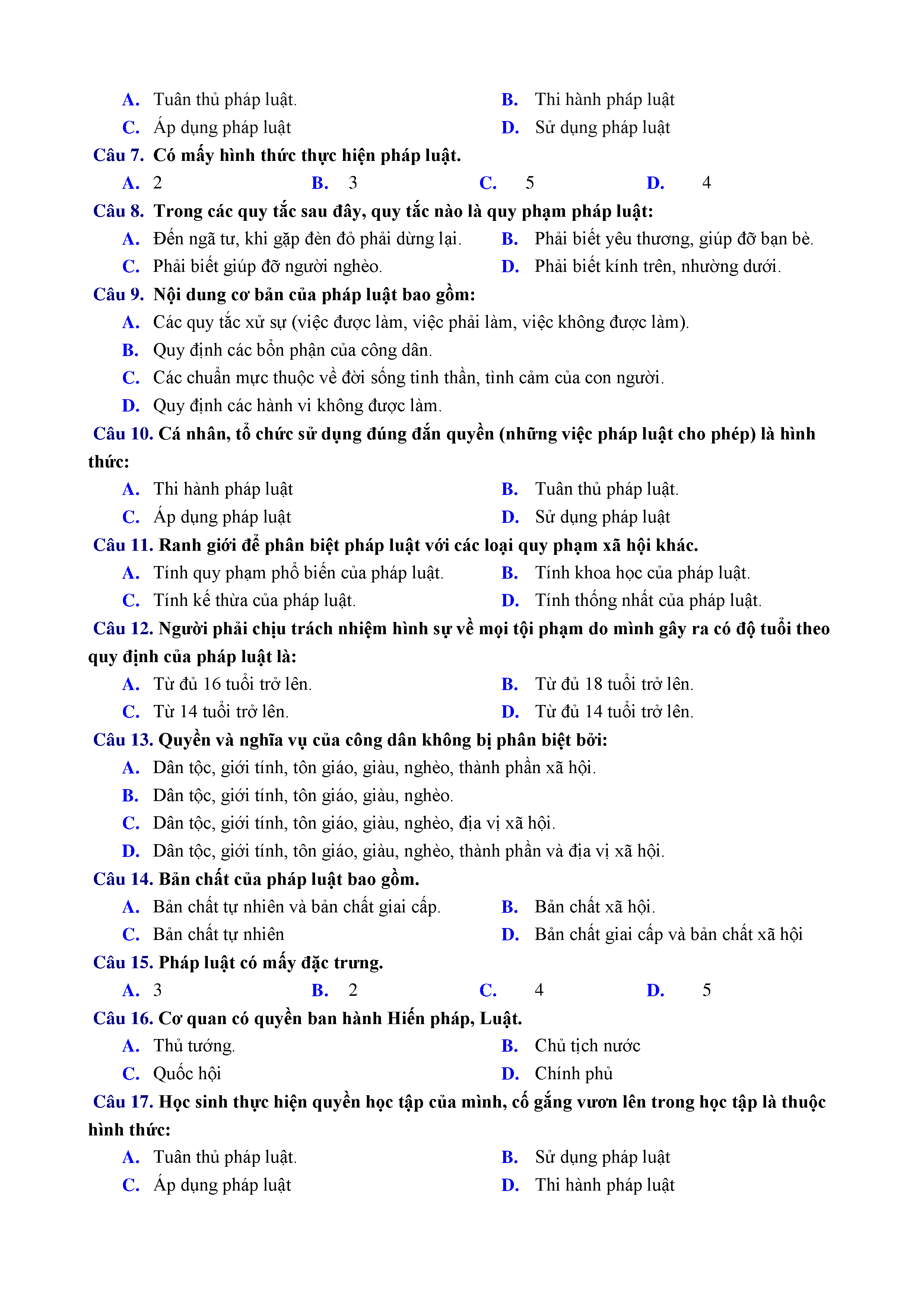 ĐỀ KT 1 TIẾT - GDCD - LỚP 12