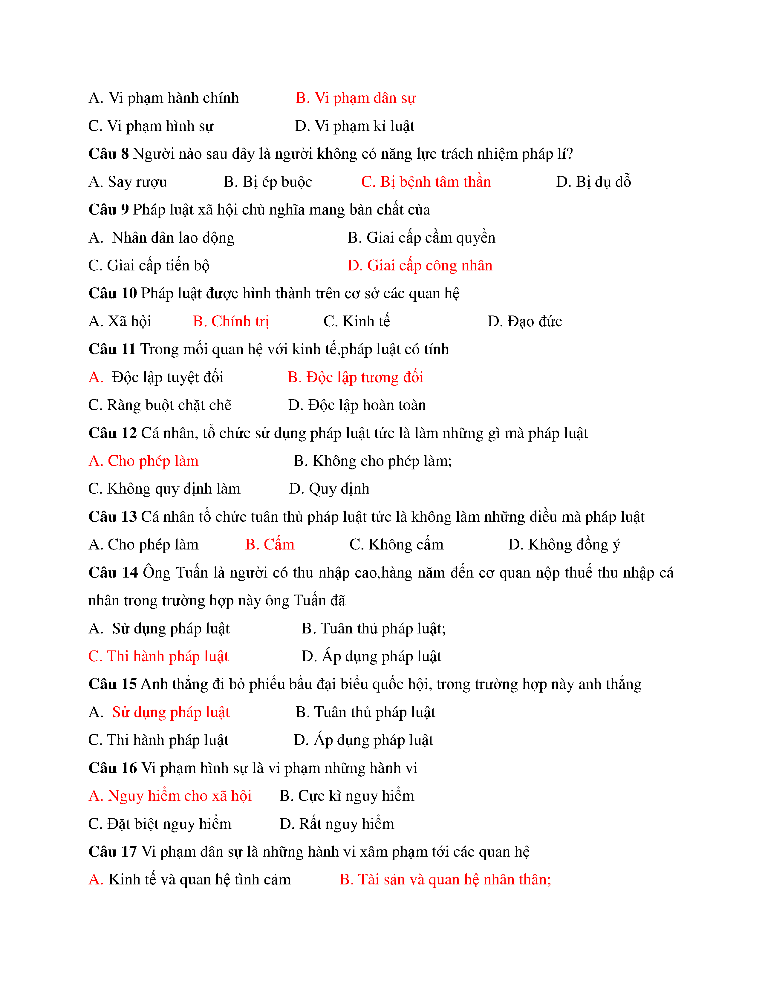 ĐỀ KT HK I - SỐ 2- GDCD - LỚP 12