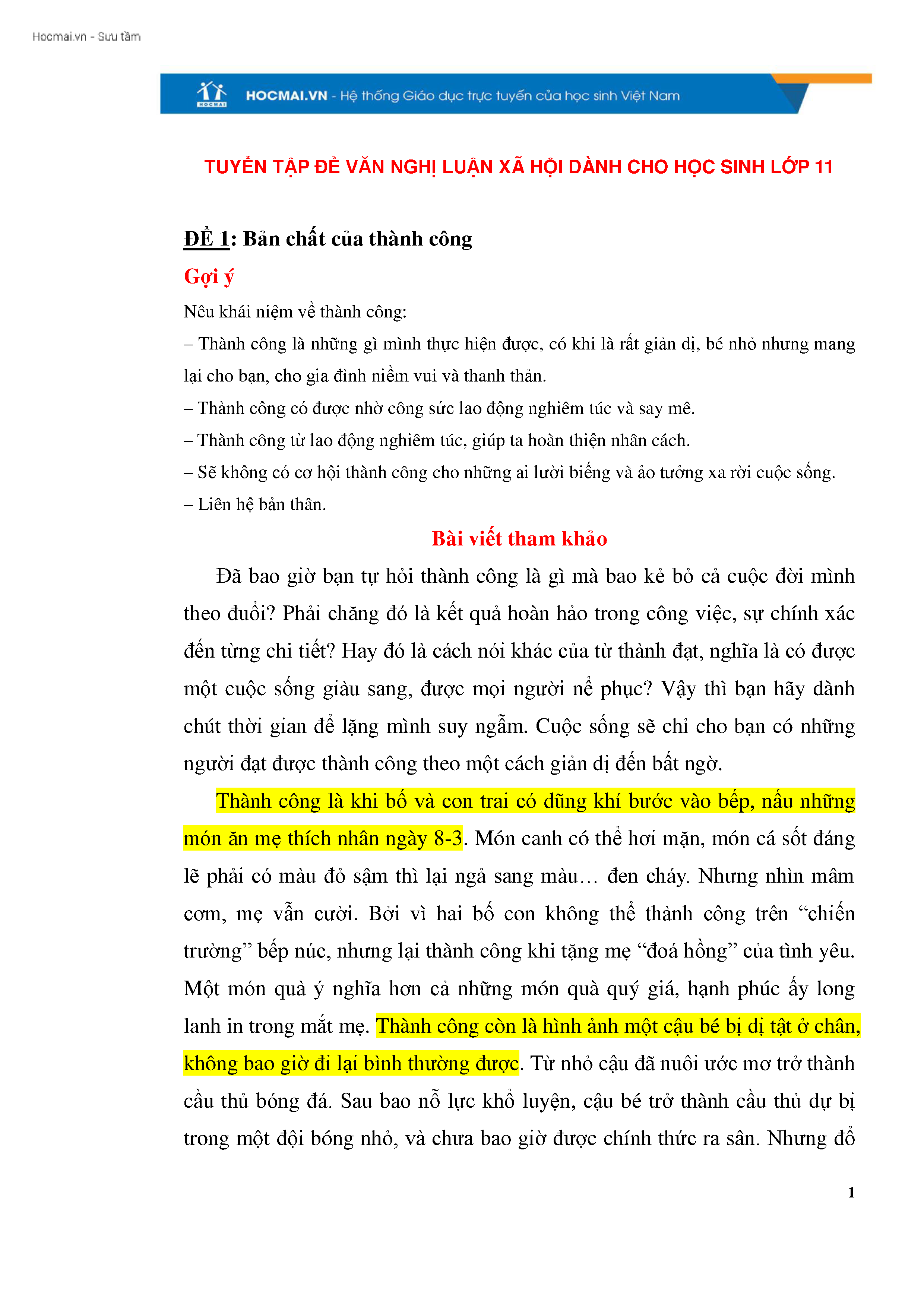 Tuyển tập đề văn NLXH cho học sinh lớp 11