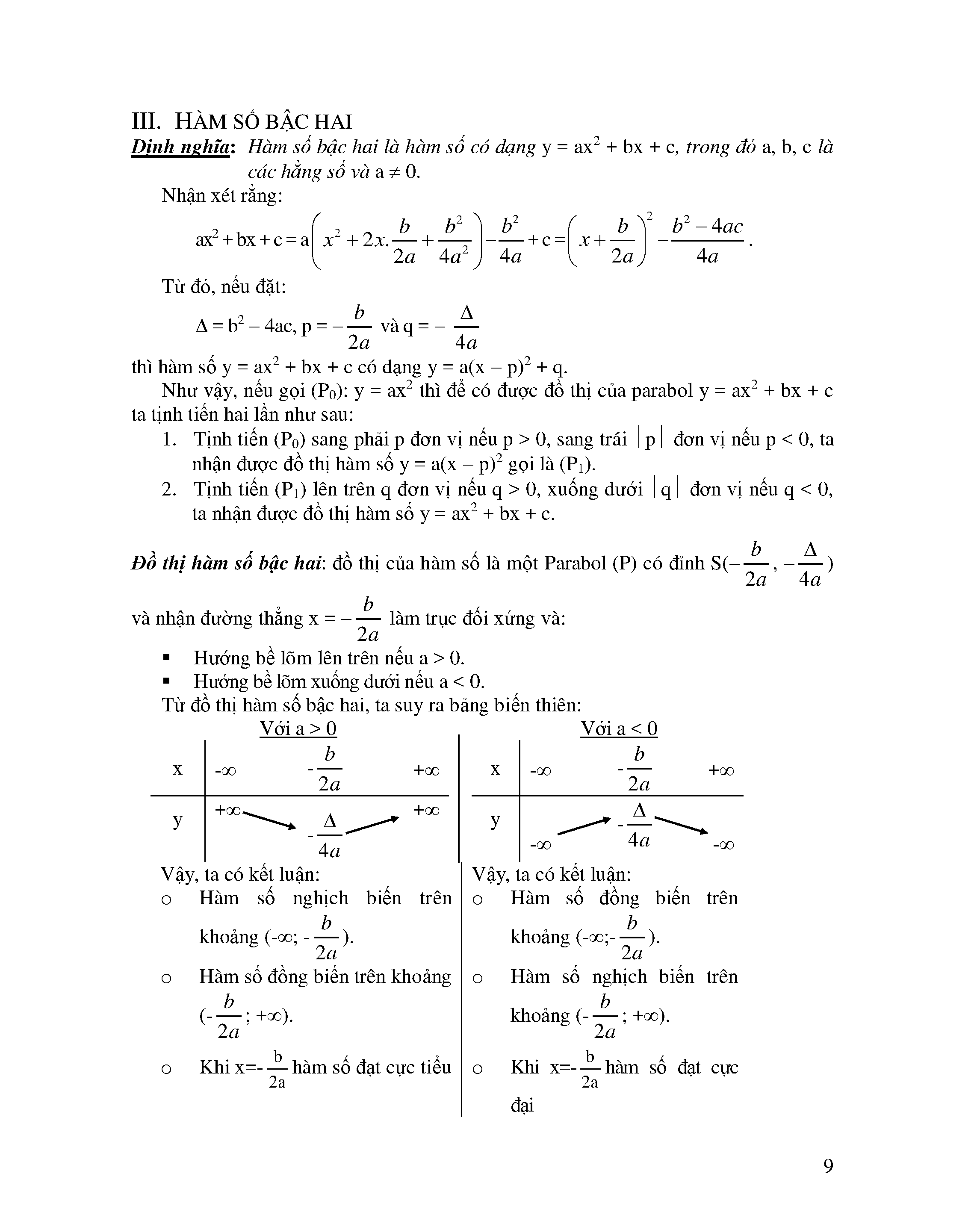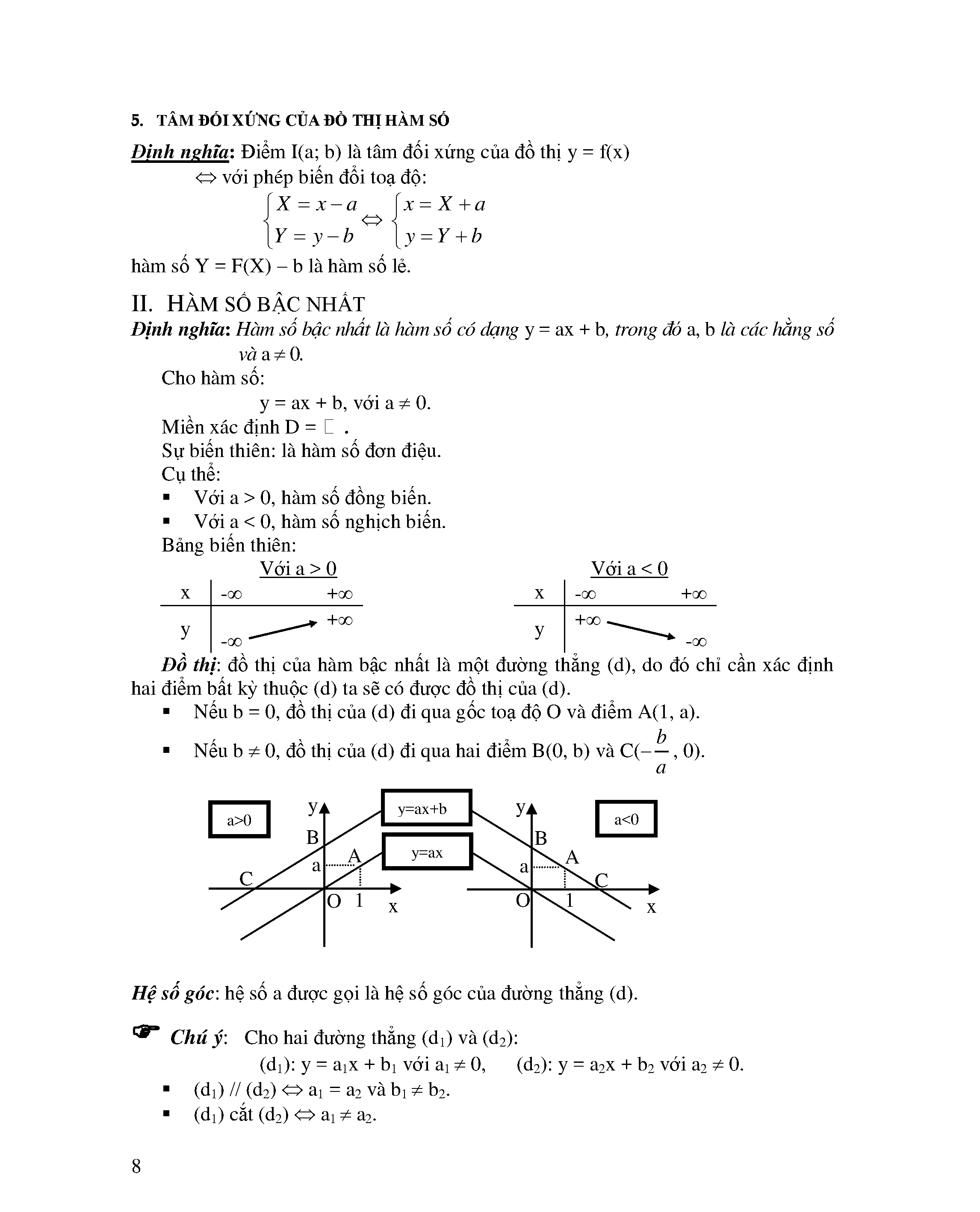 Kiến thức cần nhớ Hàm số bậc nhất và hàm số bậc hai