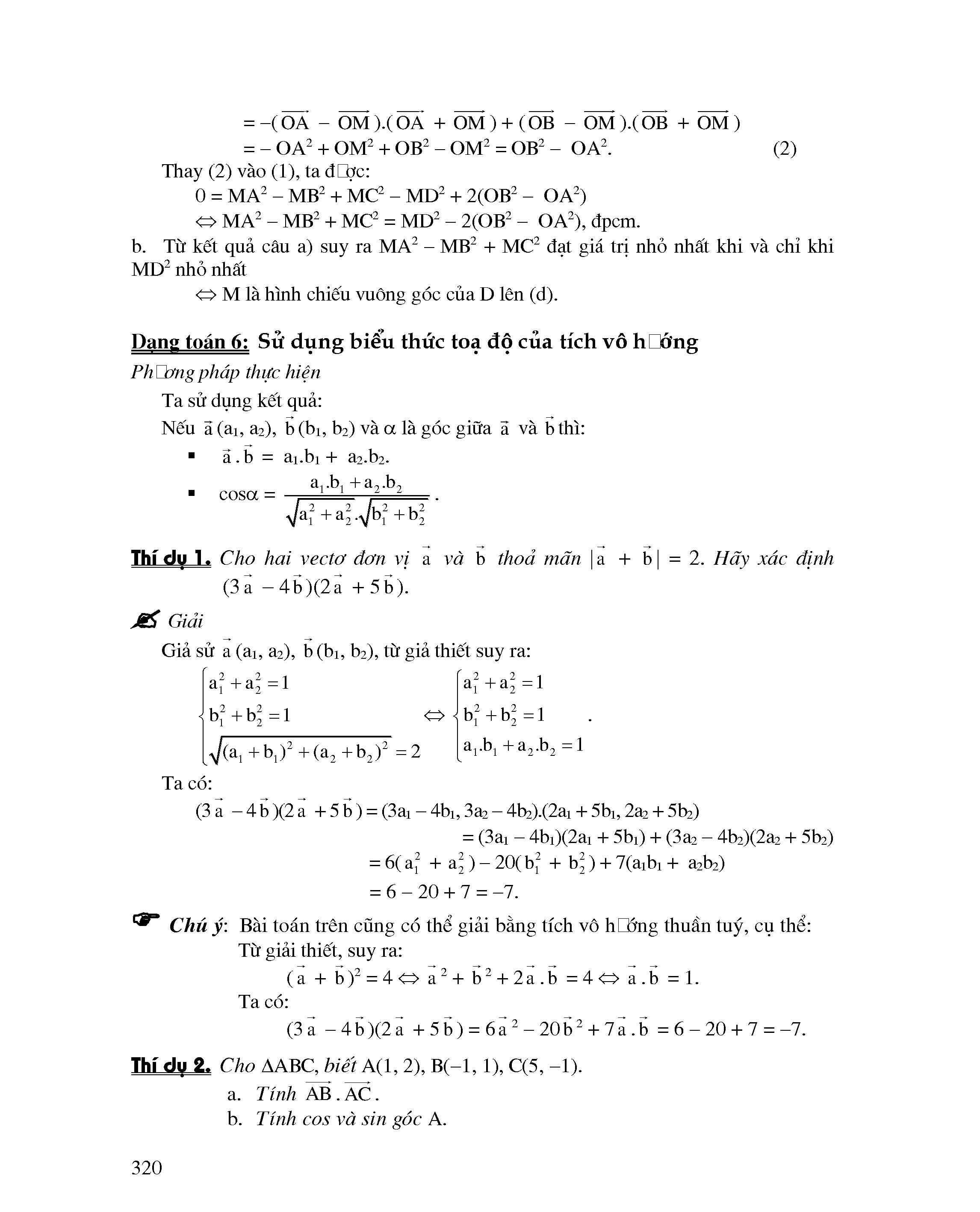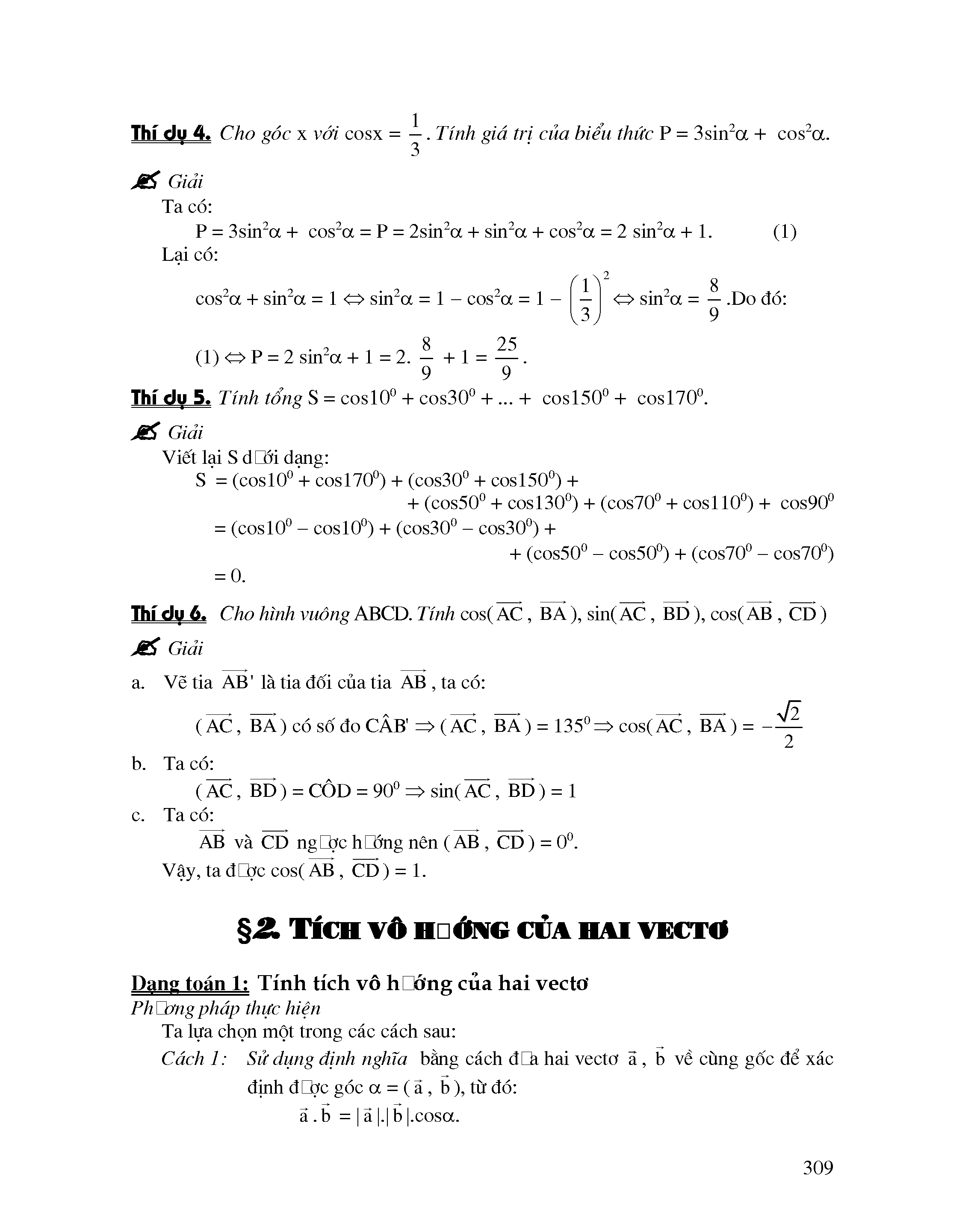 Kiến thức chương 2 hình học Toán 10: Tích vô hướng của hai vectơ