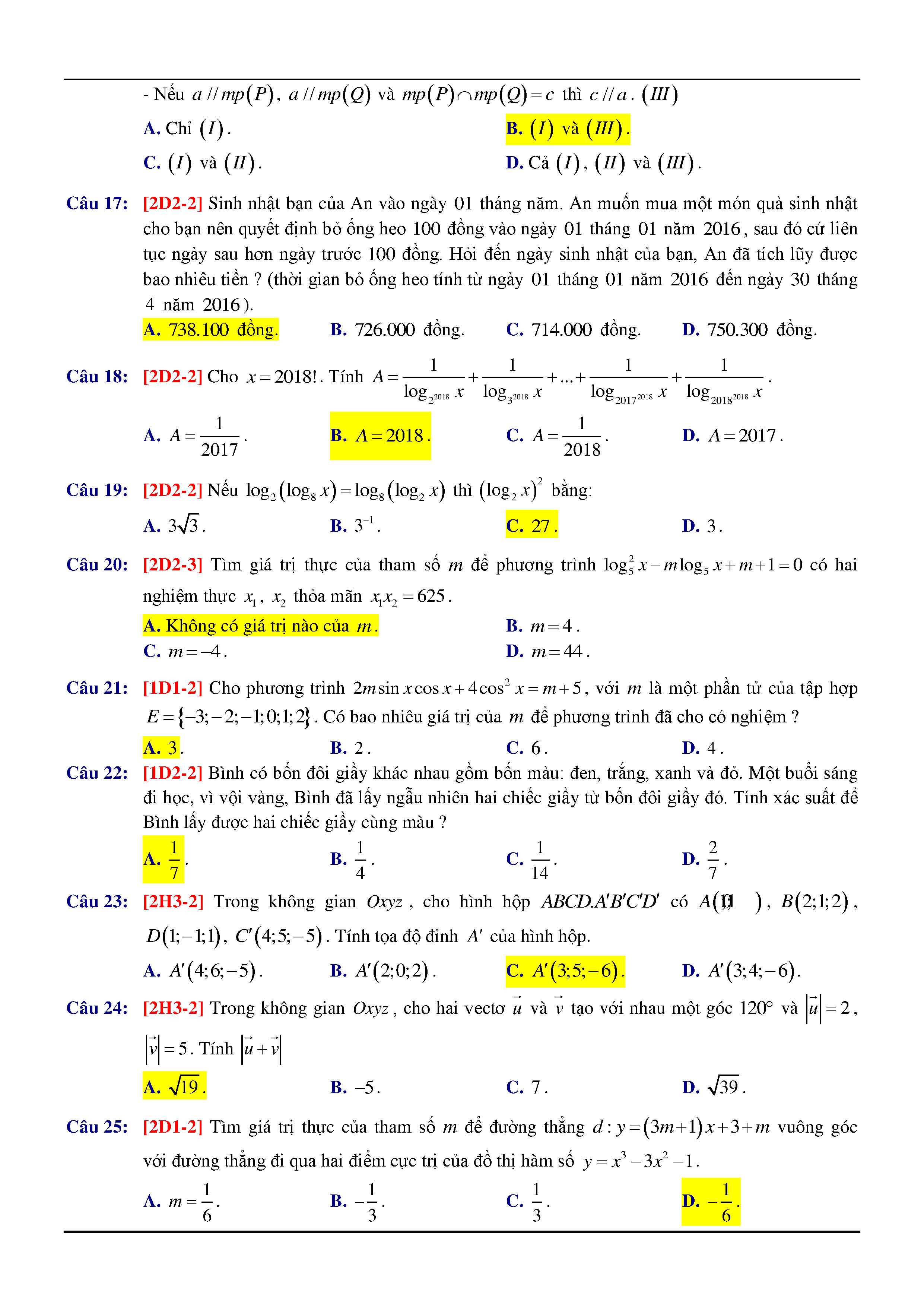Tổng hợp 52 đề THPT quốc gia 2018 có cấu trúc mới_ đề số 23 (có đáp án)