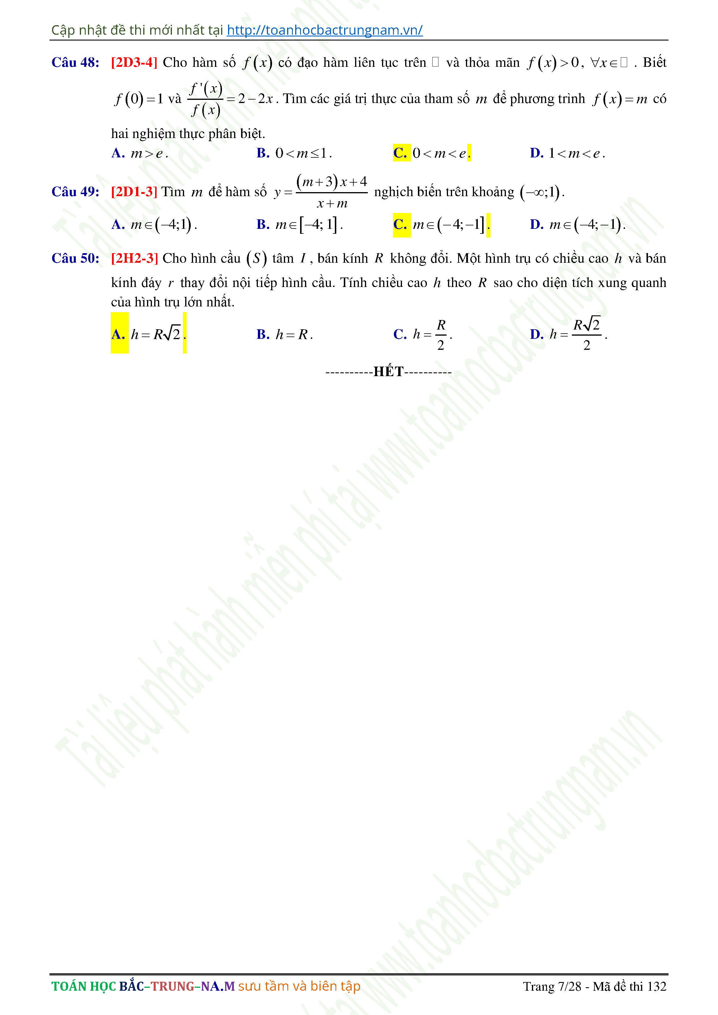 Tổng hợp 52 đề THPT quốc gia 2018 có cấu trúc mới_ đề số 25 (có đáp án)