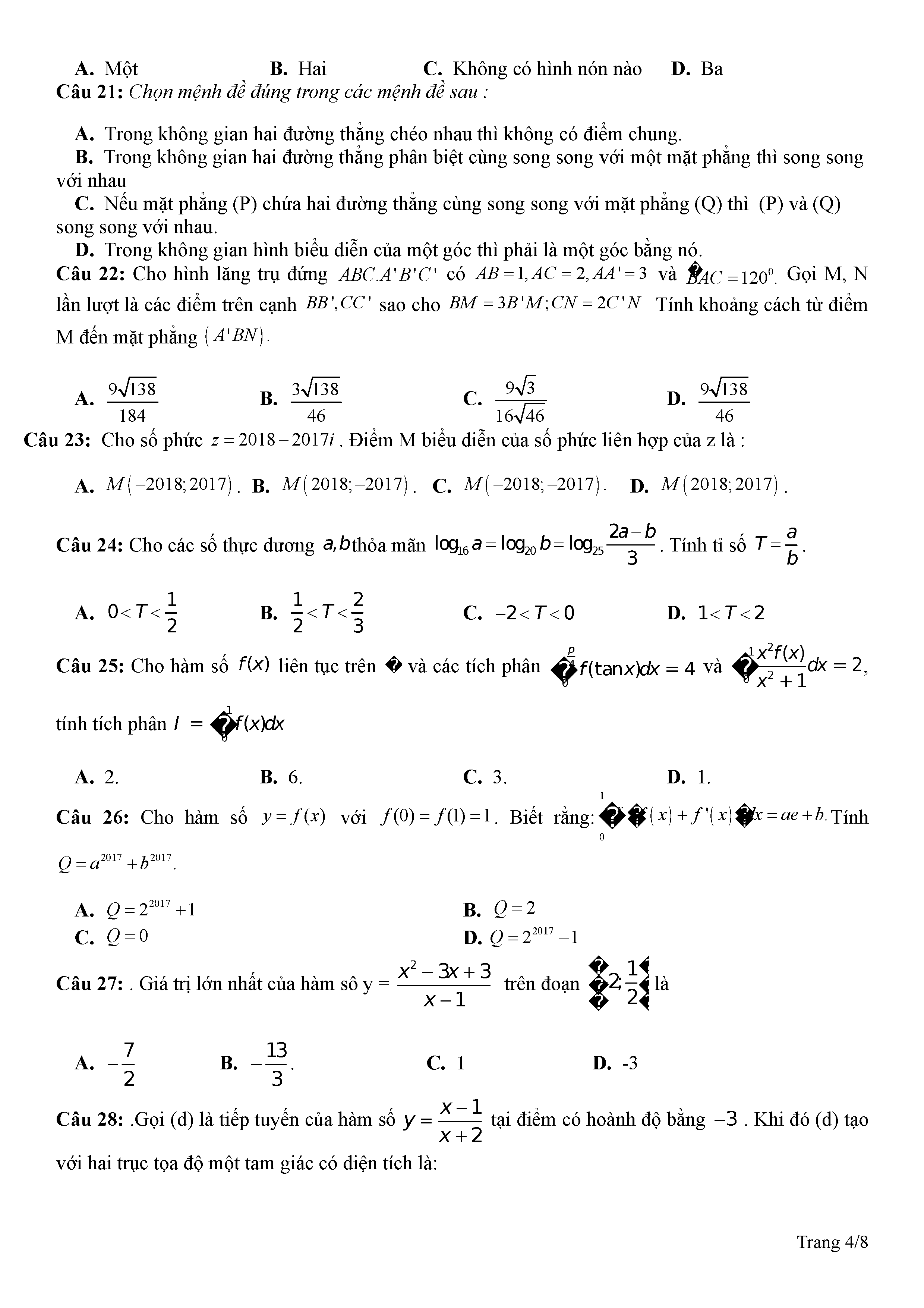 Tổng hợp 52 đề THPT quốc gia 2018 có cấu trúc mới_ đề số 33 (có đáp án)