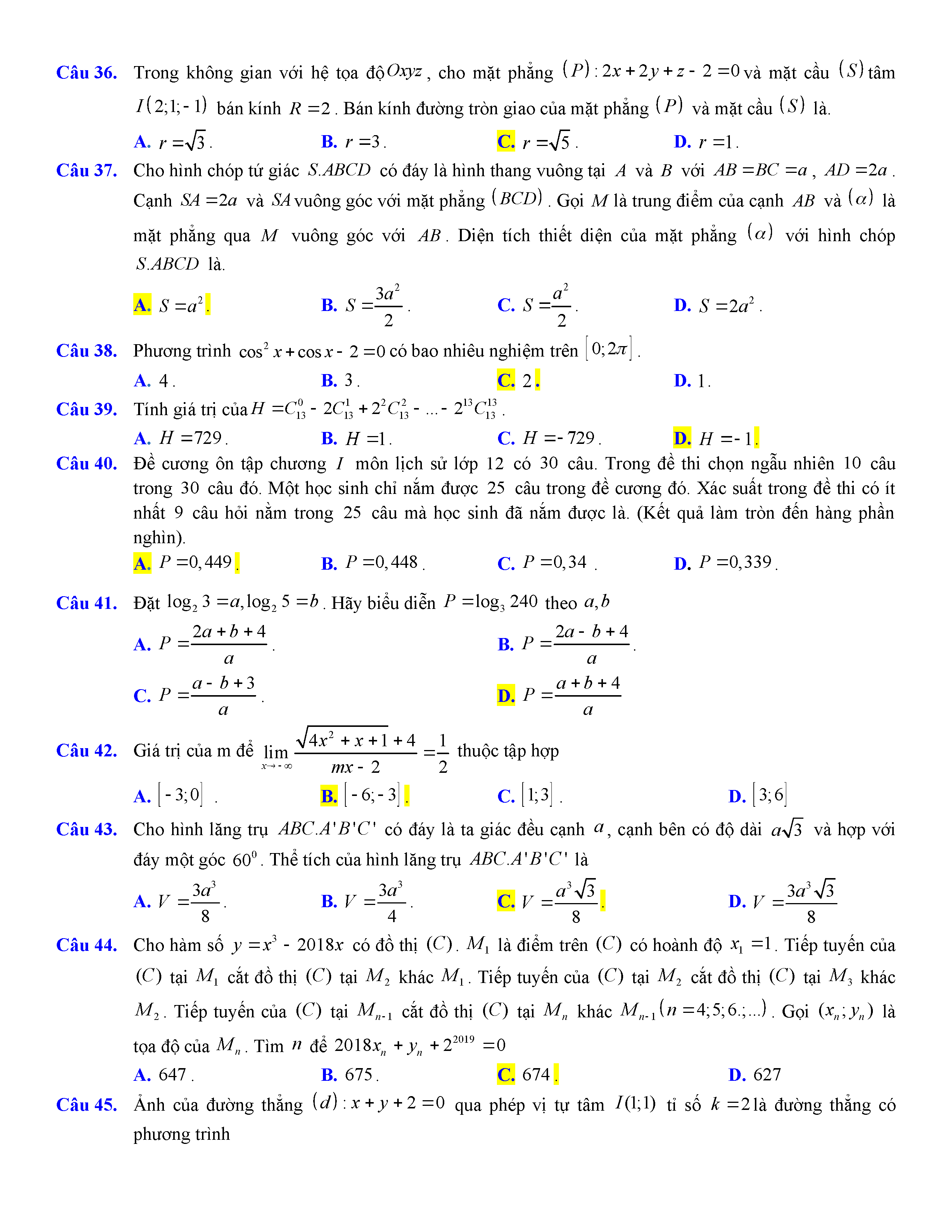 Tổng hợp 52 đề THPT quốc gia 2018 có cấu trúc mới_ đề số 38 (có đáp án)