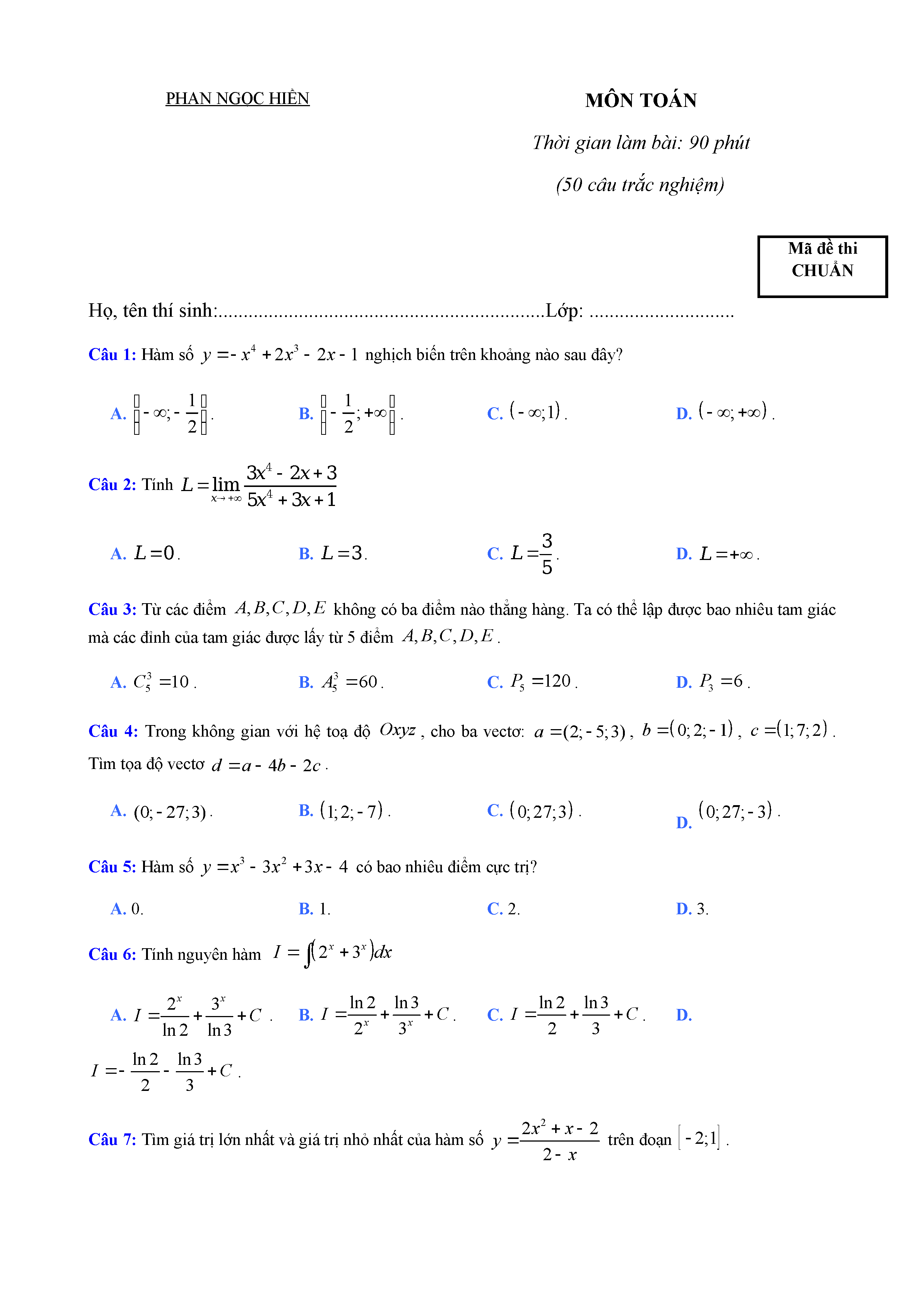 Tổng hợp 52 đề THPT quốc gia 2018 có cấu trúc mới_ đề số 41 (có đáp án)
