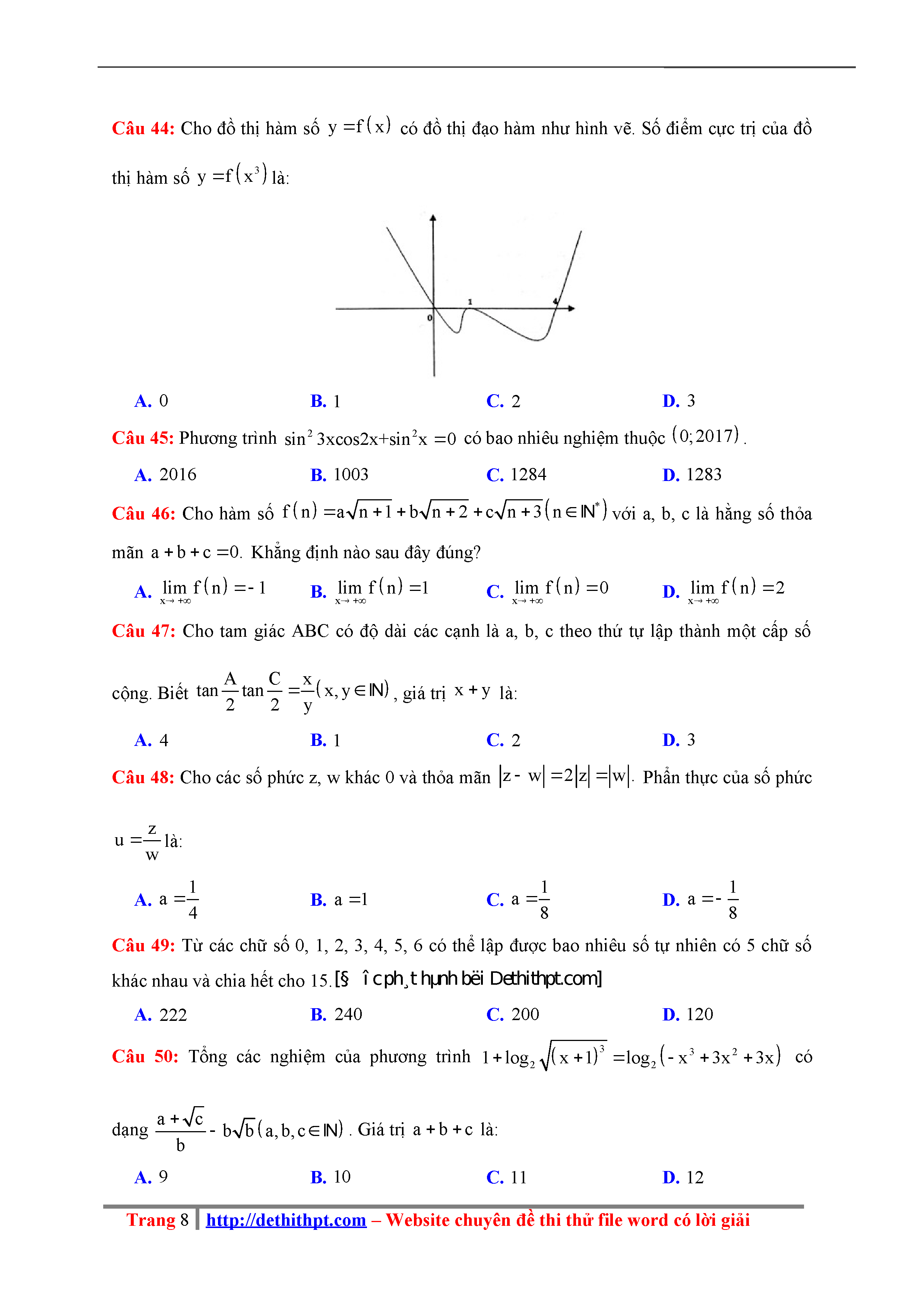 Tổng hợp 52 đề THPT quốc gia 2018 có cấu trúc mới_ đề số 44 (có đáp án)