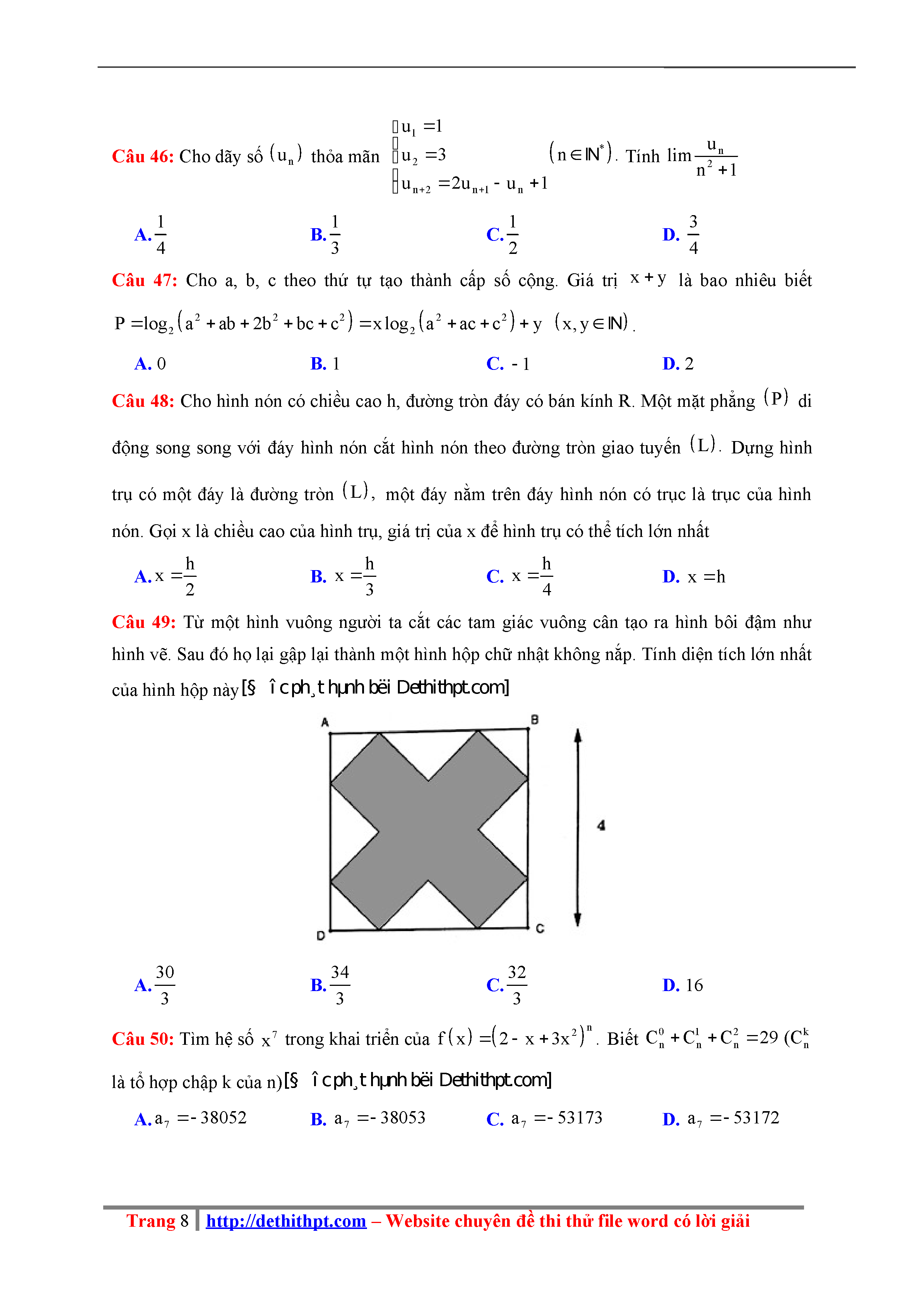 Tổng hợp 52 đề THPT quốc gia 2018 có cấu trúc mới_ đề số 46 (có đáp án)