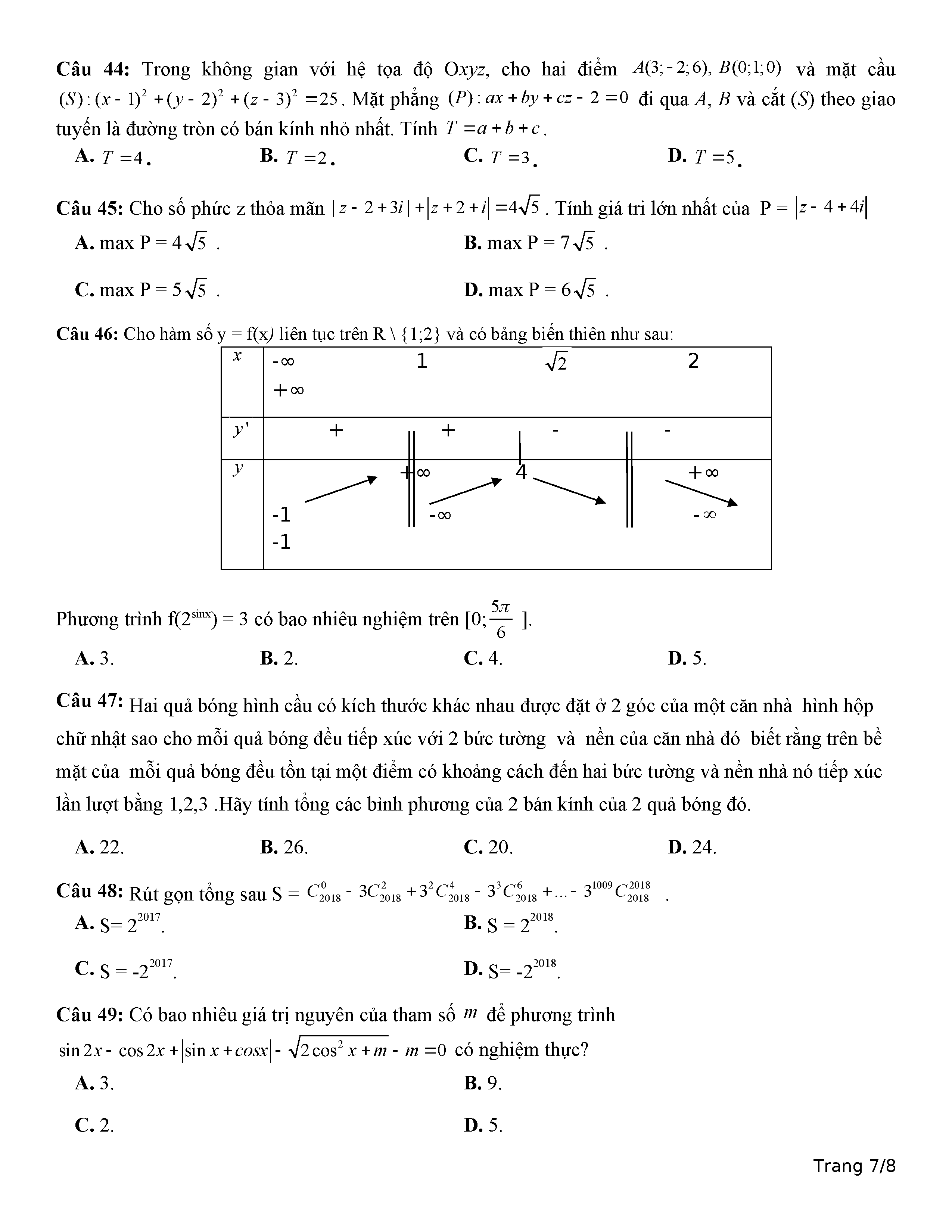 Tổng hợp 52 đề THPT quốc gia 2018 có cấu trúc mới_ đề số 49 (có đáp án)