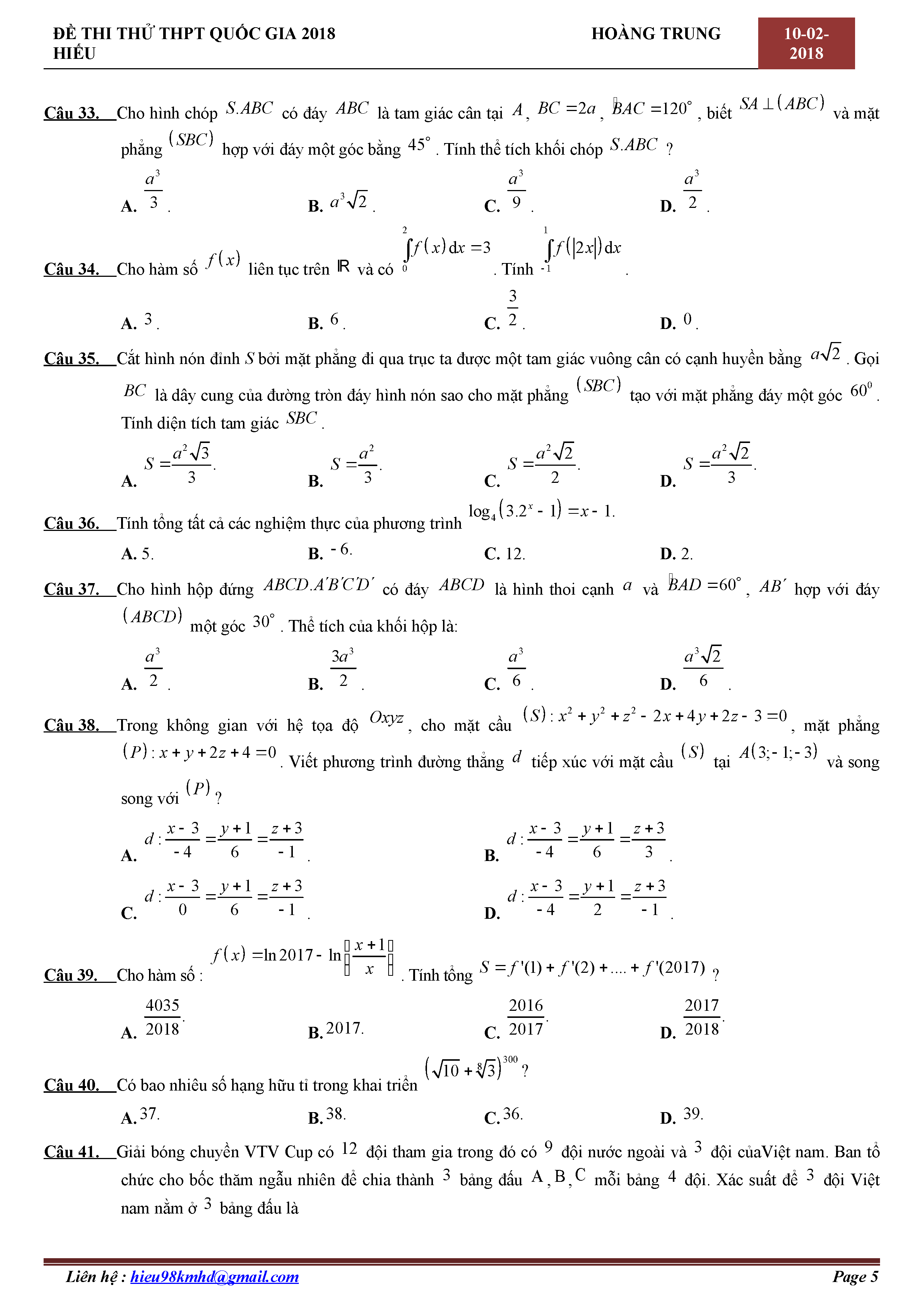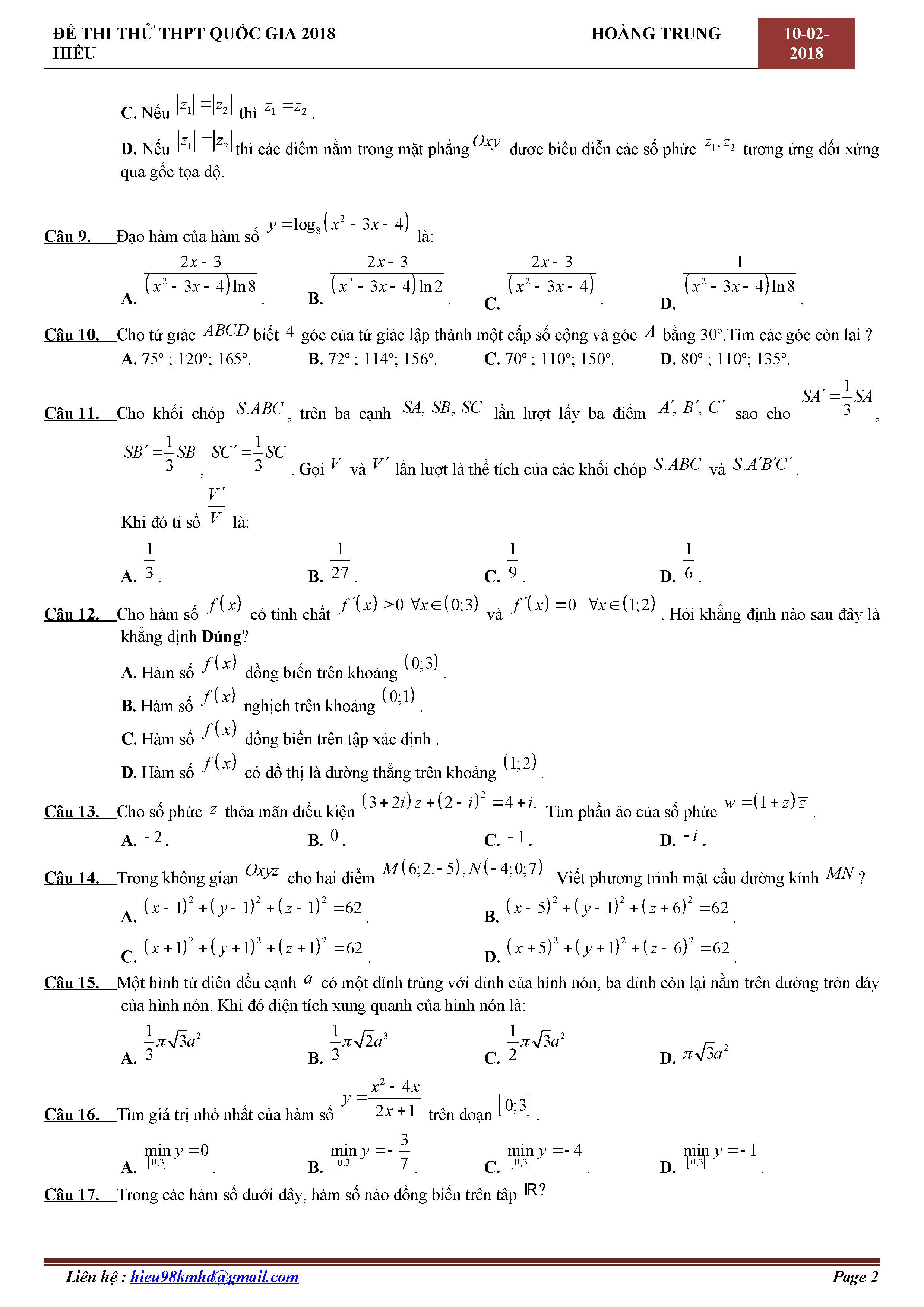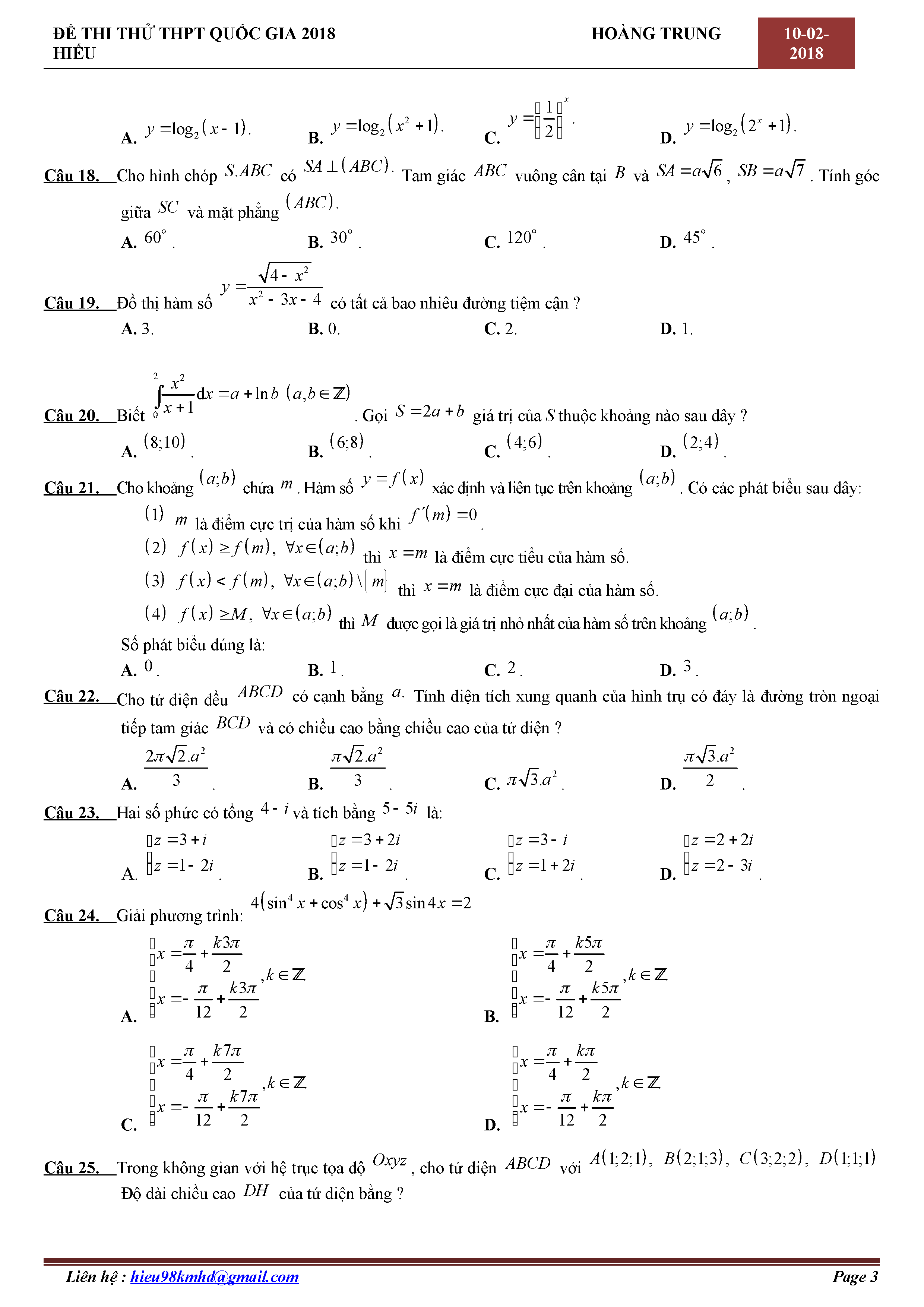 Tổng hợp 52 đề THPT quốc gia 2018 có cấu trúc mới_ đề số 50 (có đáp án)