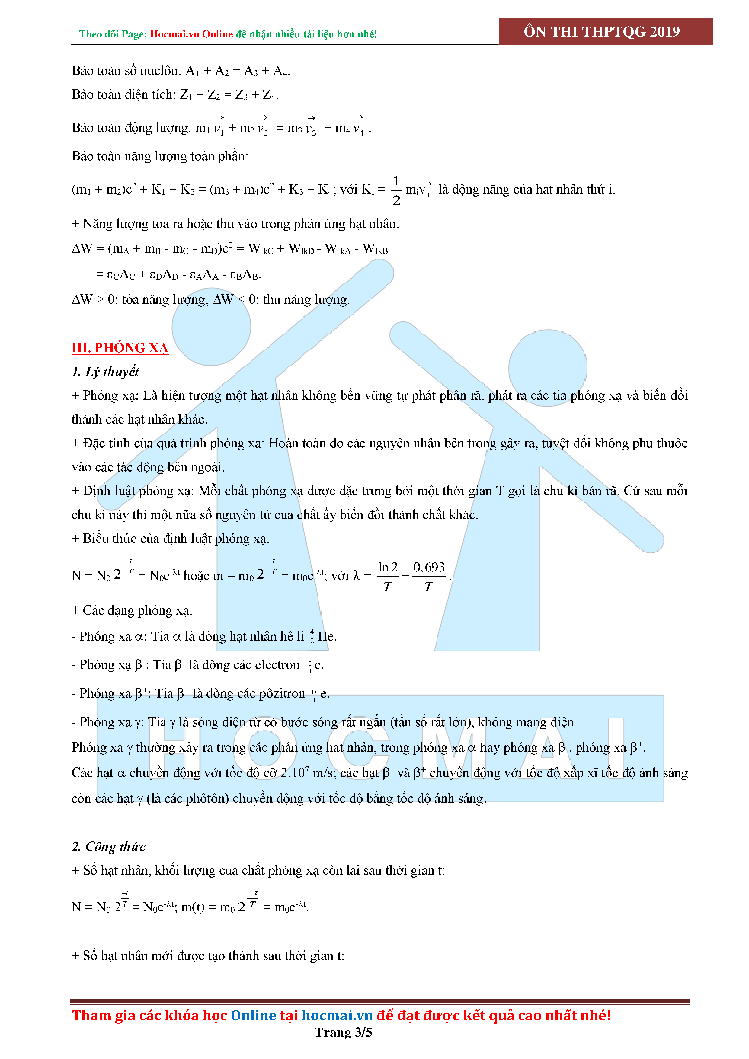 - Các định luật bảo toàn trong phản ứng hạt nhân